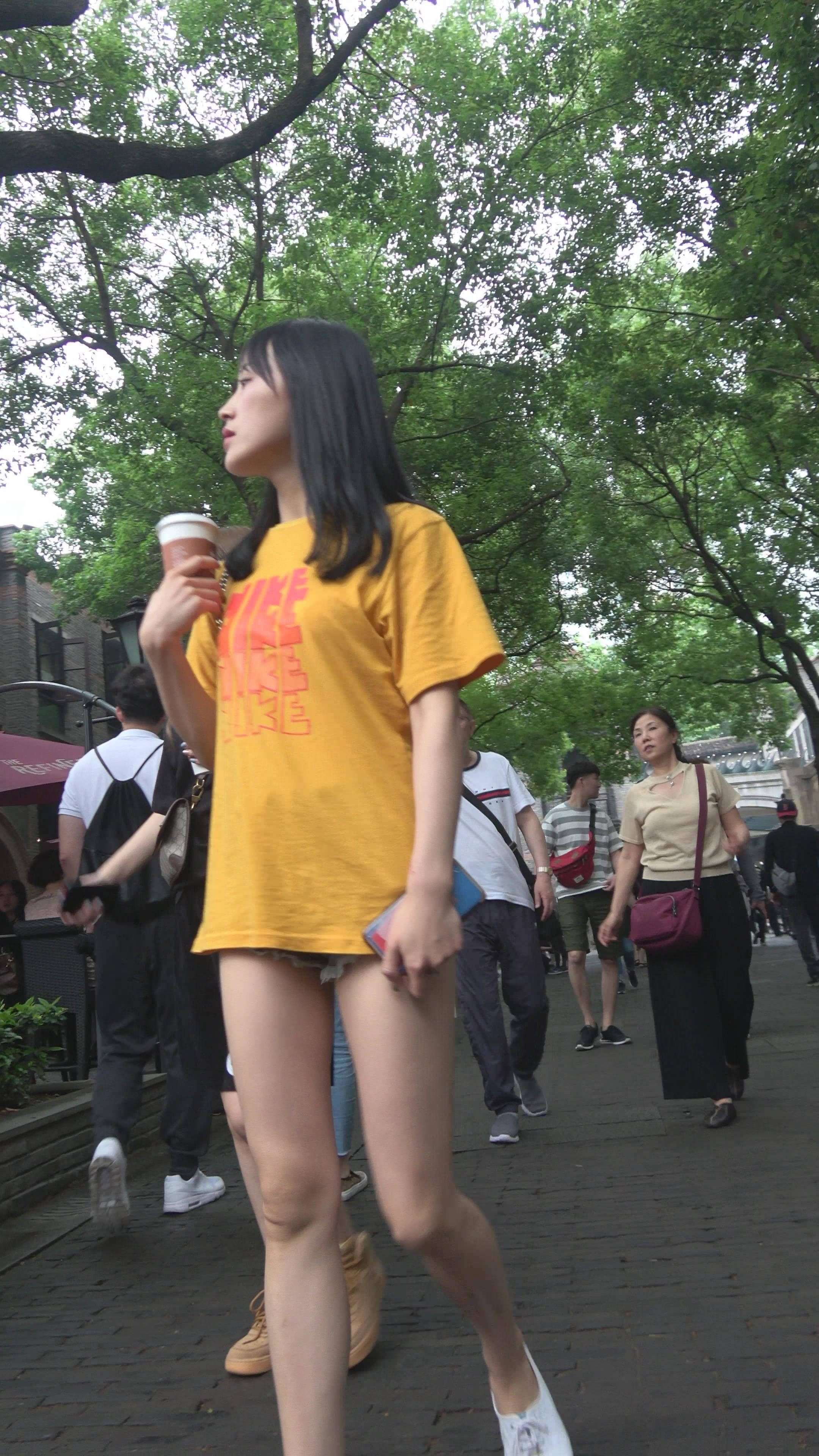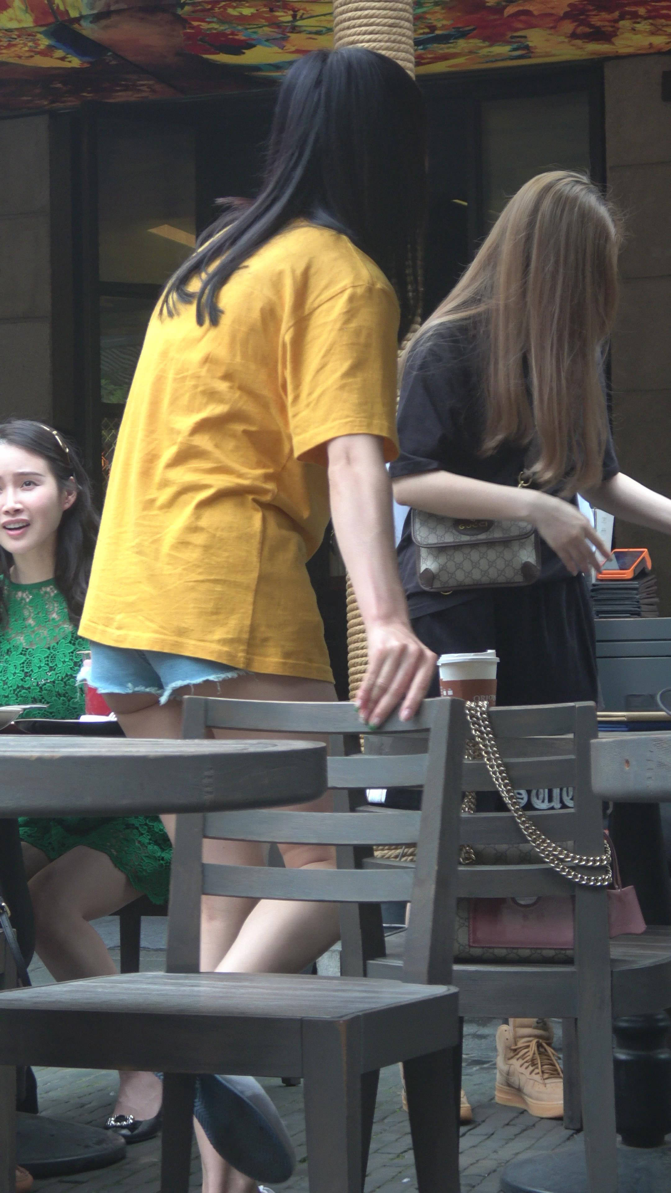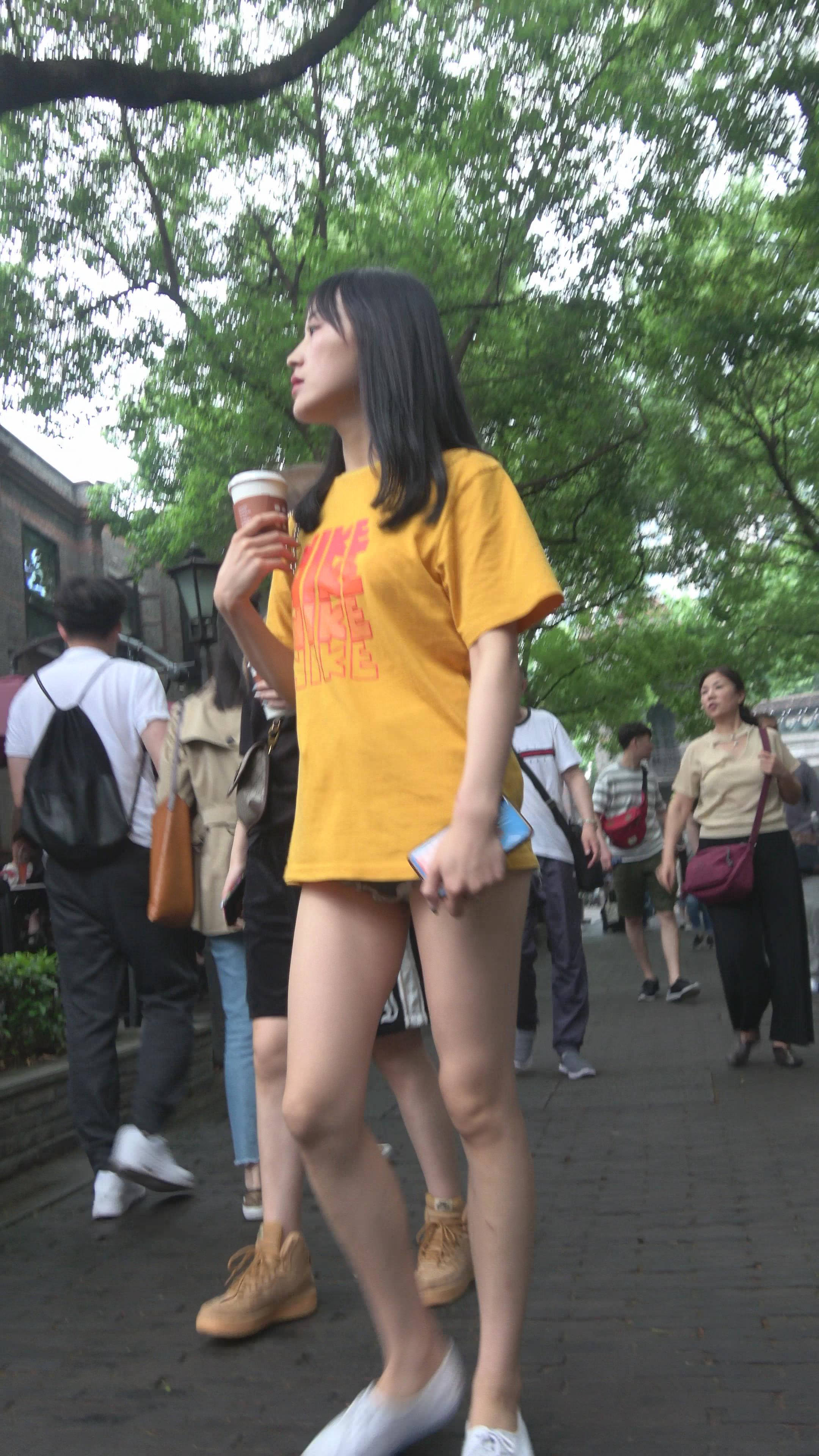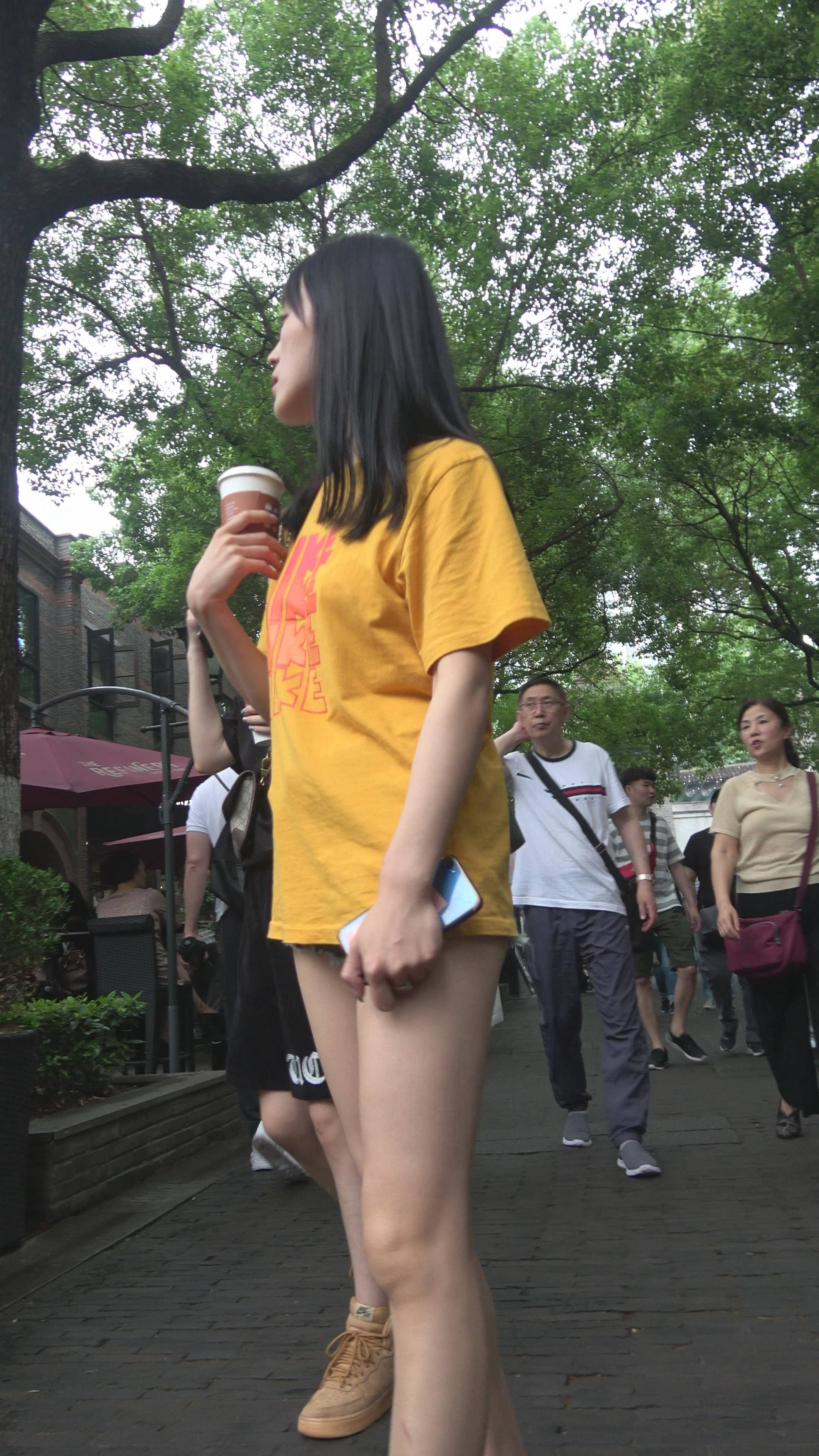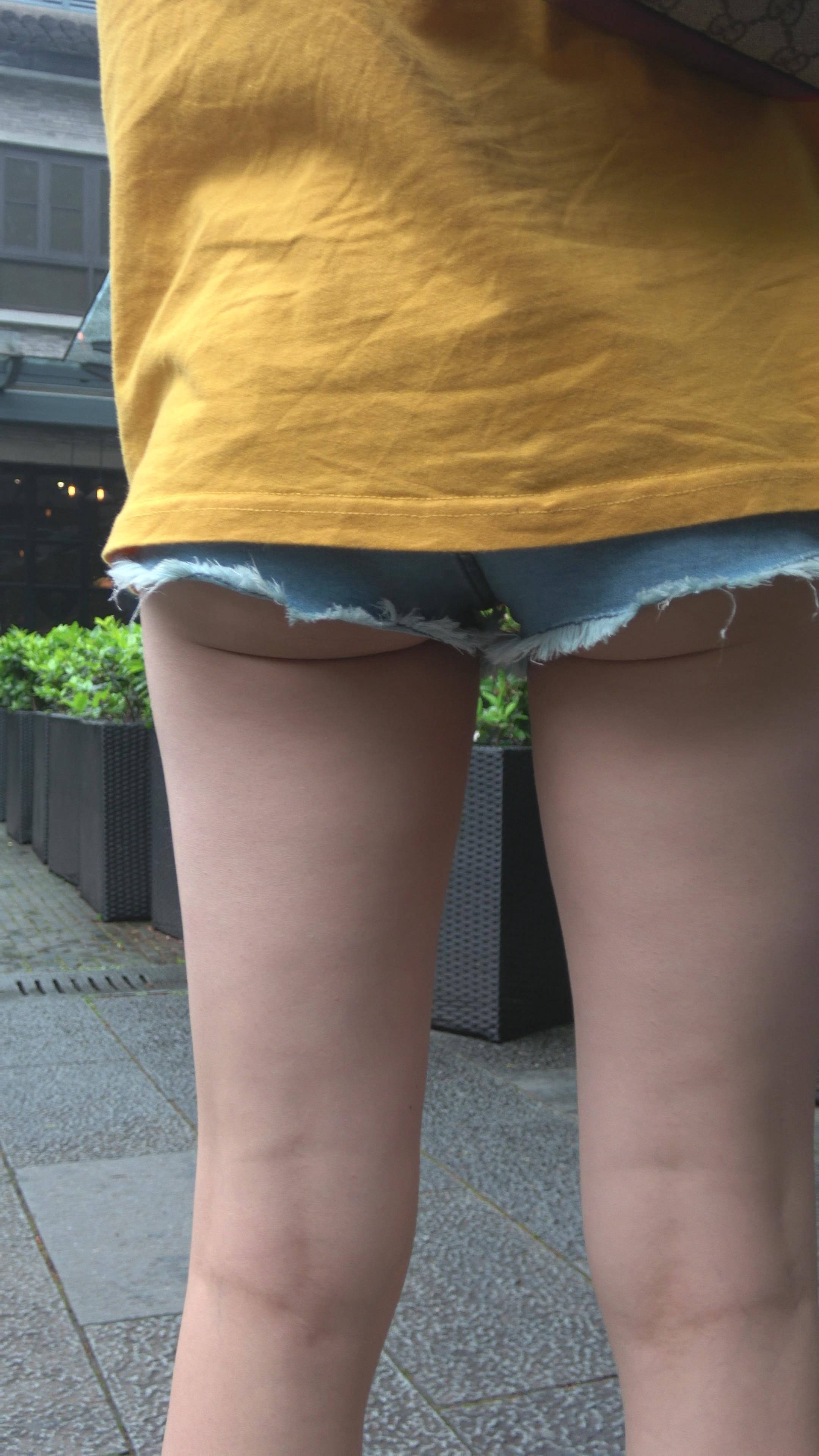 4K 黄色T恤衫超短热裤月牙臀美少女 编号7500