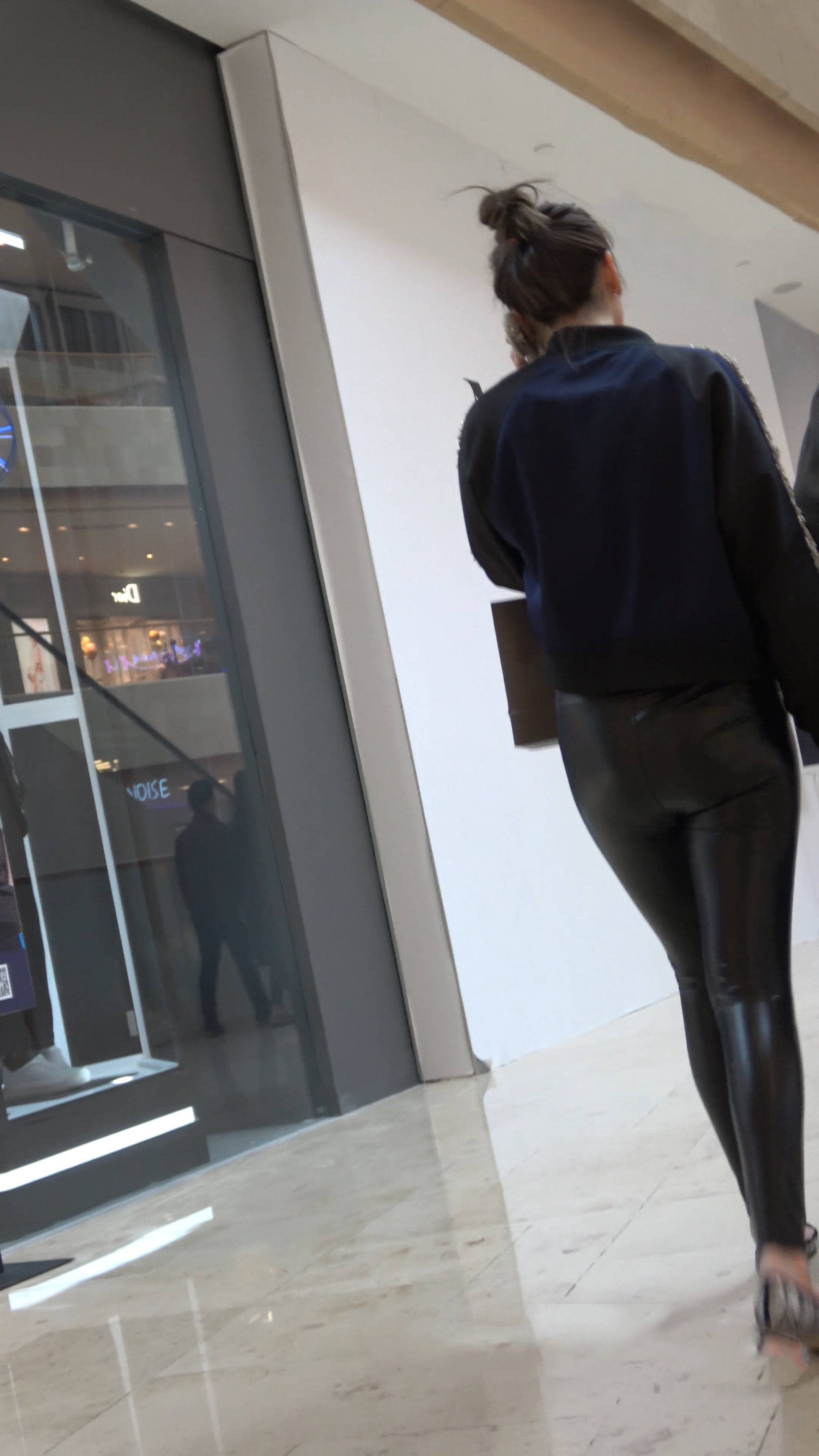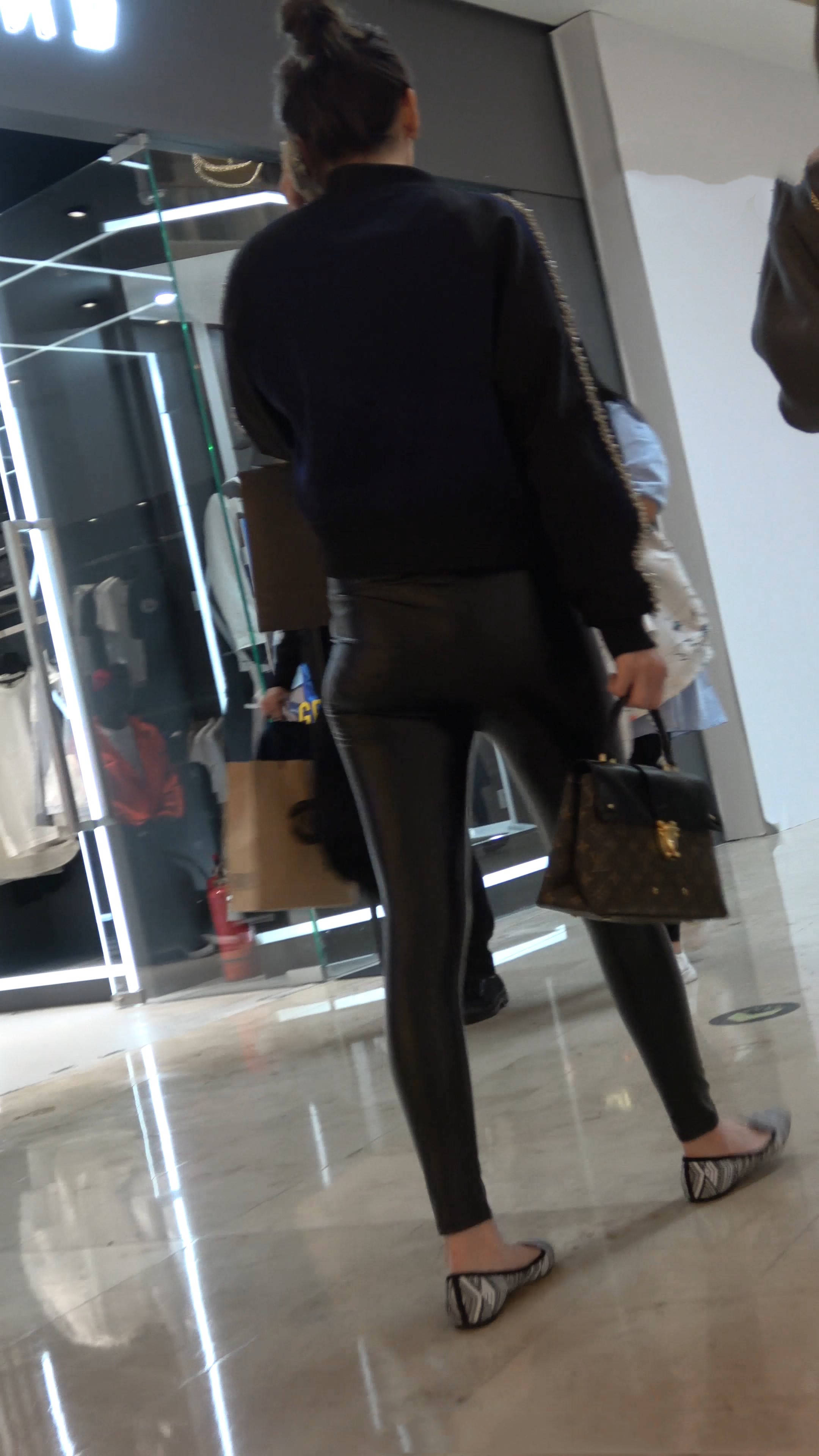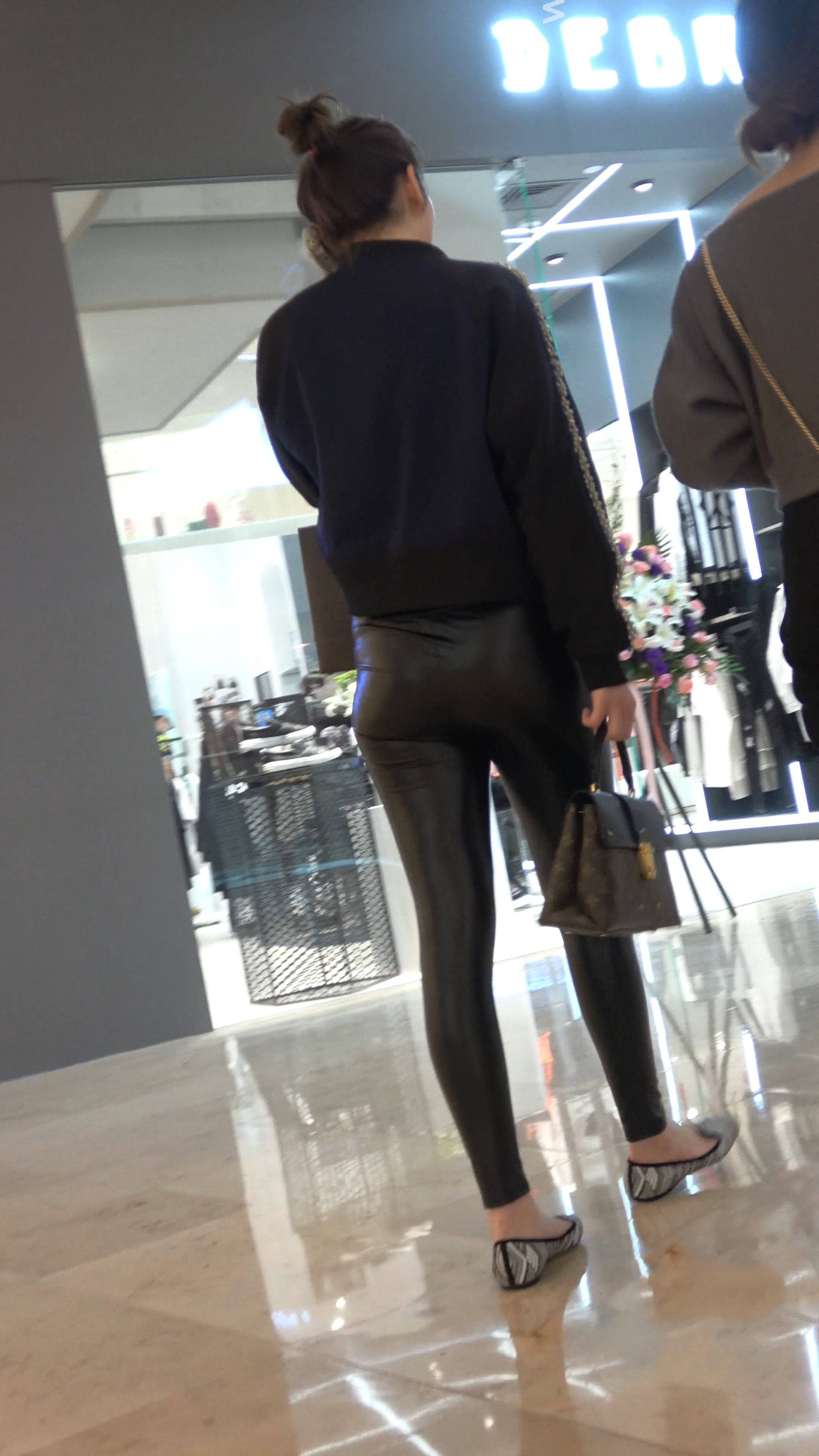 4K-极品光滑紧身皮裤美臀美女跟好姐妹逛商场 编号7511