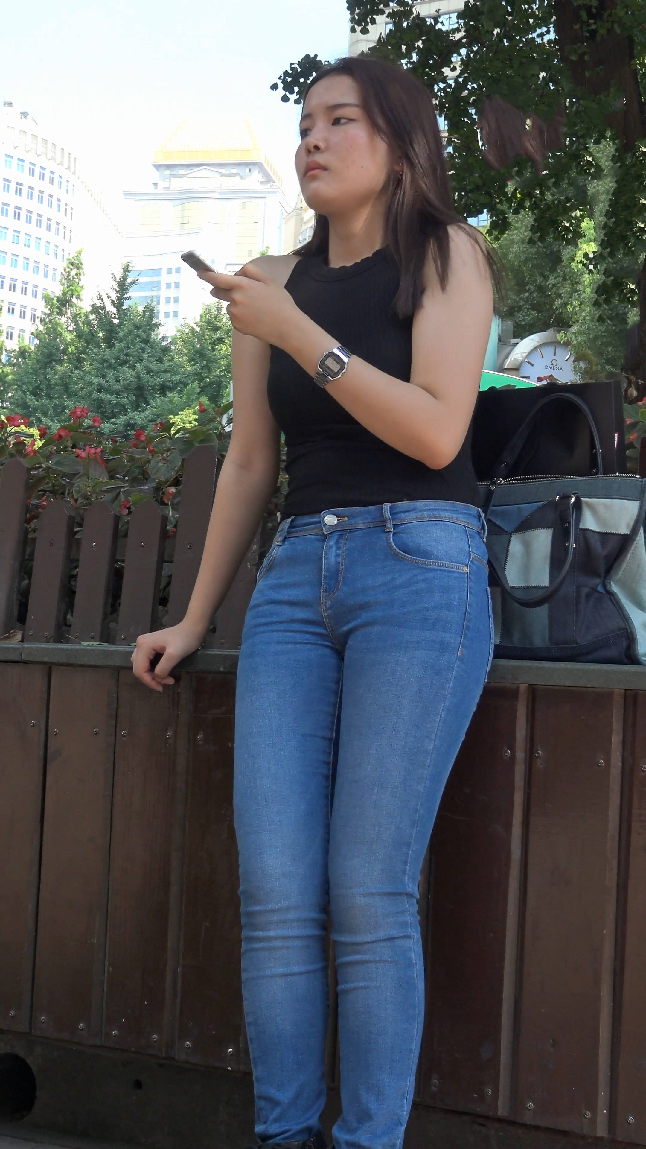 4k-街拍美臀紧身蓝牛清纯美女在等人 编号7520