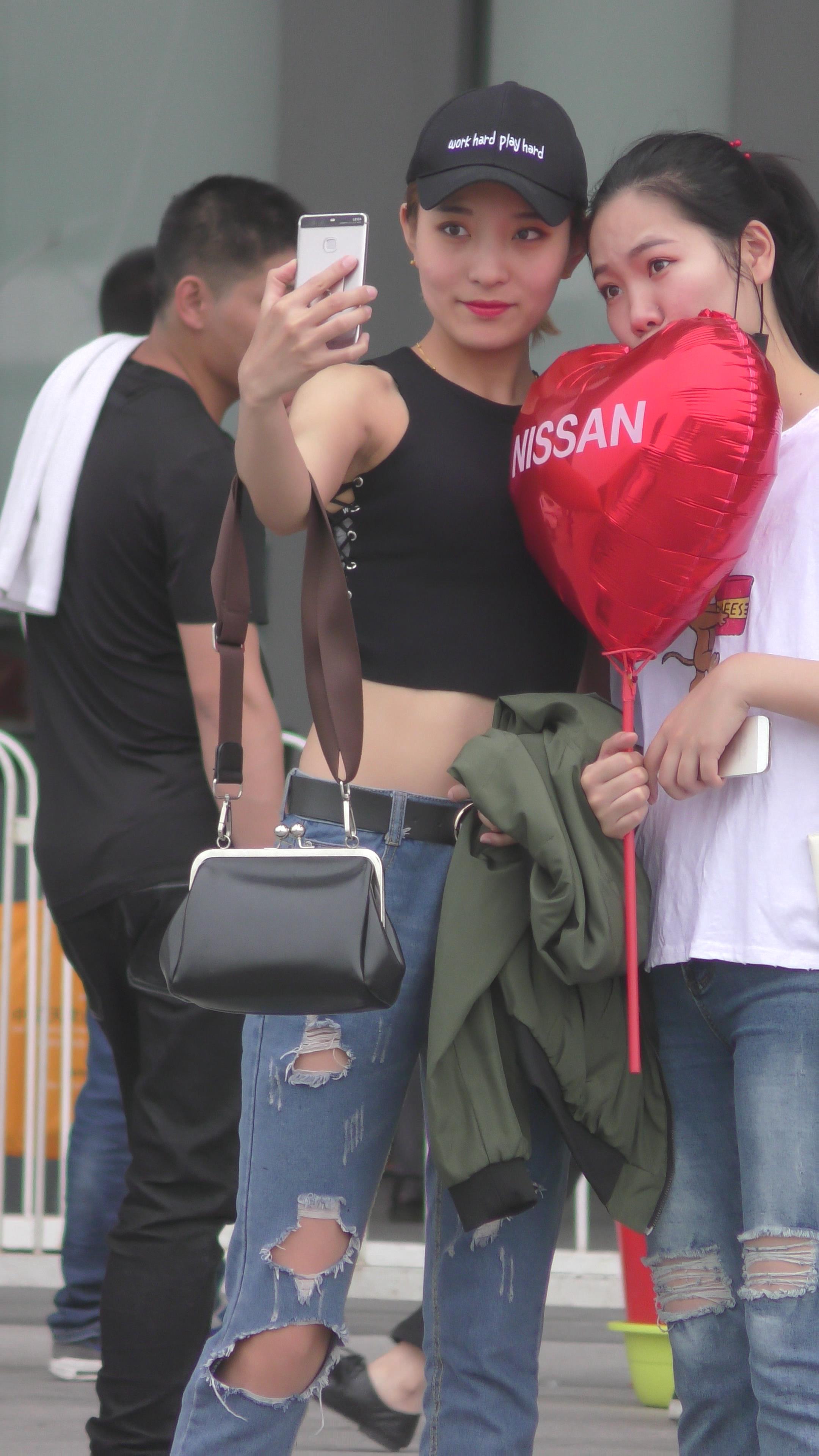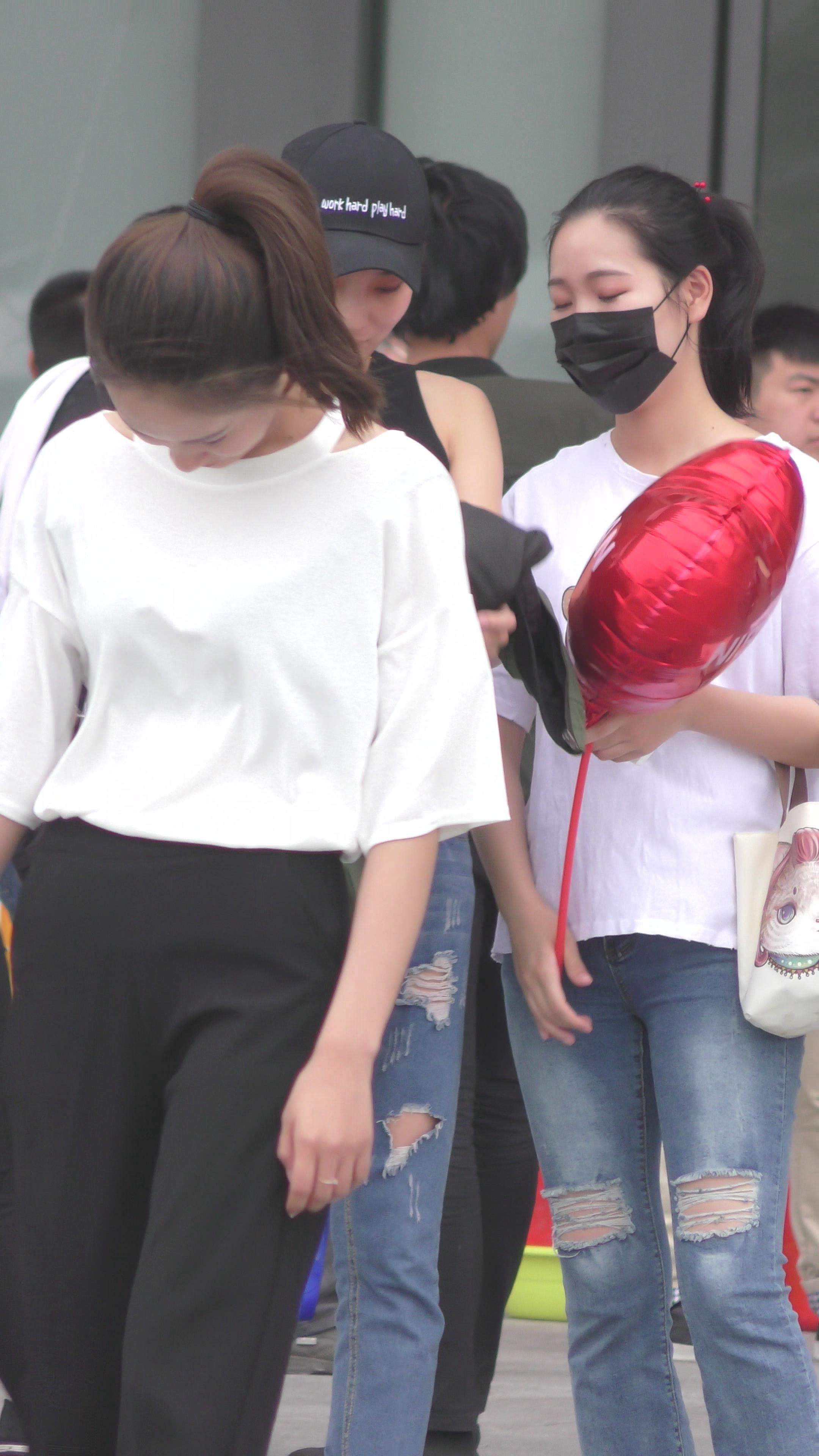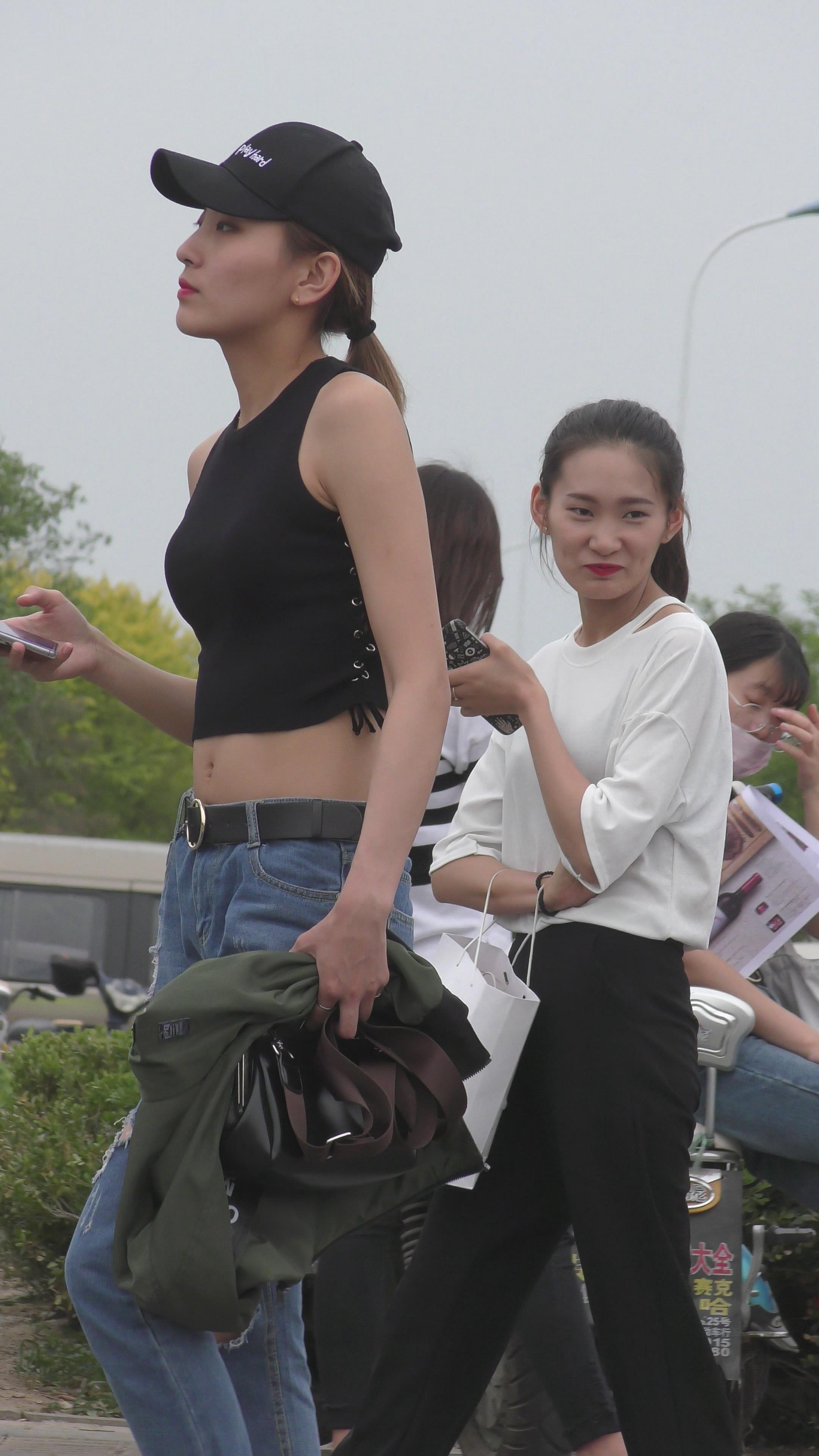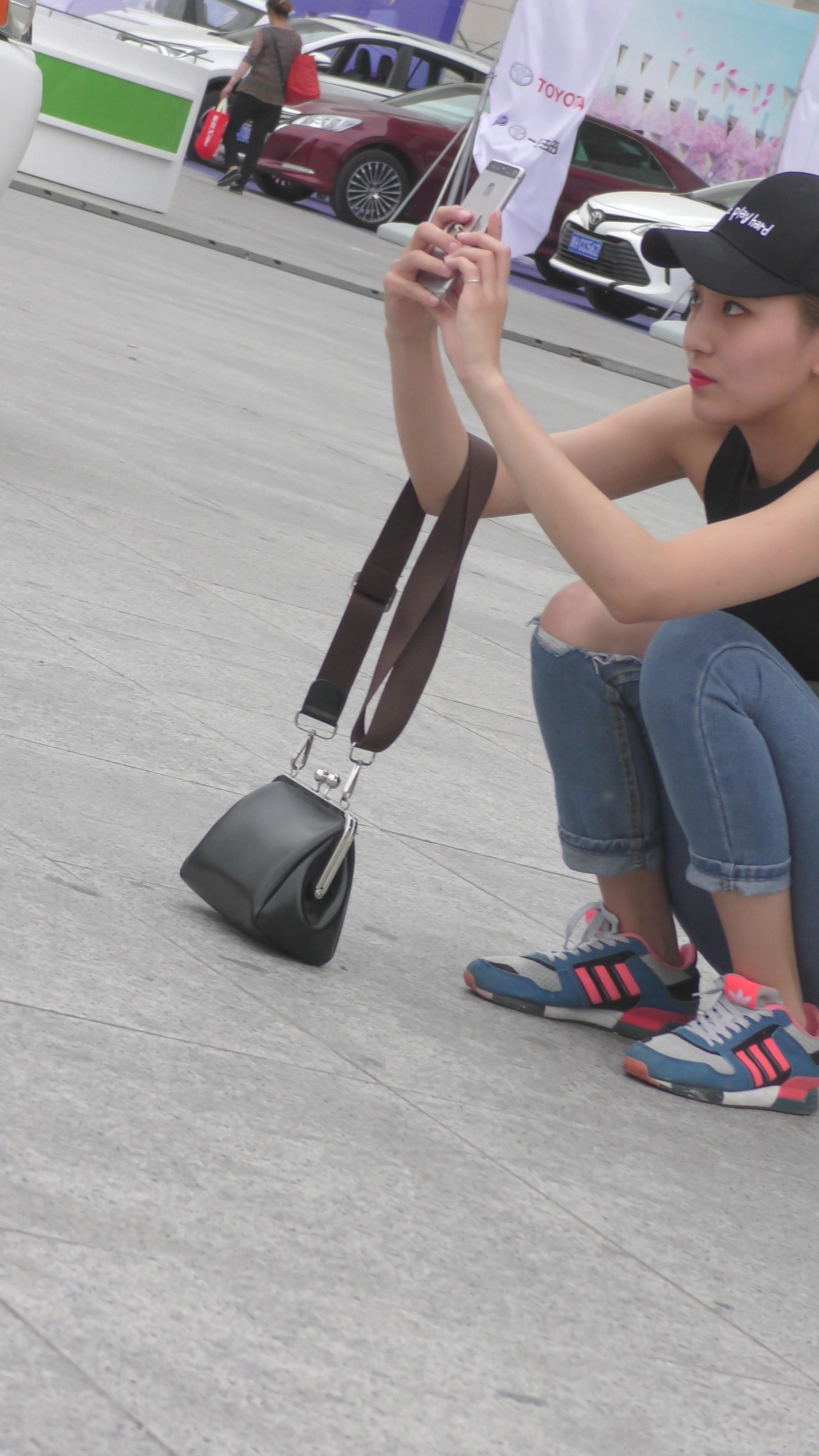 4K - 街拍鸭舌帽极品破洞紧身牛仔美女 编号3353