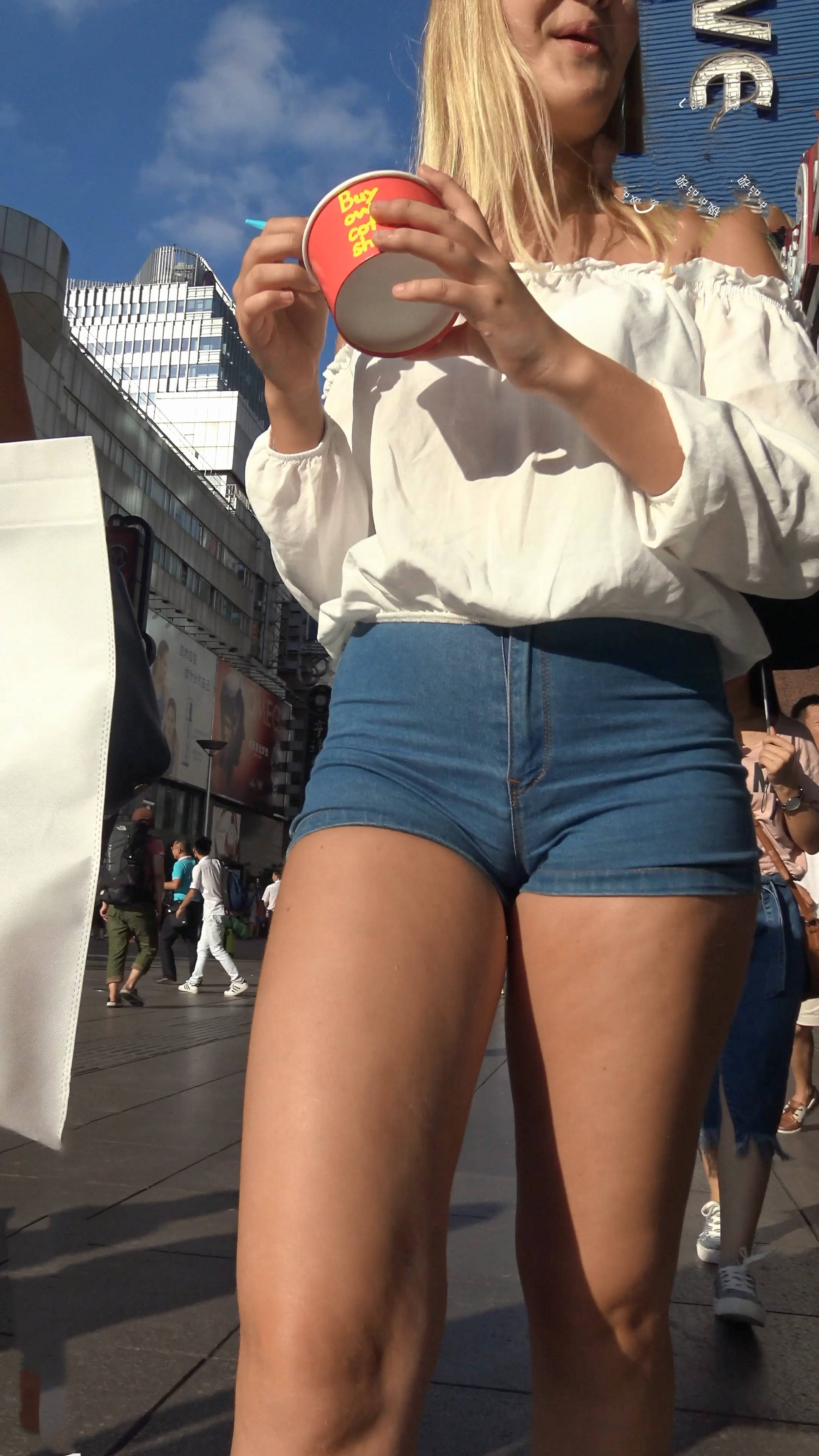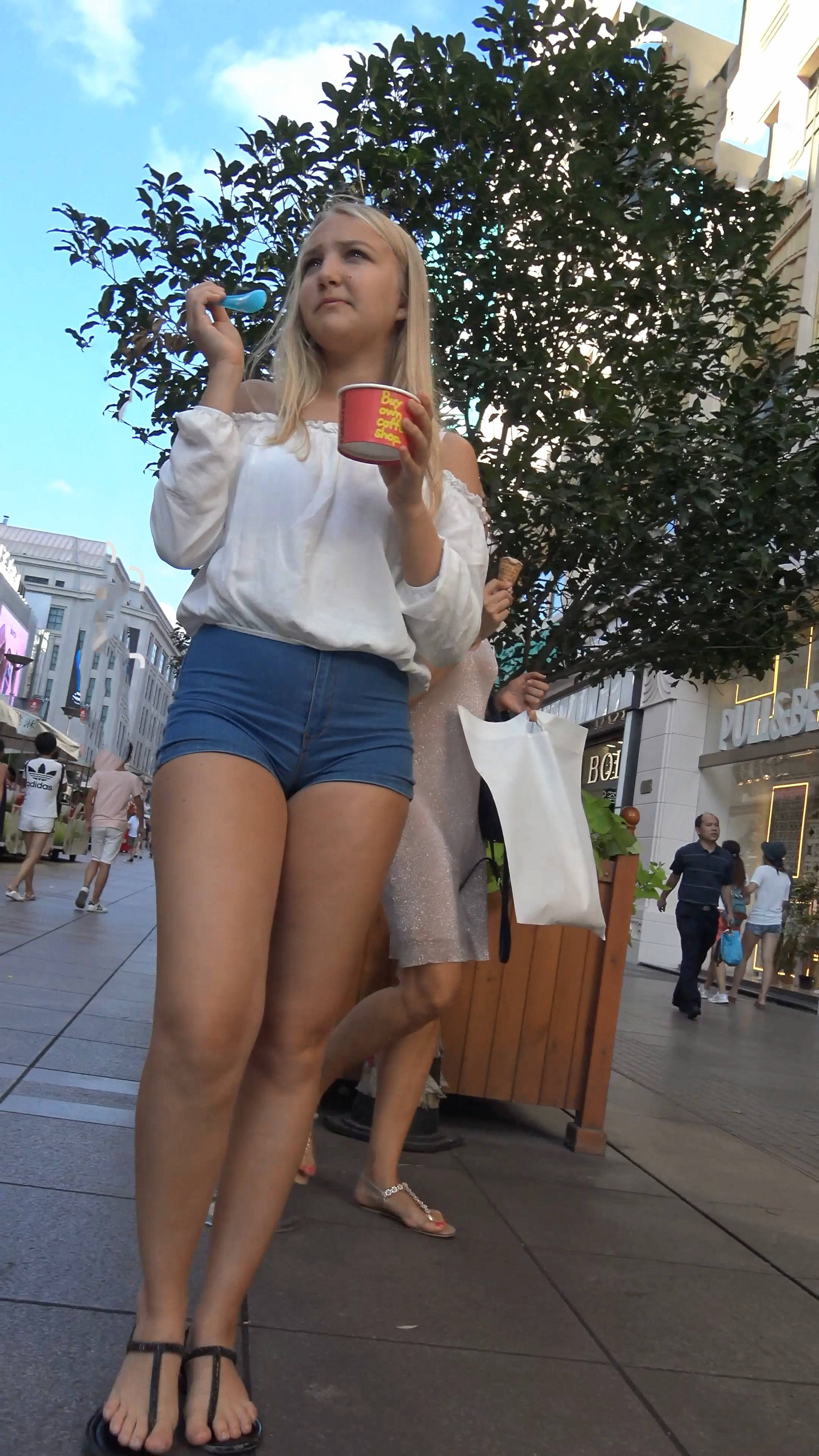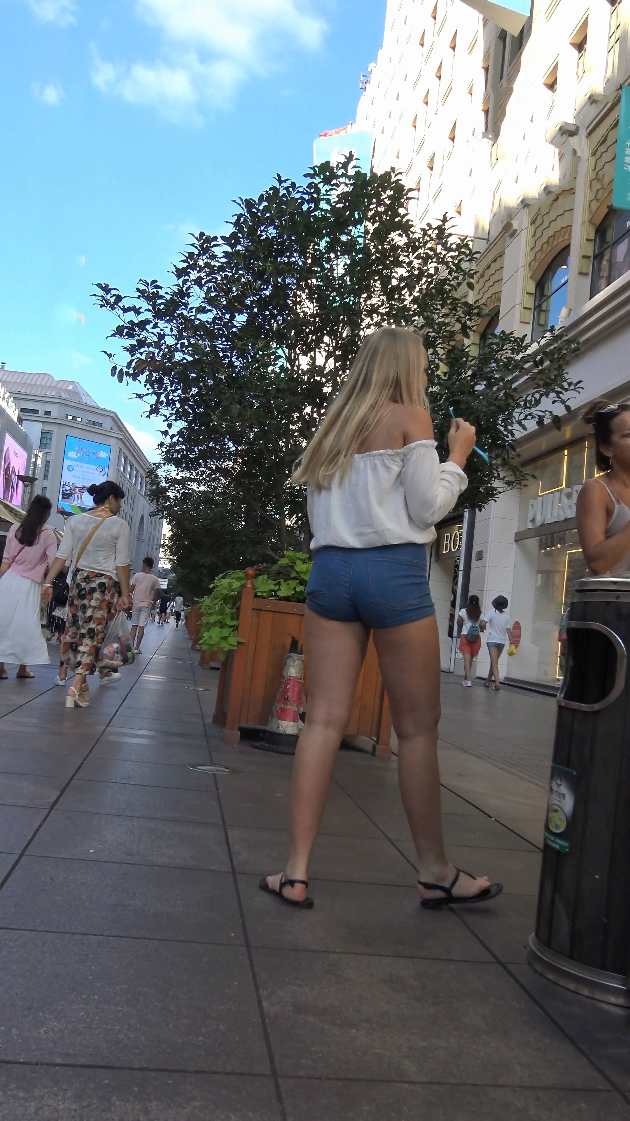 4k-街拍前三角饱满圆臀热裤洋妹子 编号7526