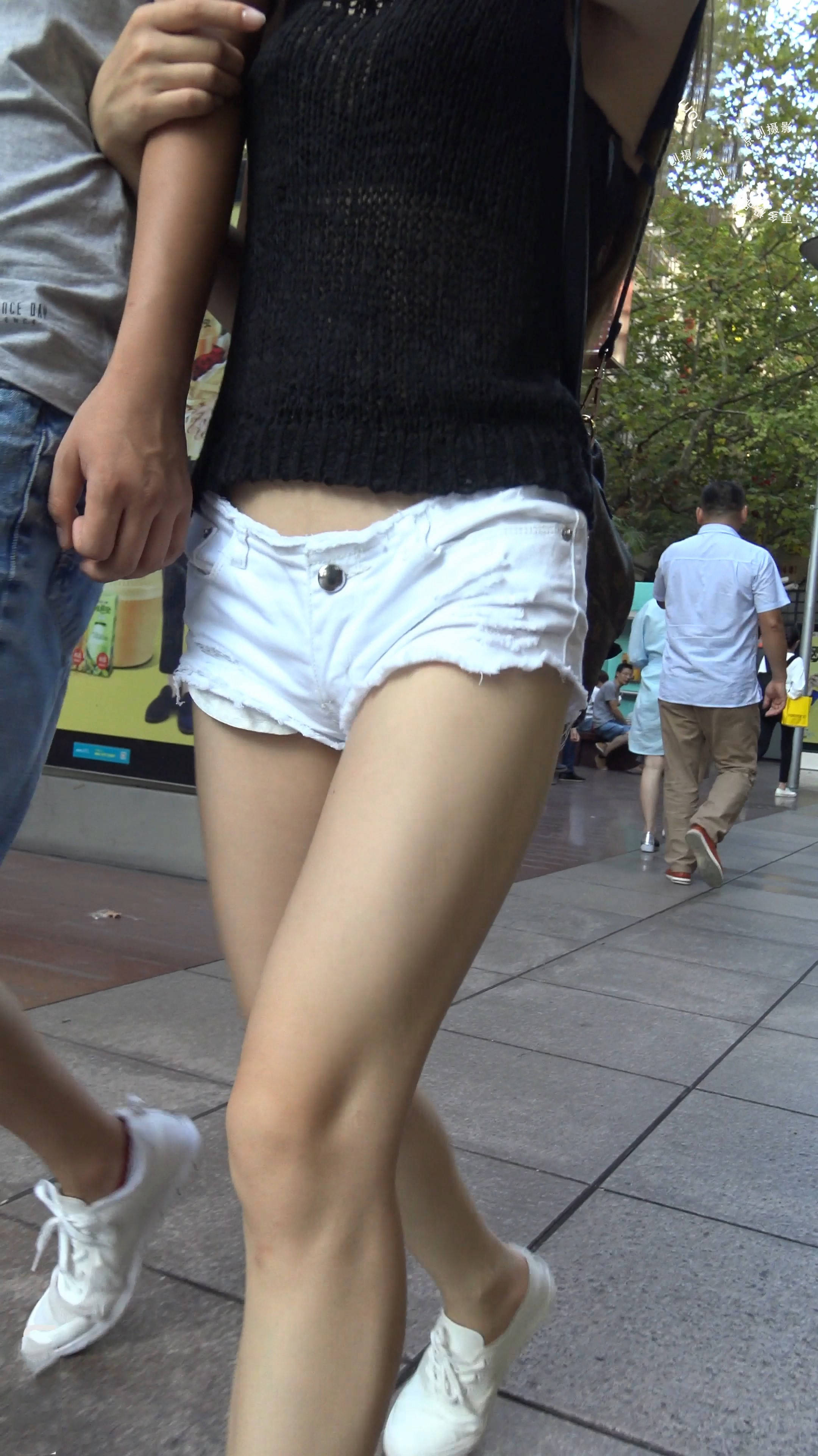 4k-街拍超短白热裤长腿小清新妹子 编号7529