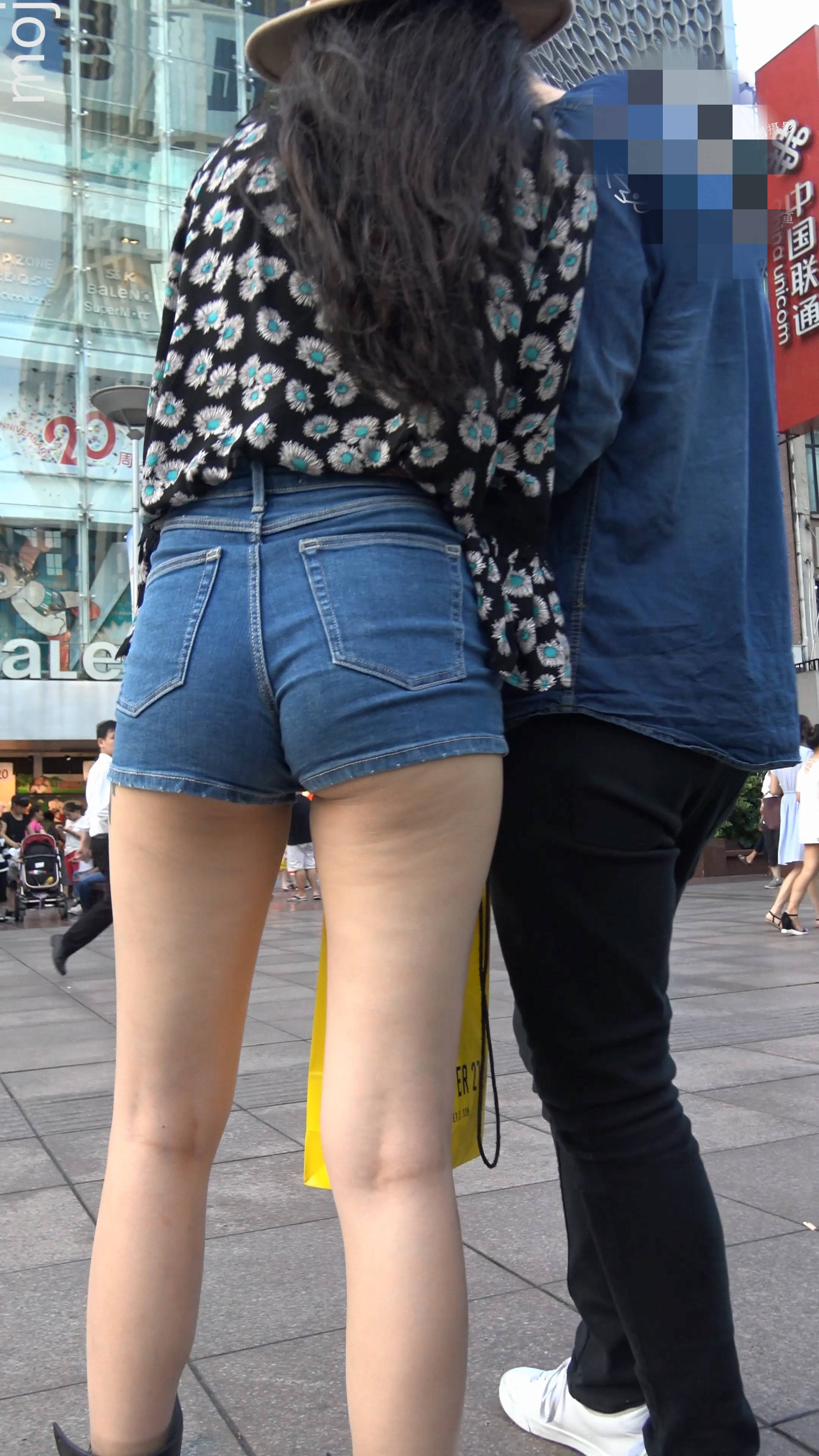 4k-街拍高腰紧身牛仔热裤长腿美女与她的外籍男友 编号7539