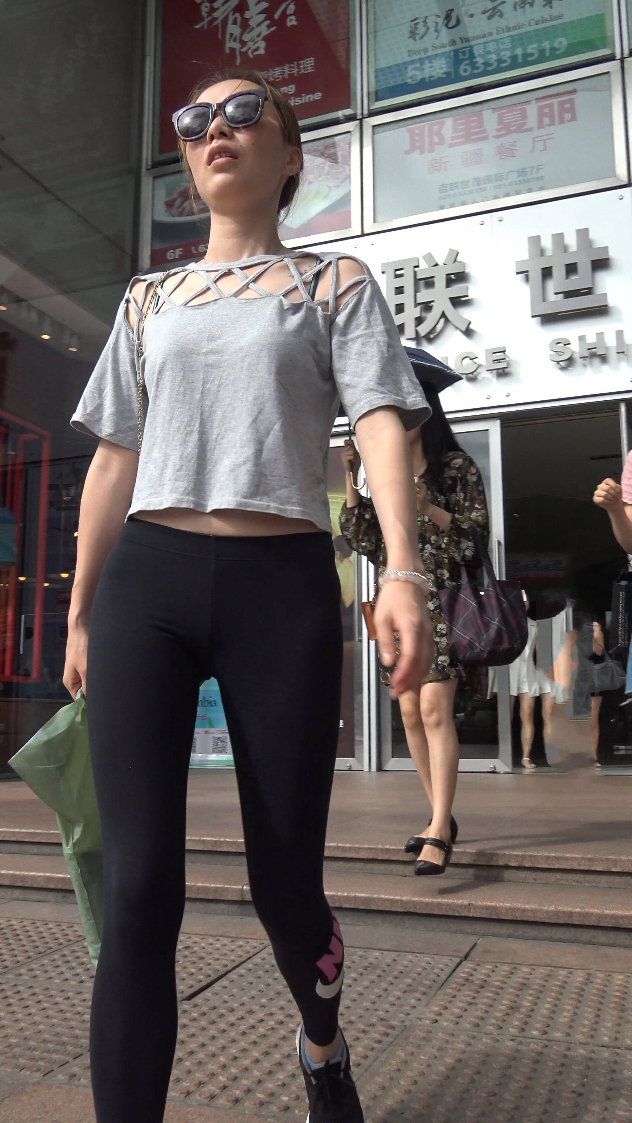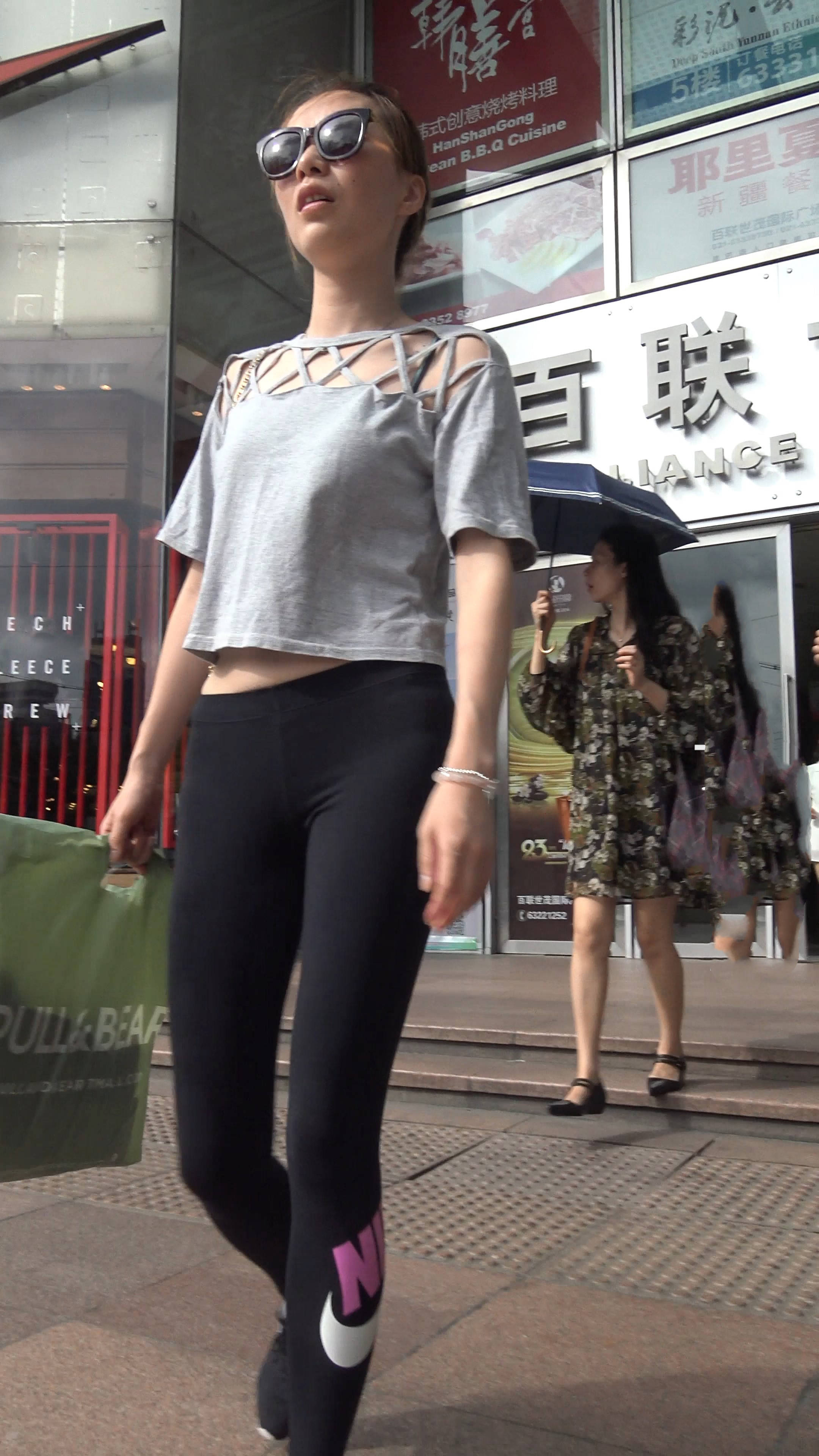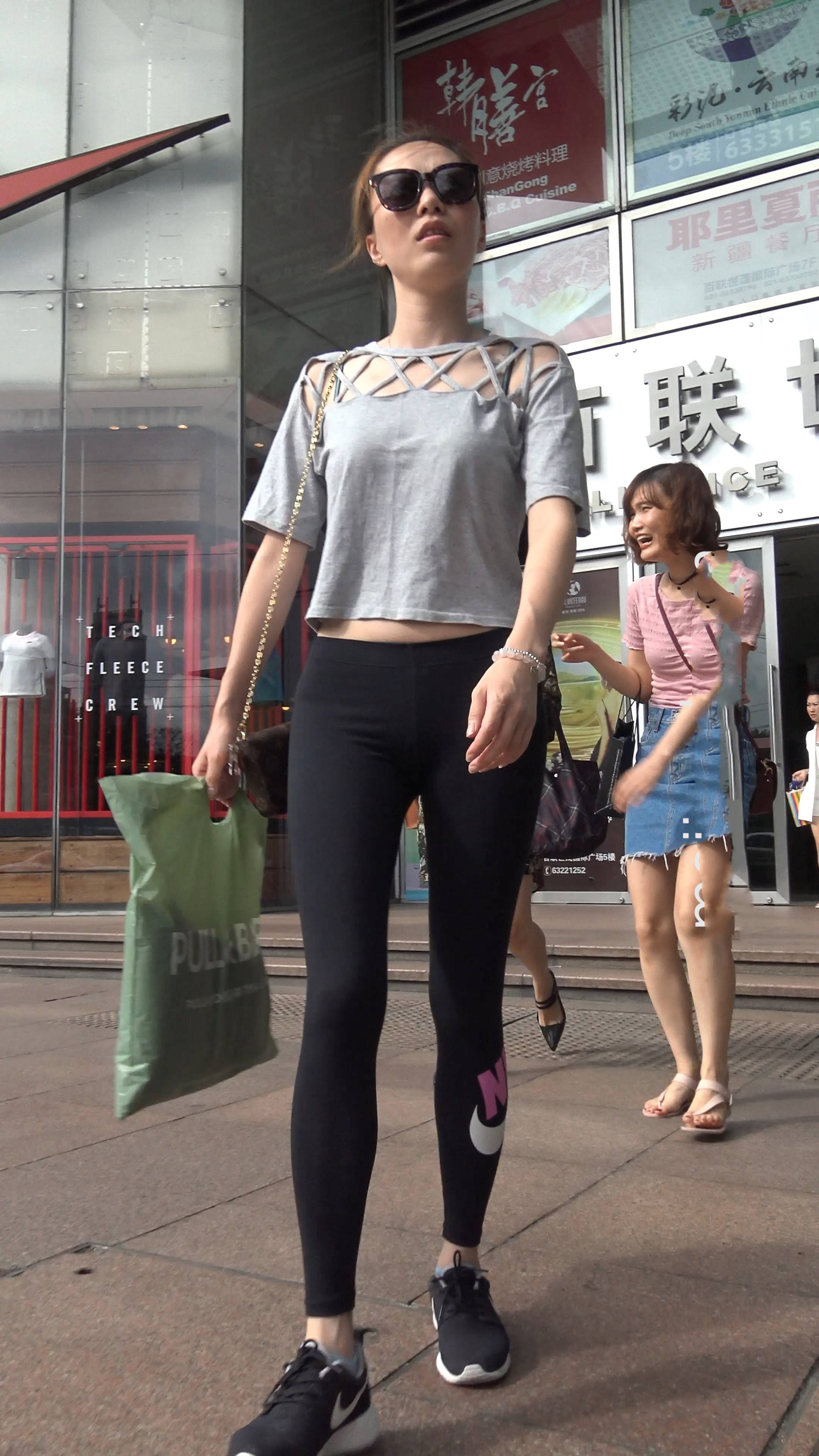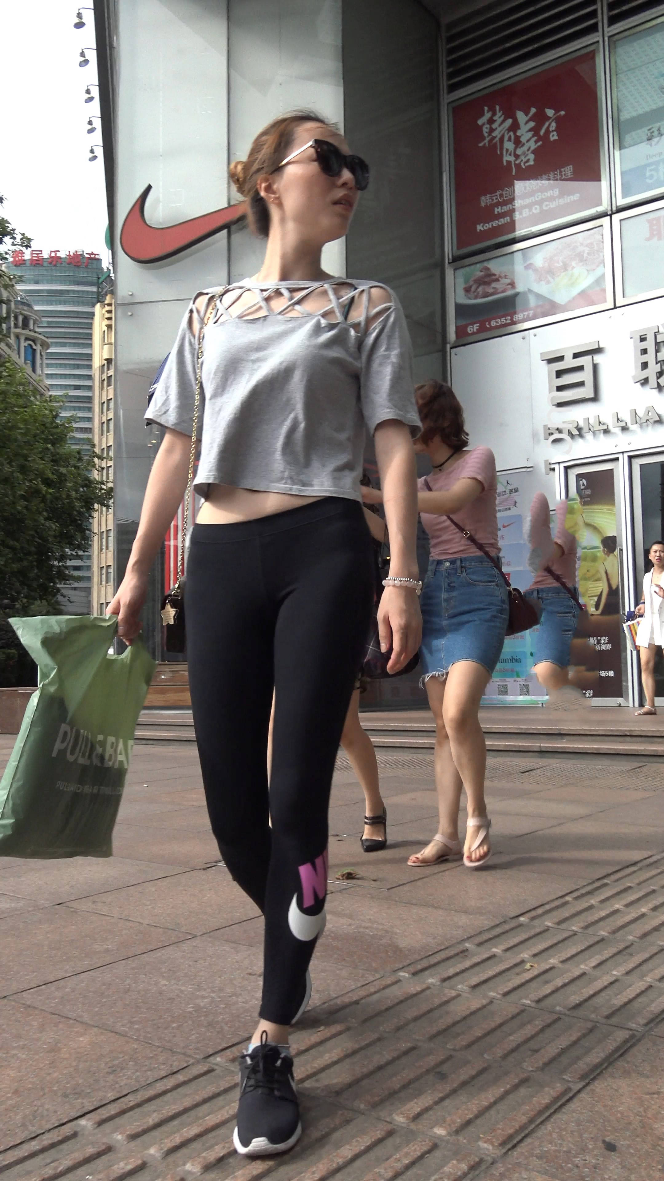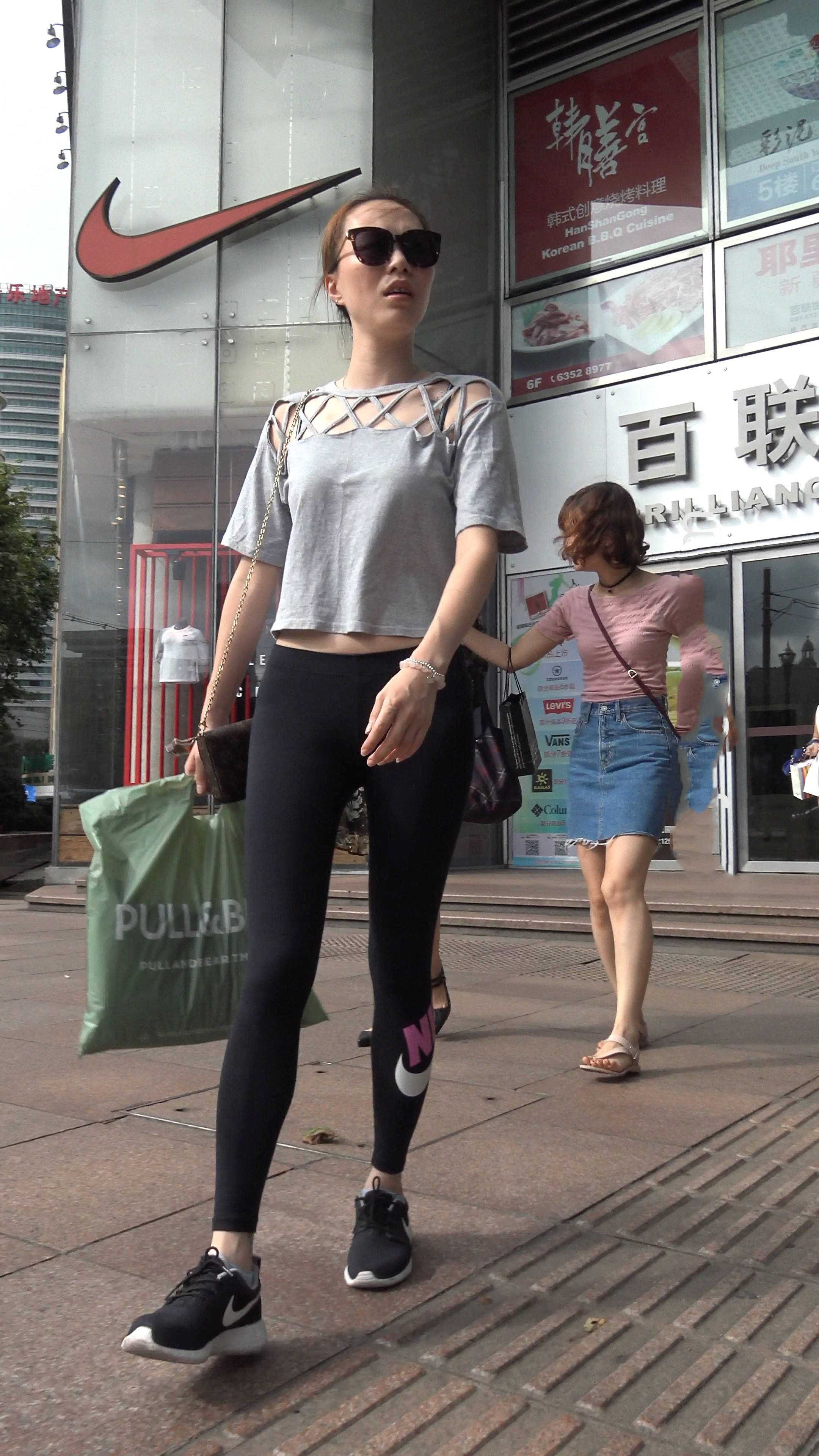 4k-穿耐克的紧身瑜伽裤运动鞋漂亮墨镜美女 编号7544