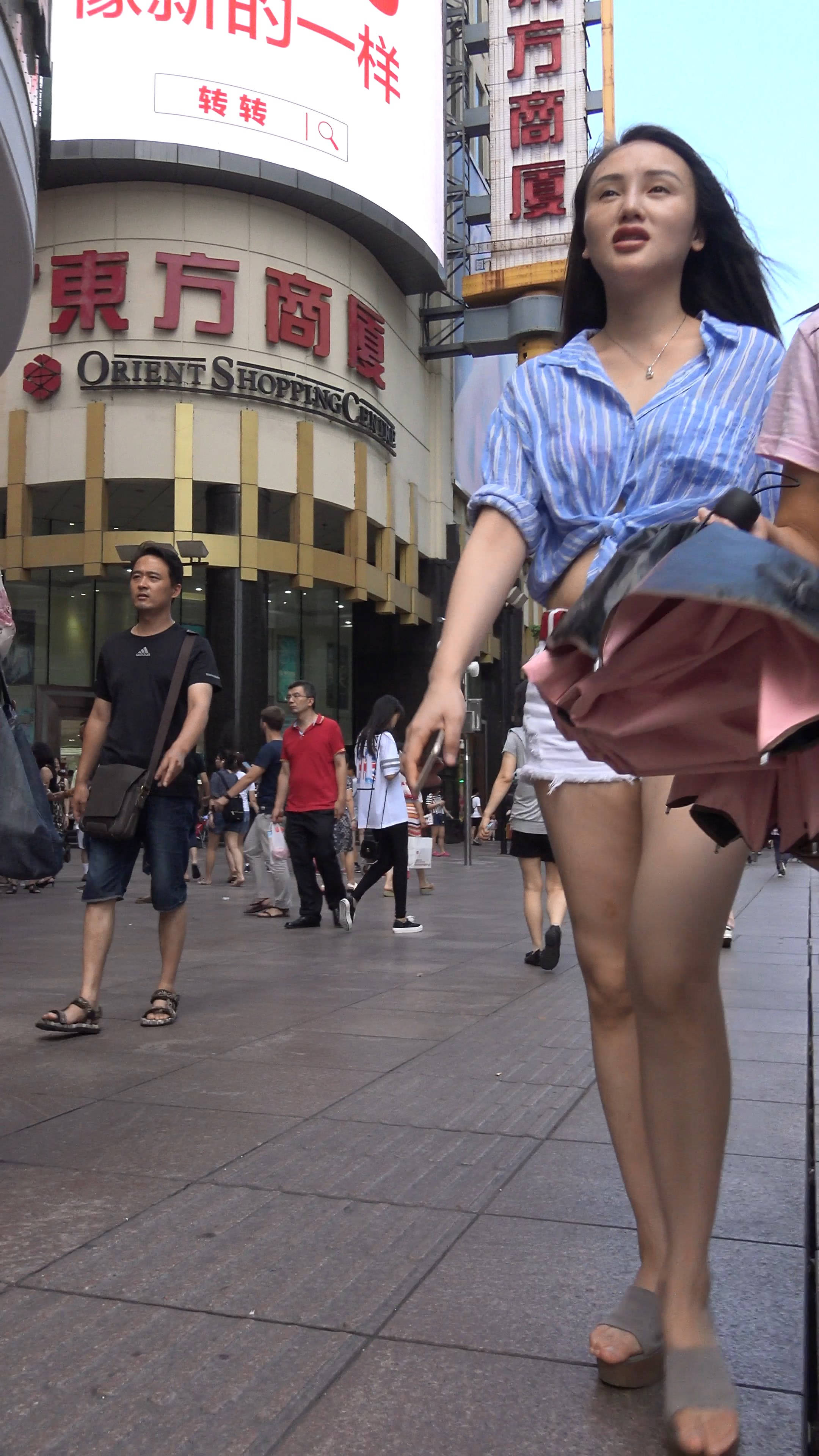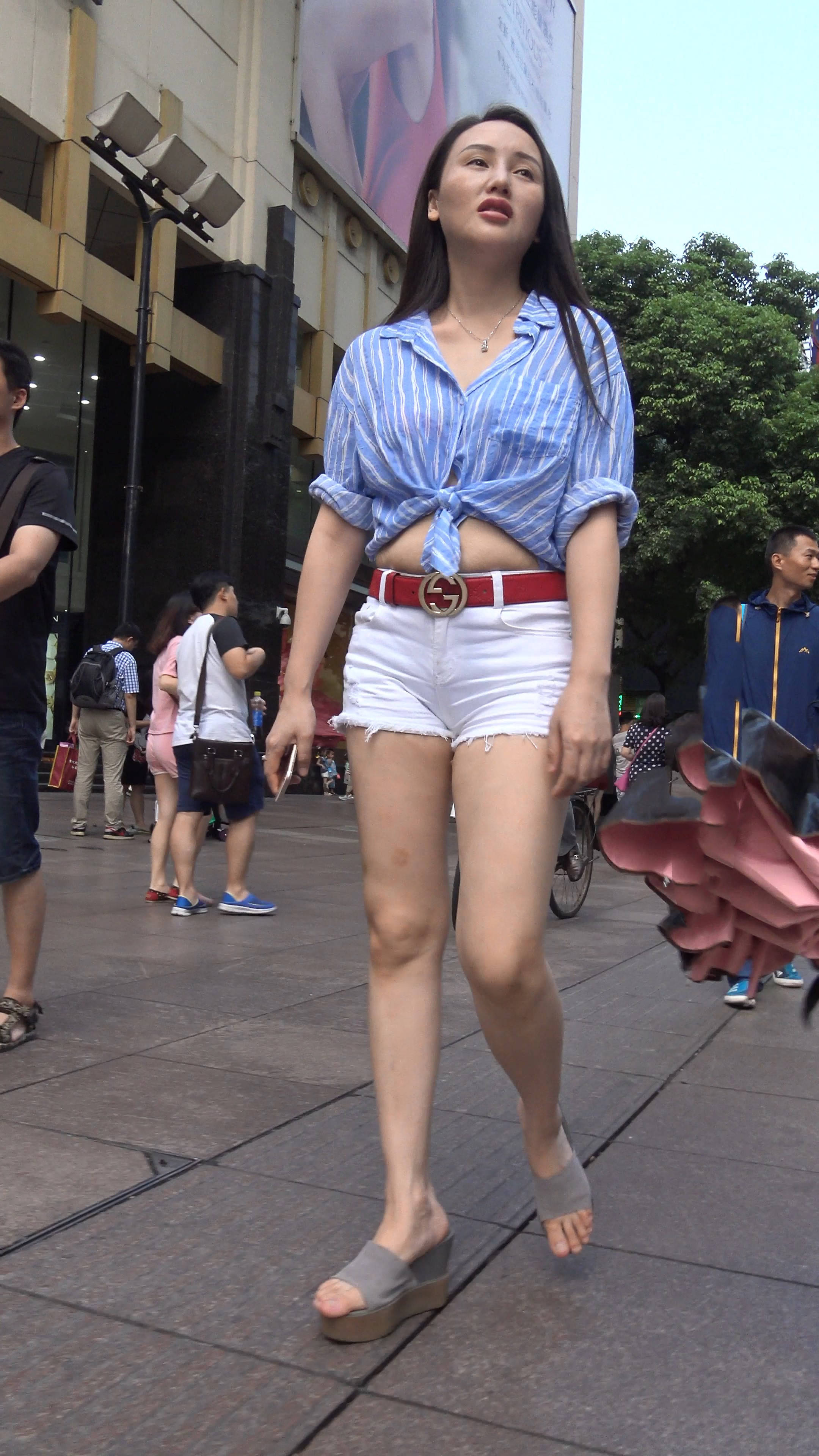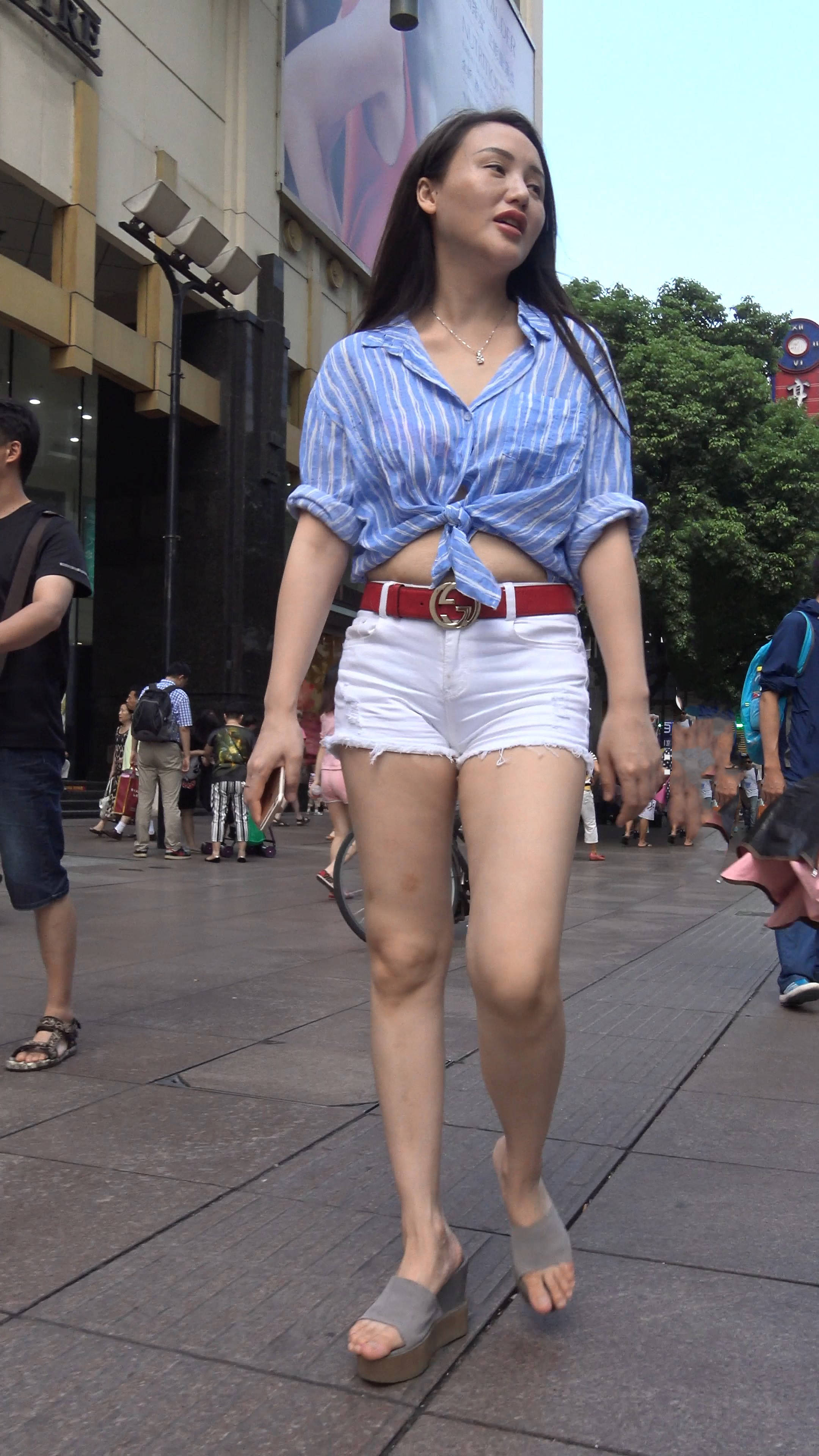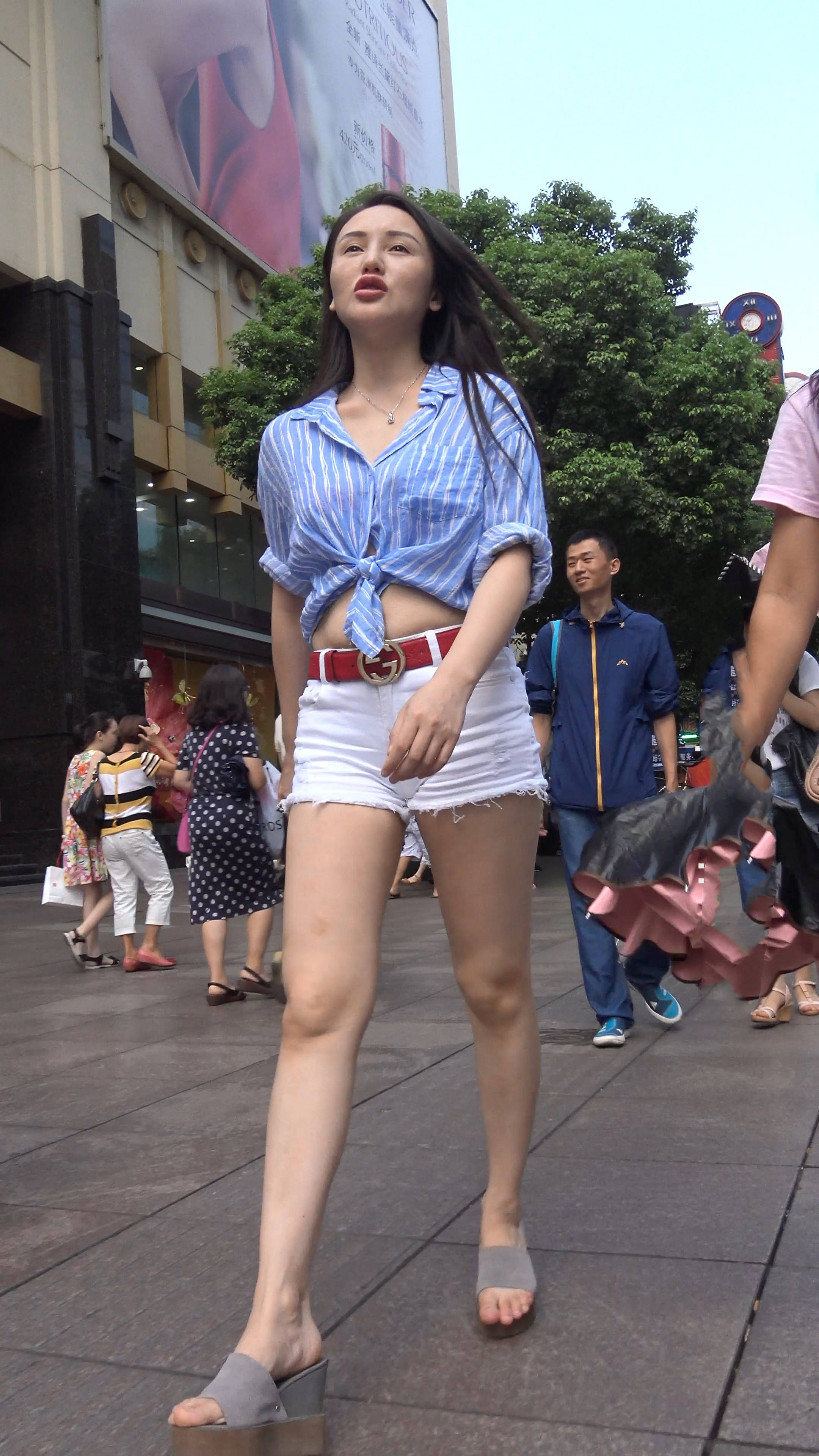 4k-雪白美腿白热裤露脐蓝衬衫美女 编号7552