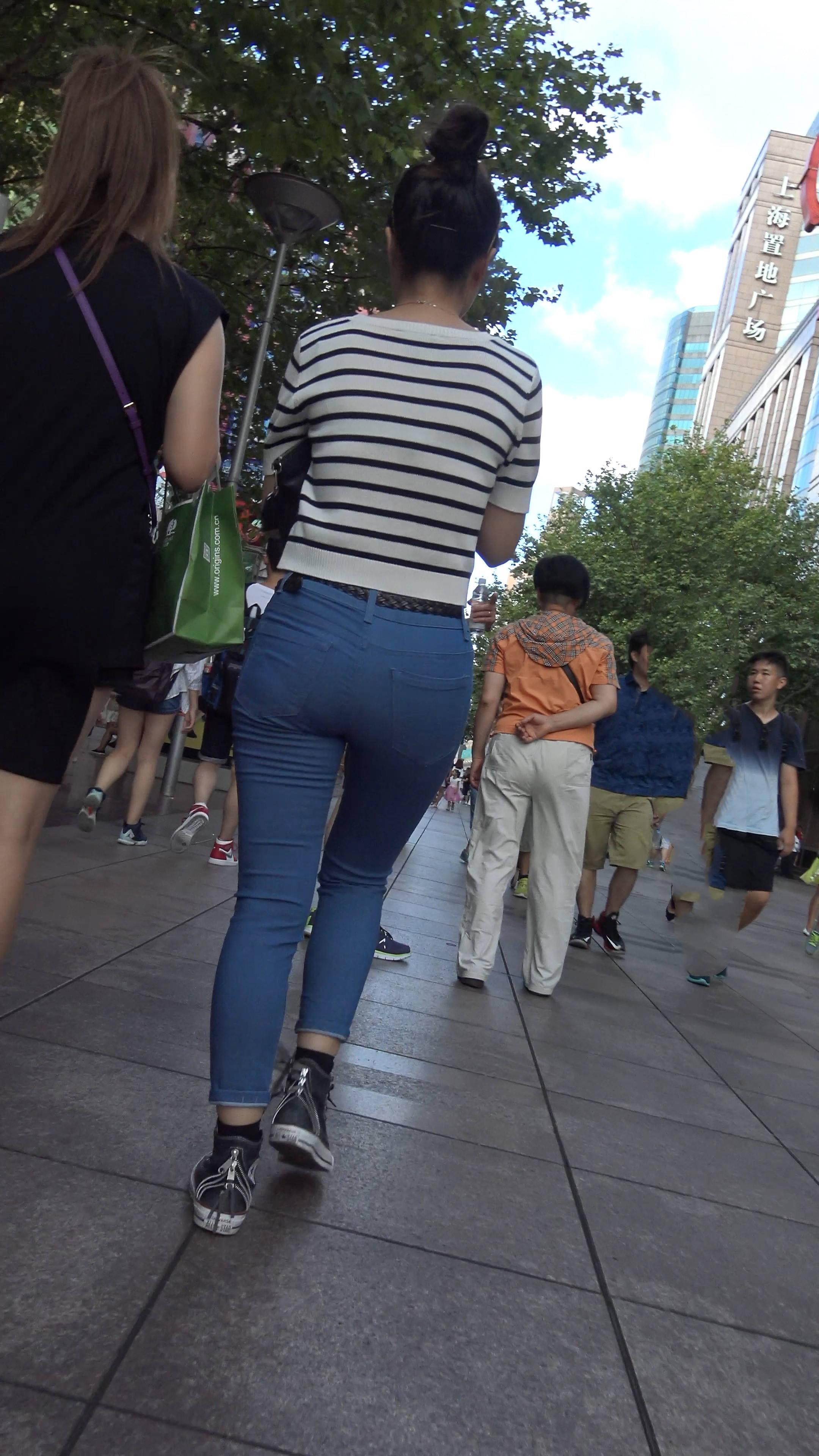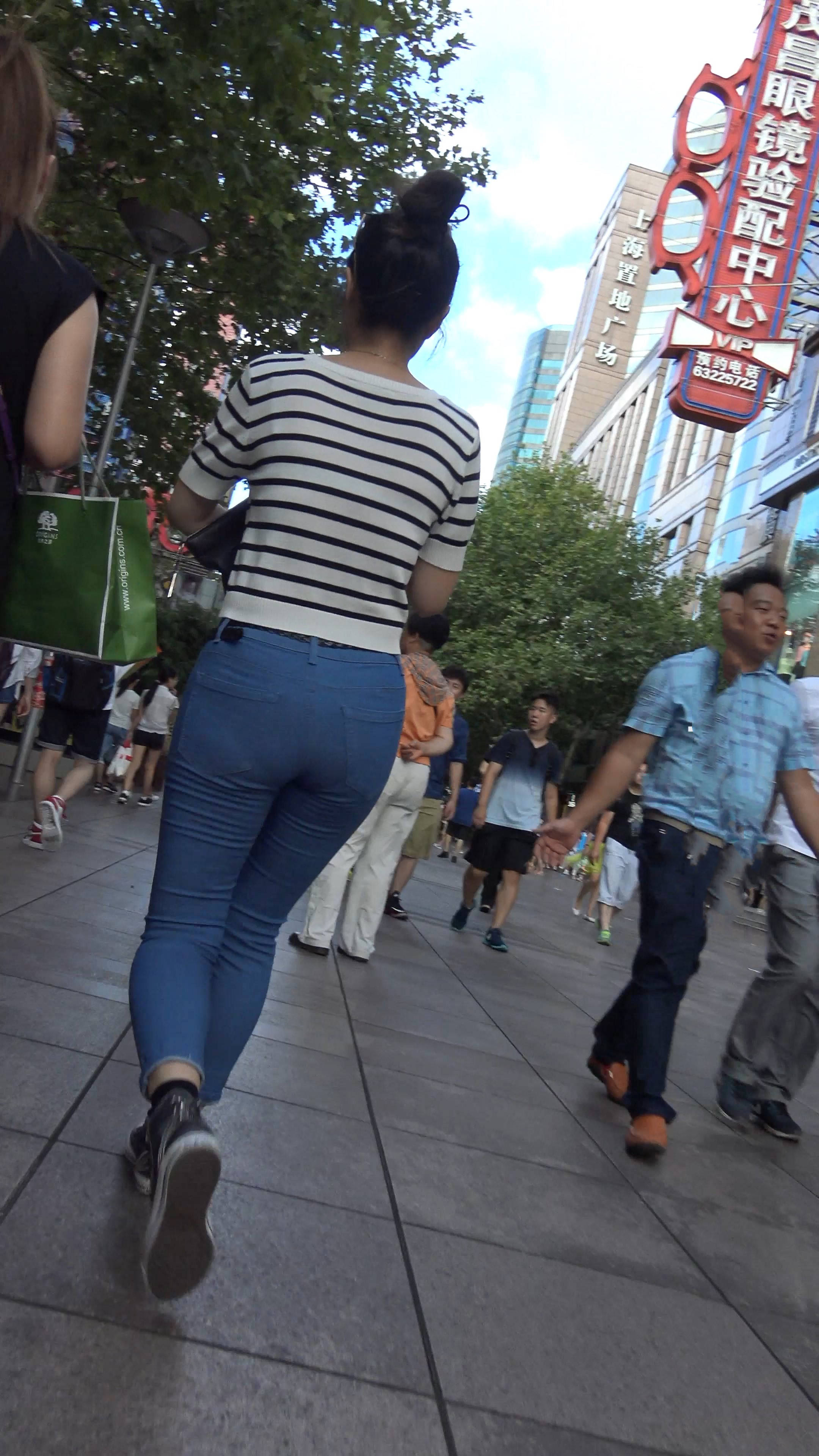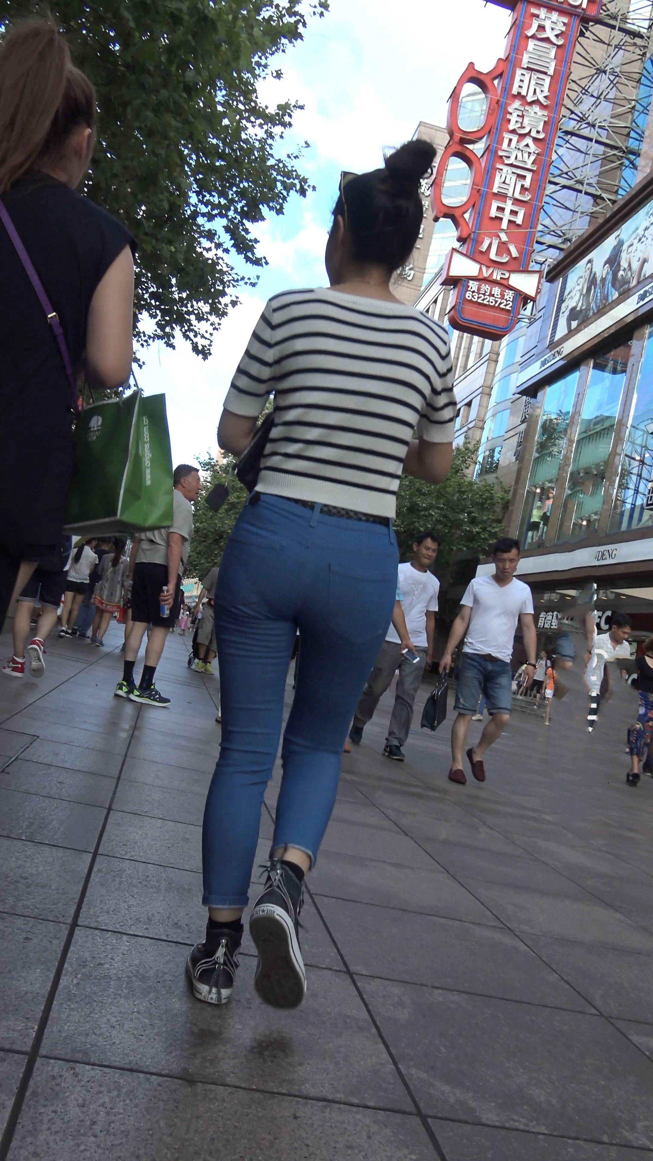 4k-蓝色紧身牛仔裤美眉兴高采烈的跟闺蜜逛街 编号7553