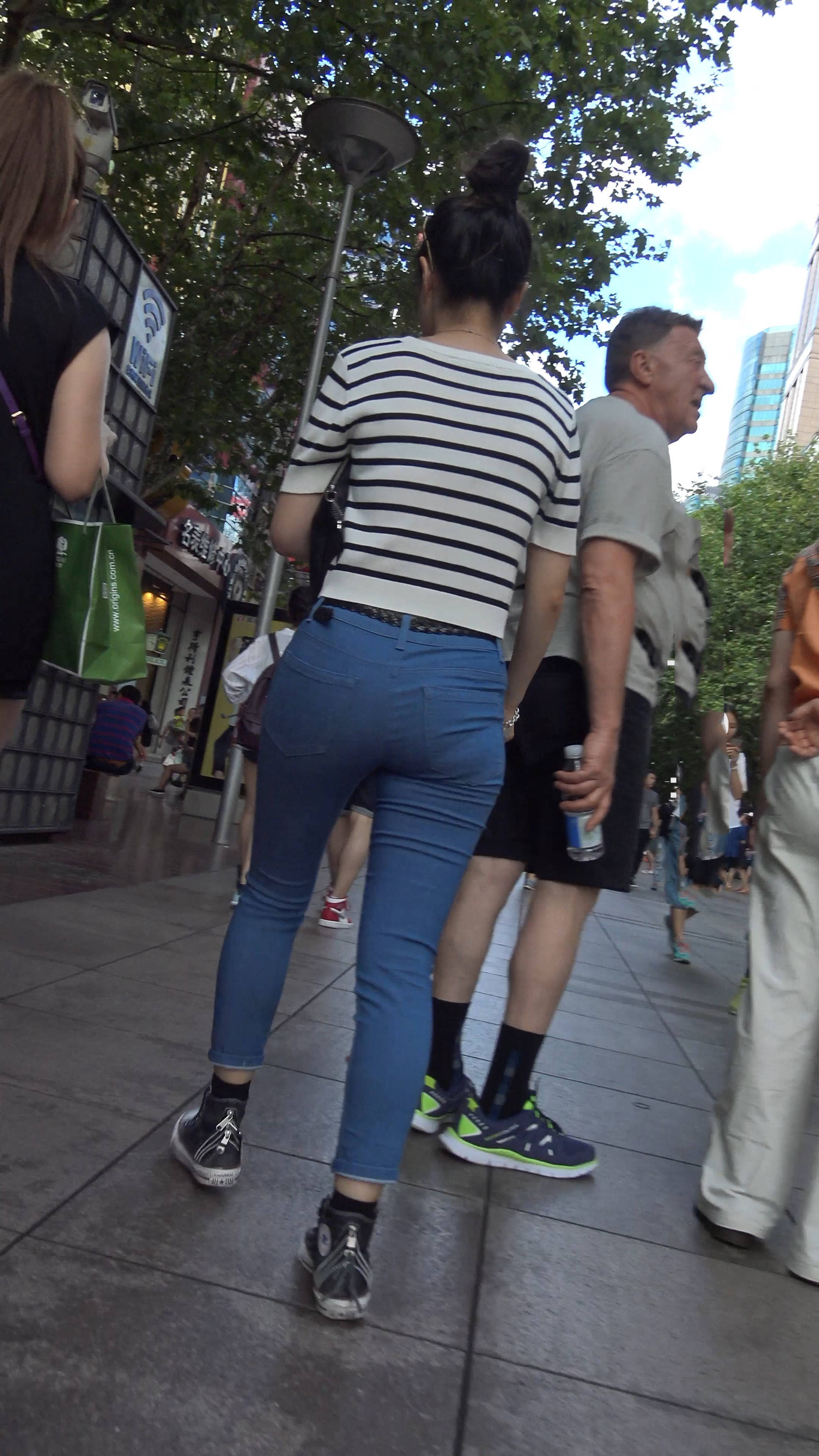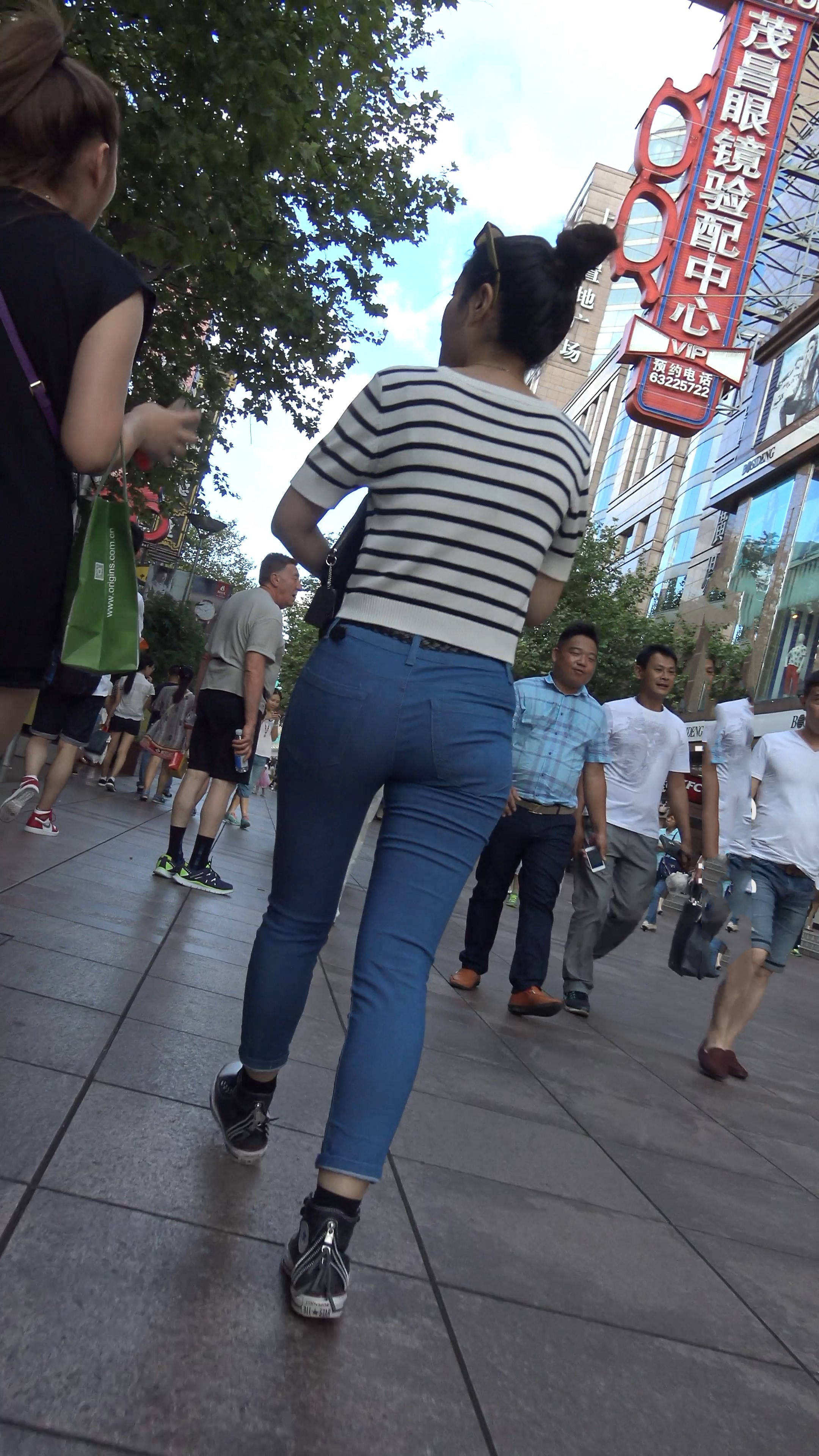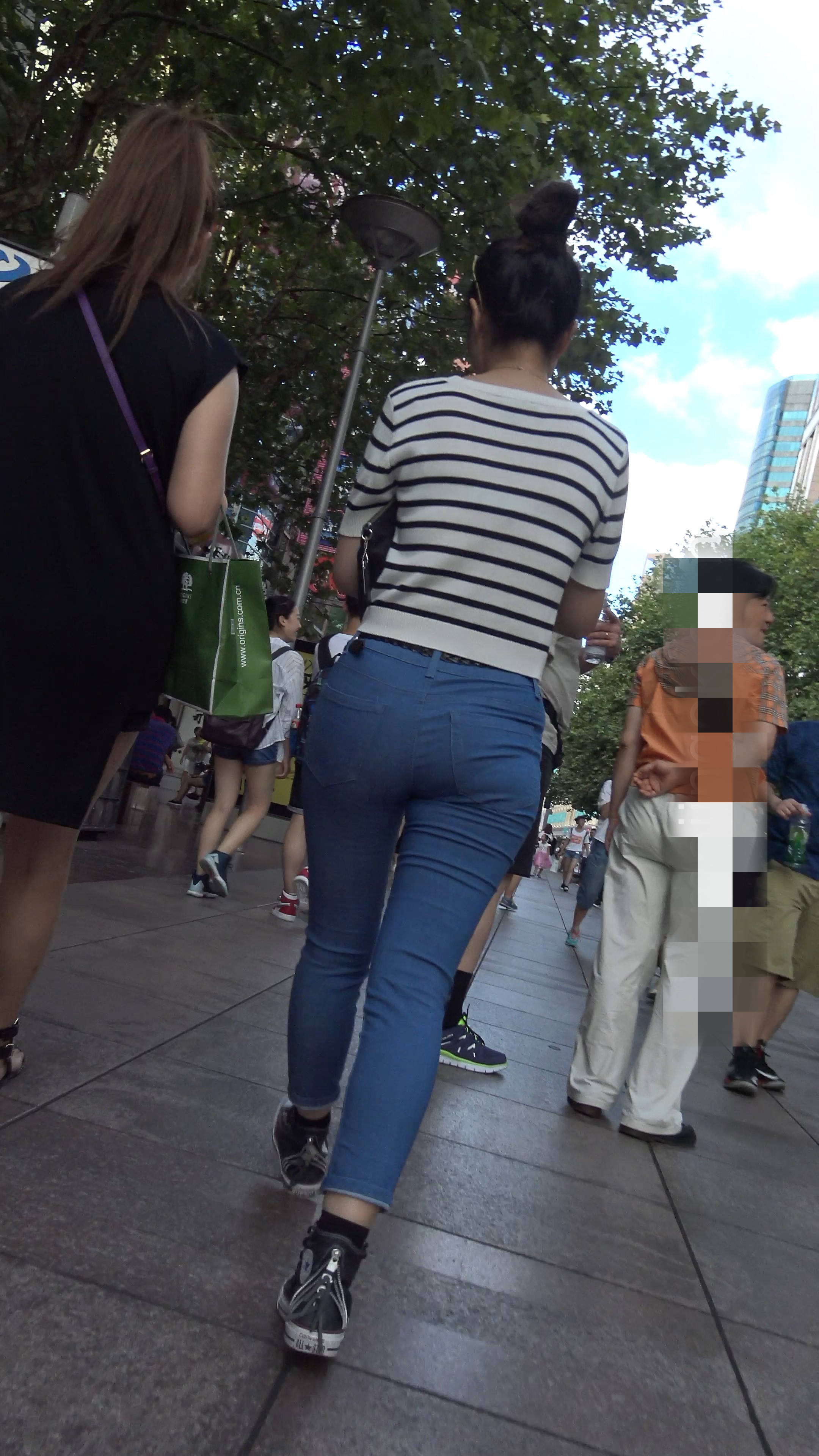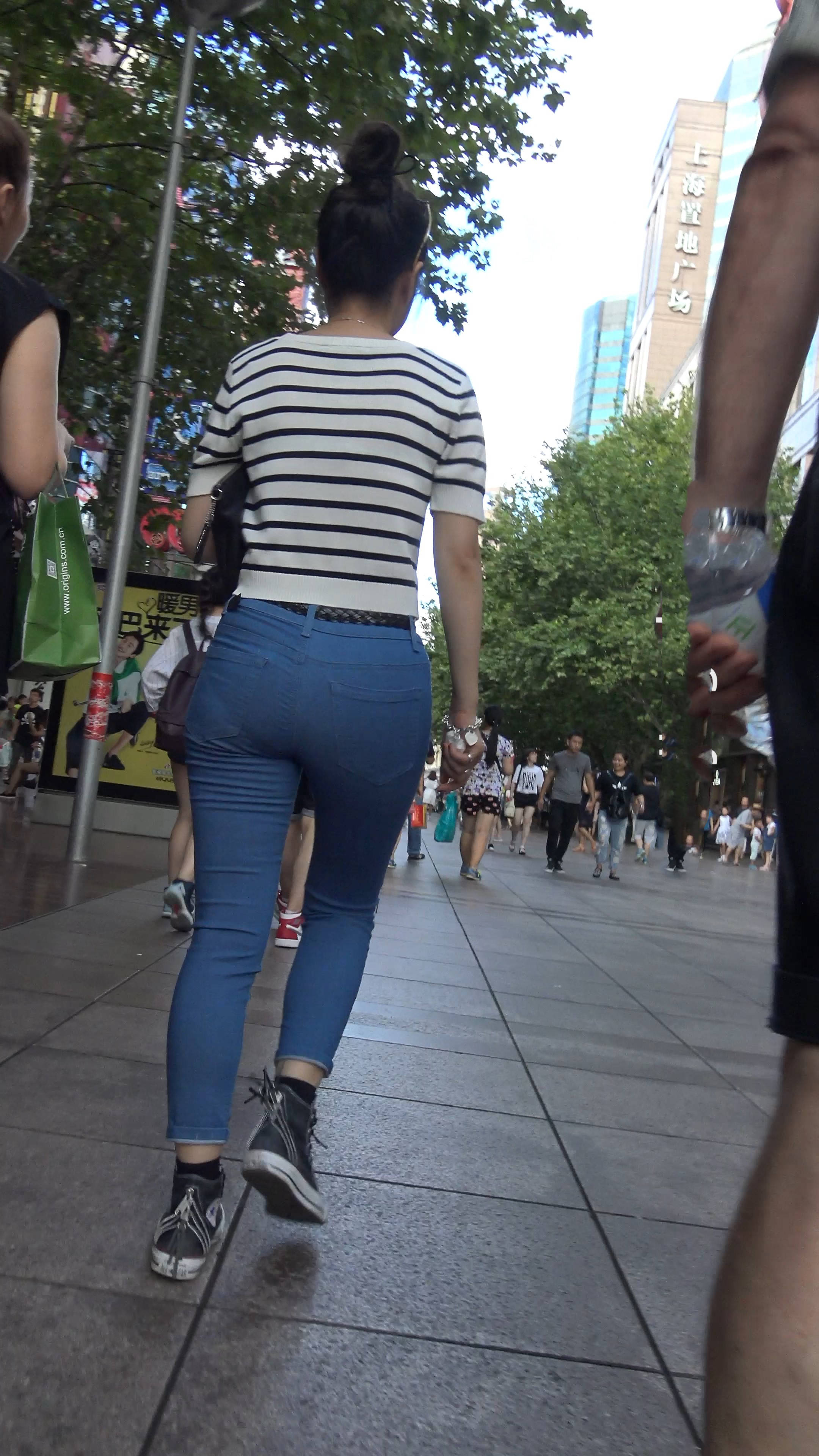 4k-蓝色紧身牛仔裤美眉兴高采烈的跟闺蜜逛街 编号7553