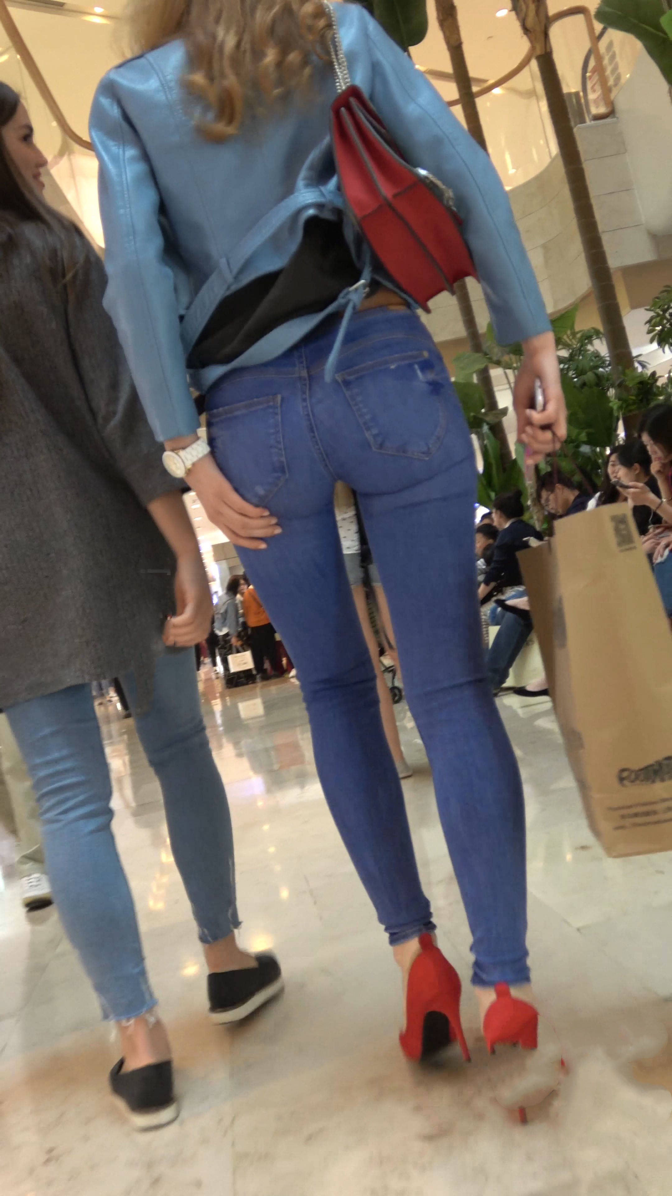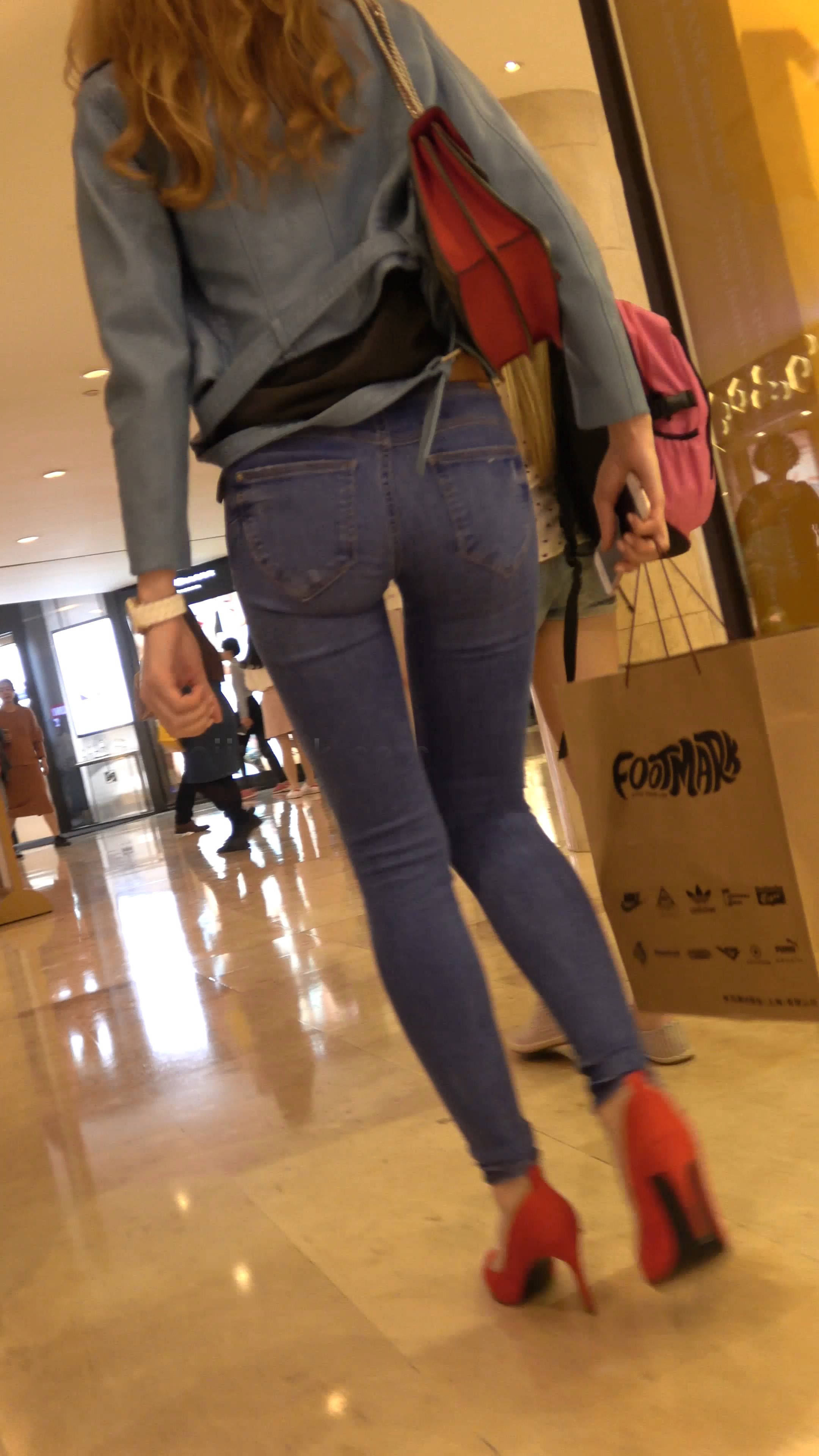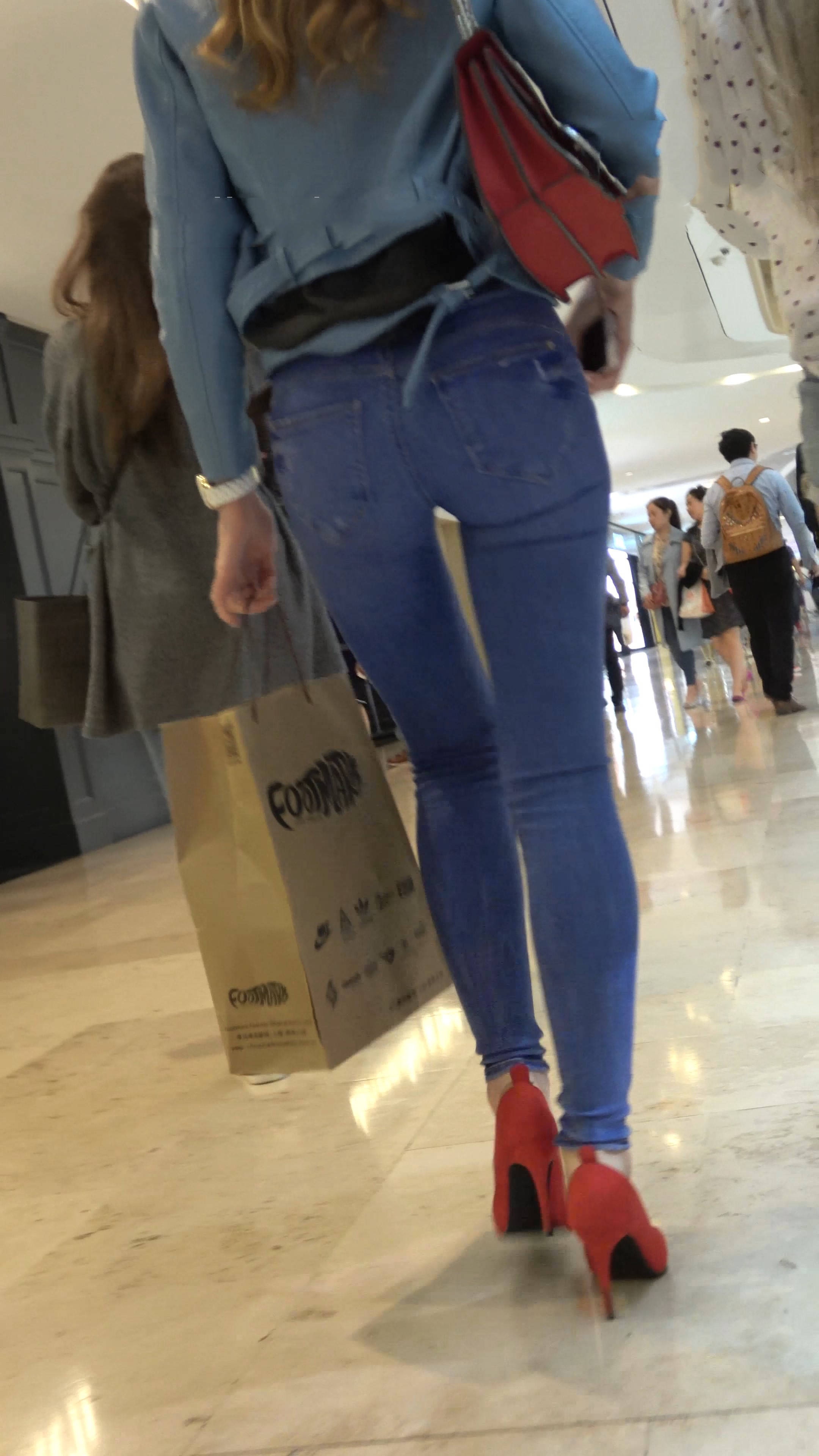 4k-街拍超紧身蓝牛红高跟鞋高挑美女(上) 编号7577