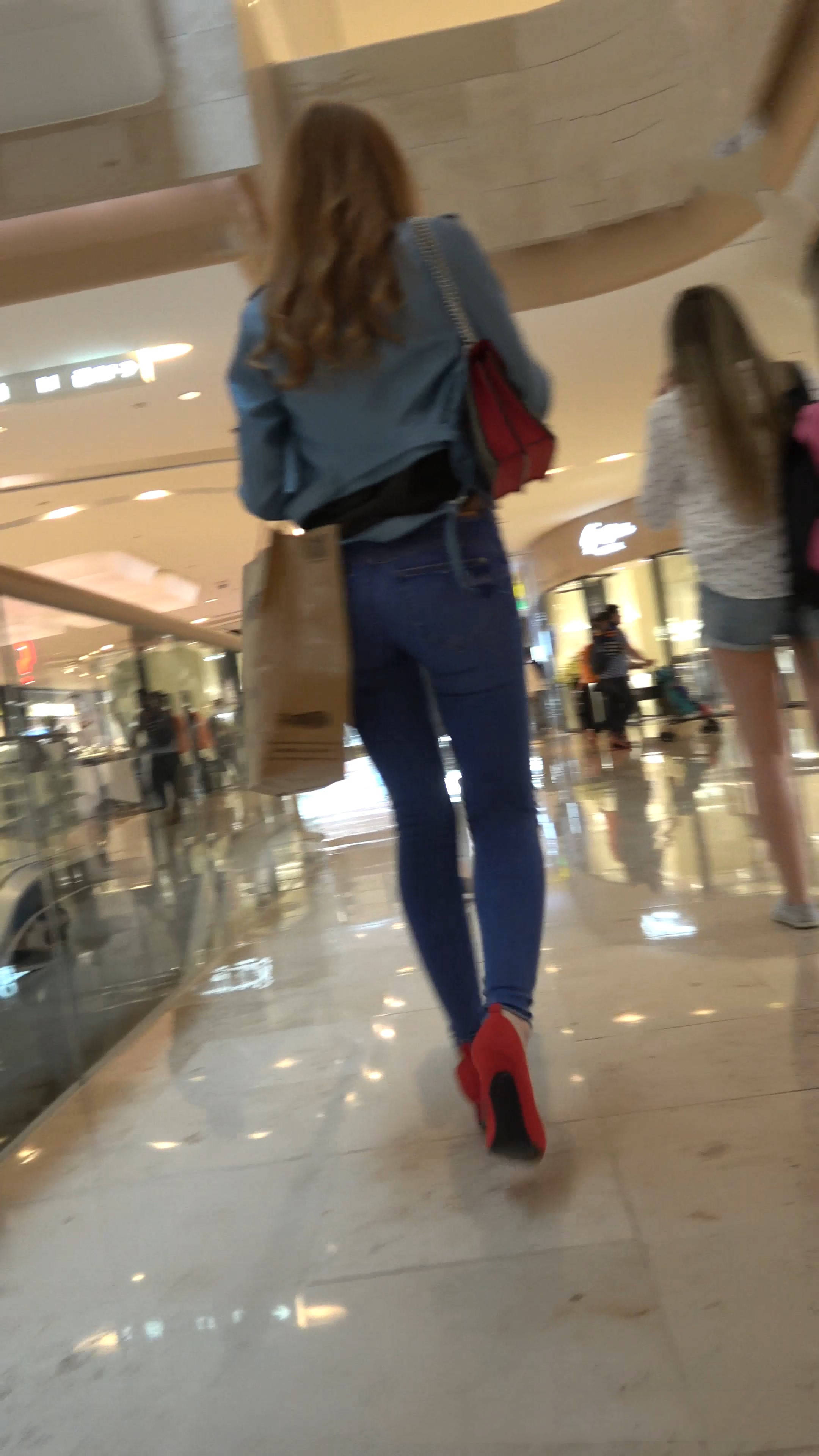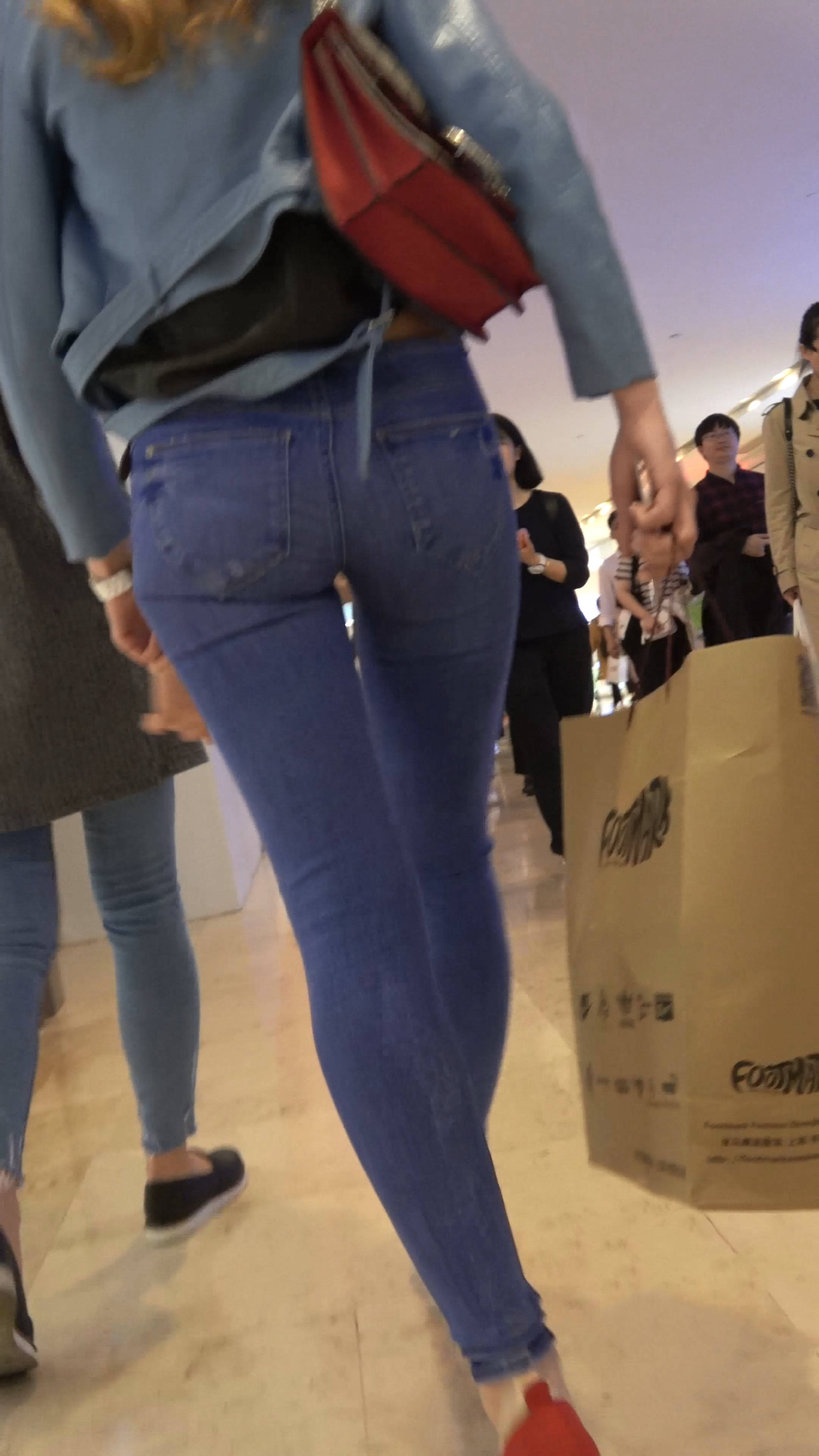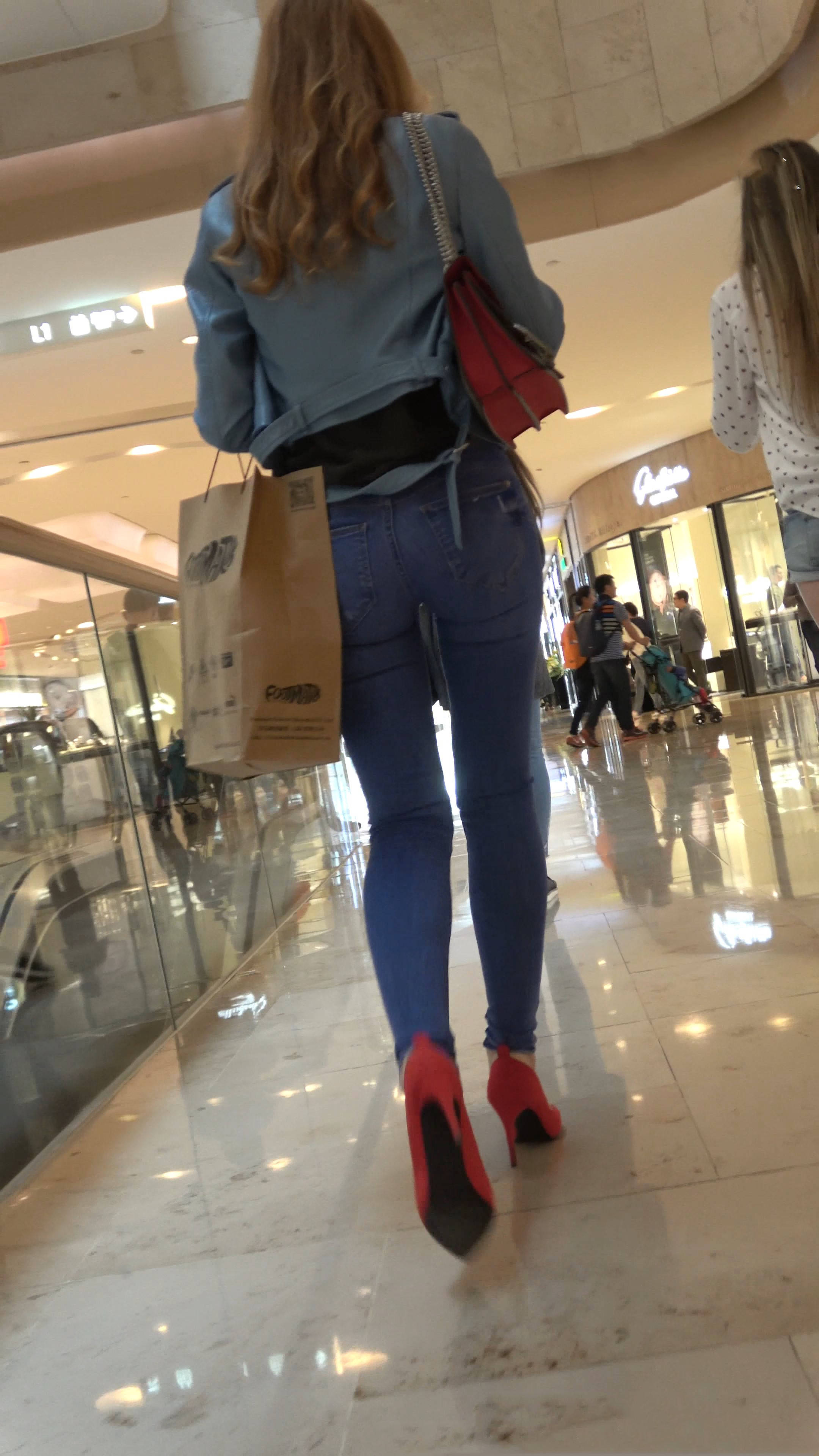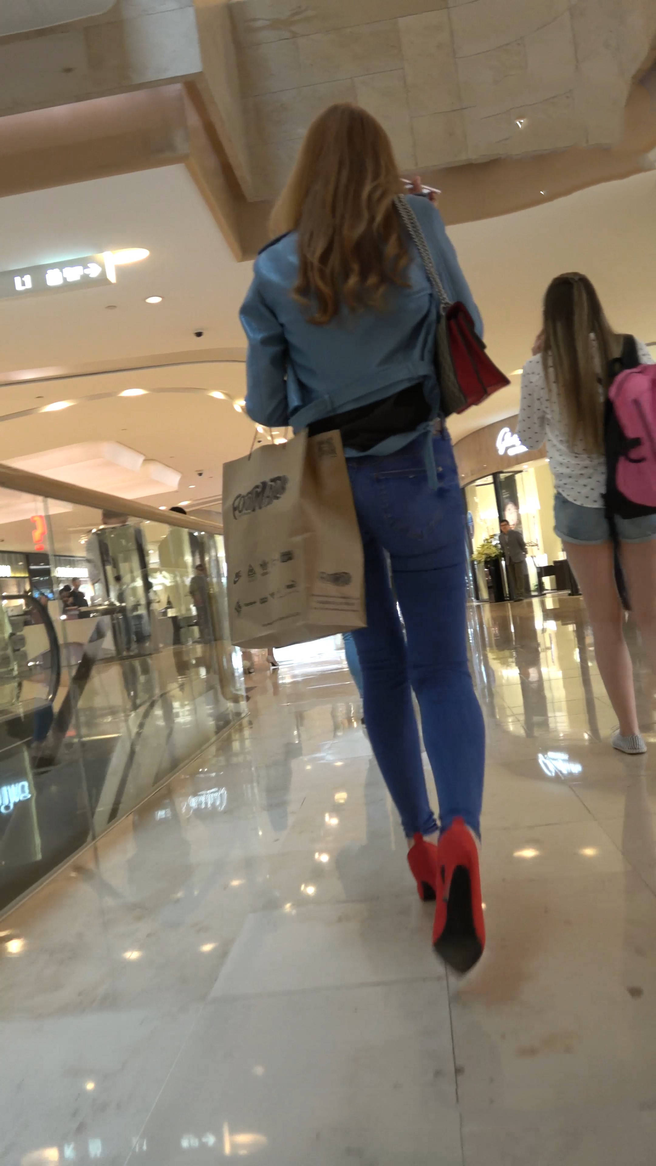 4k-街拍超紧身蓝牛红高跟鞋高挑美女(上) 编号7577