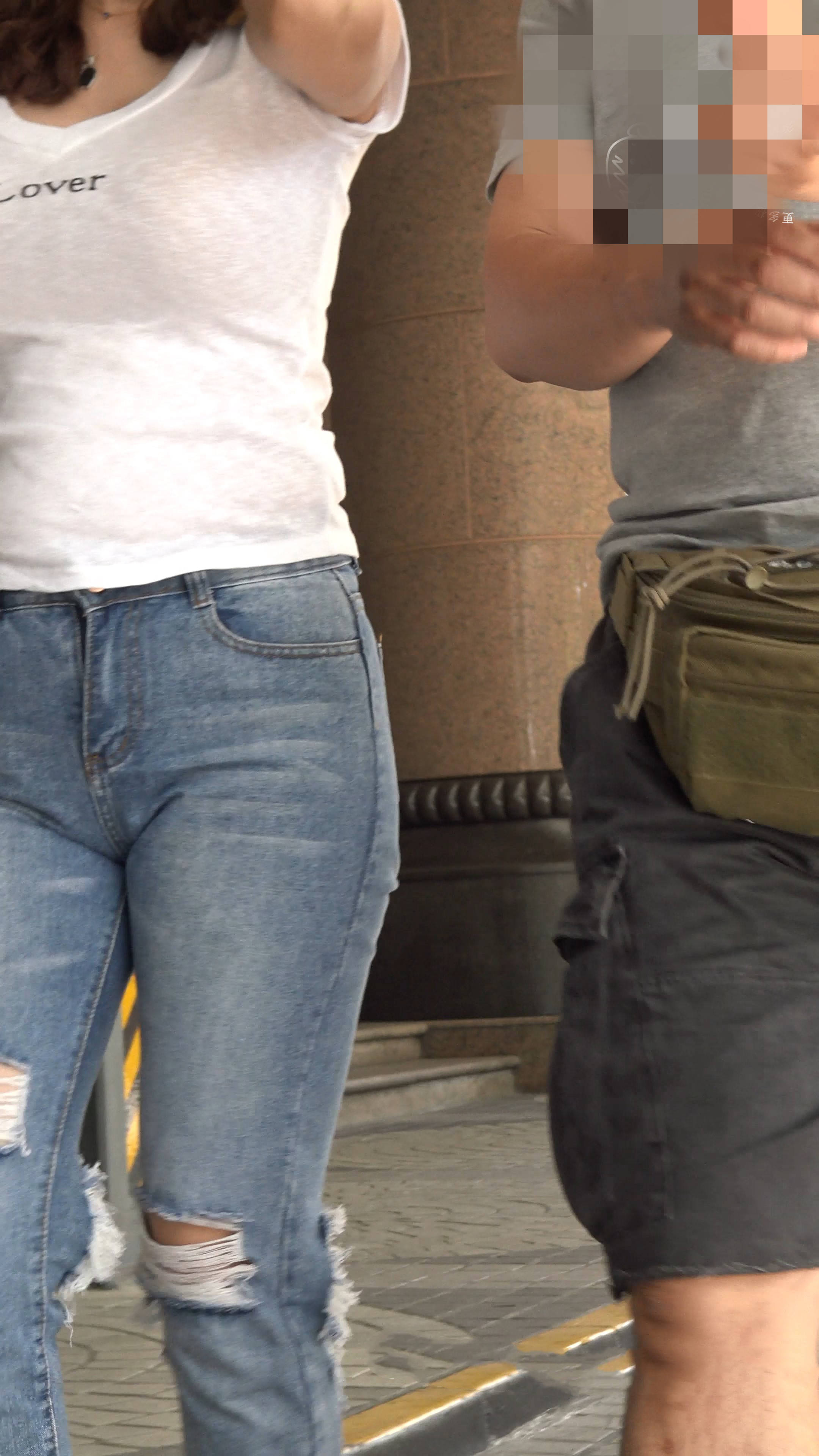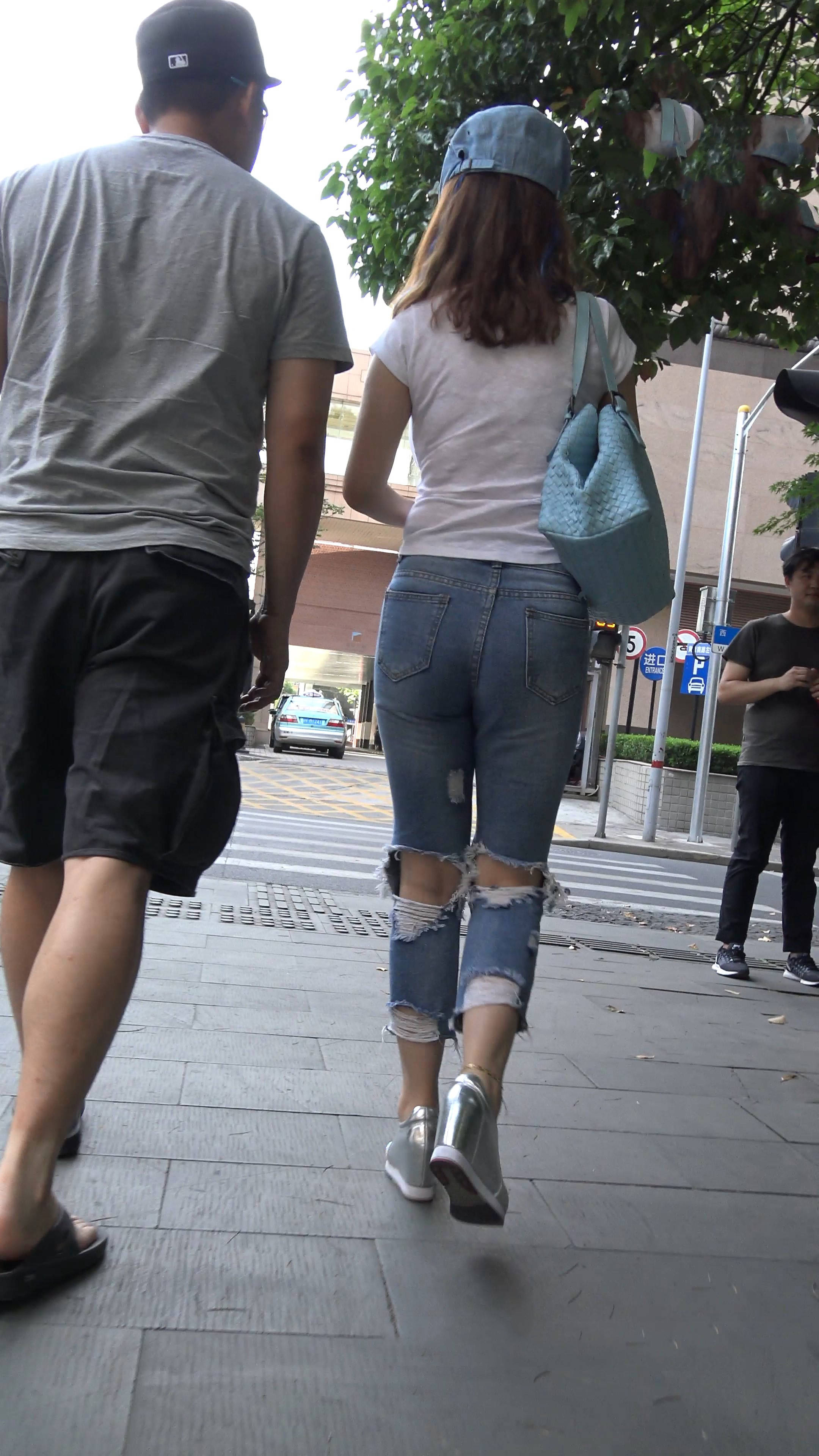 4k-街拍丰满紧身破洞蓝牛大美女 编号7589
