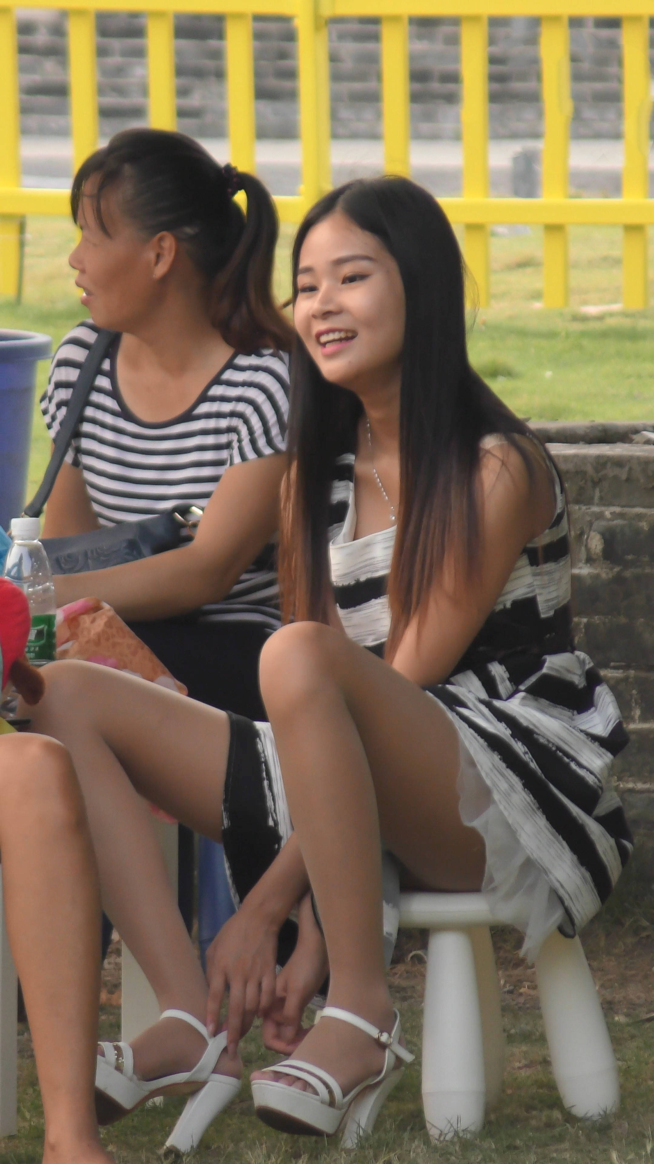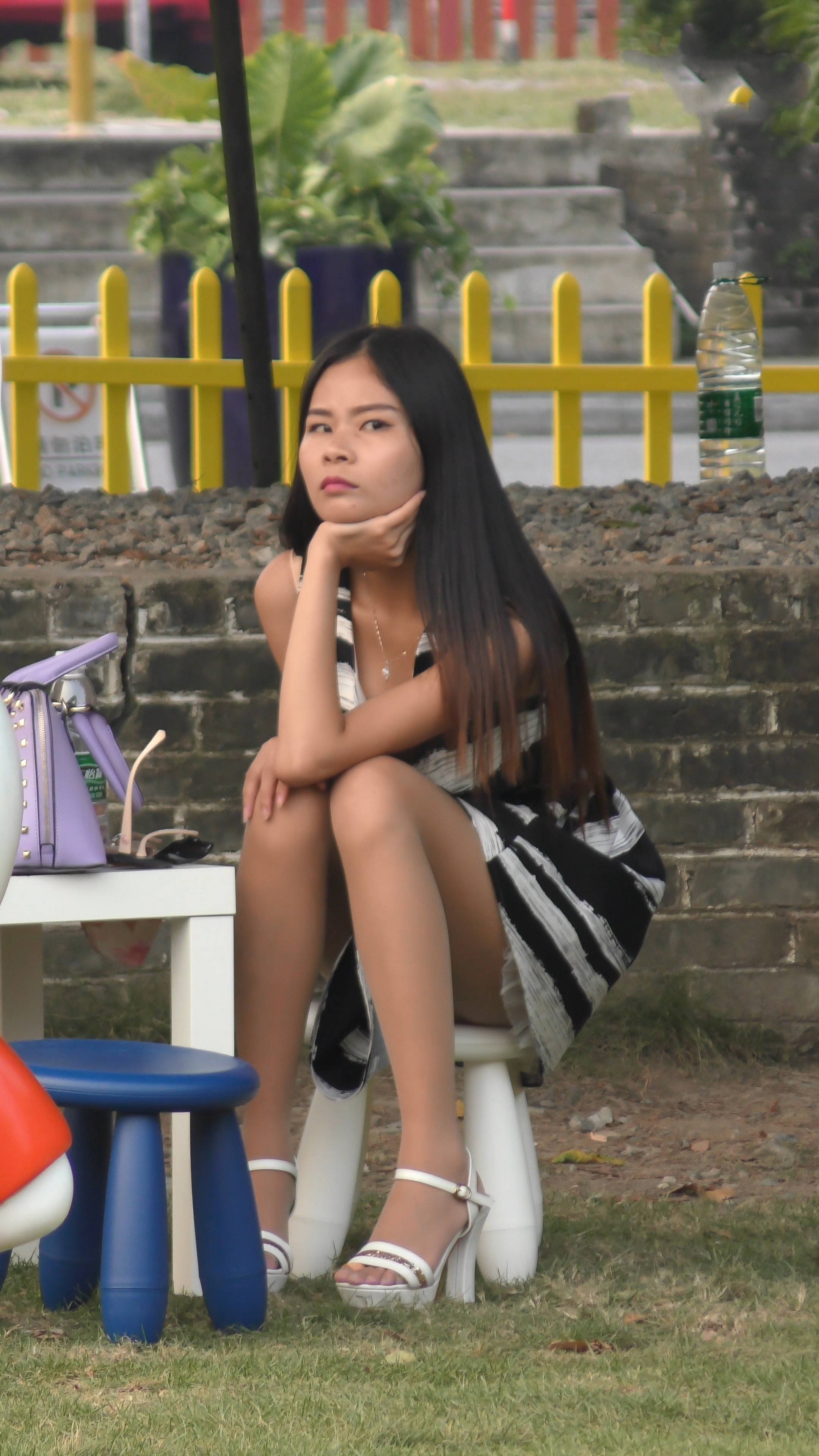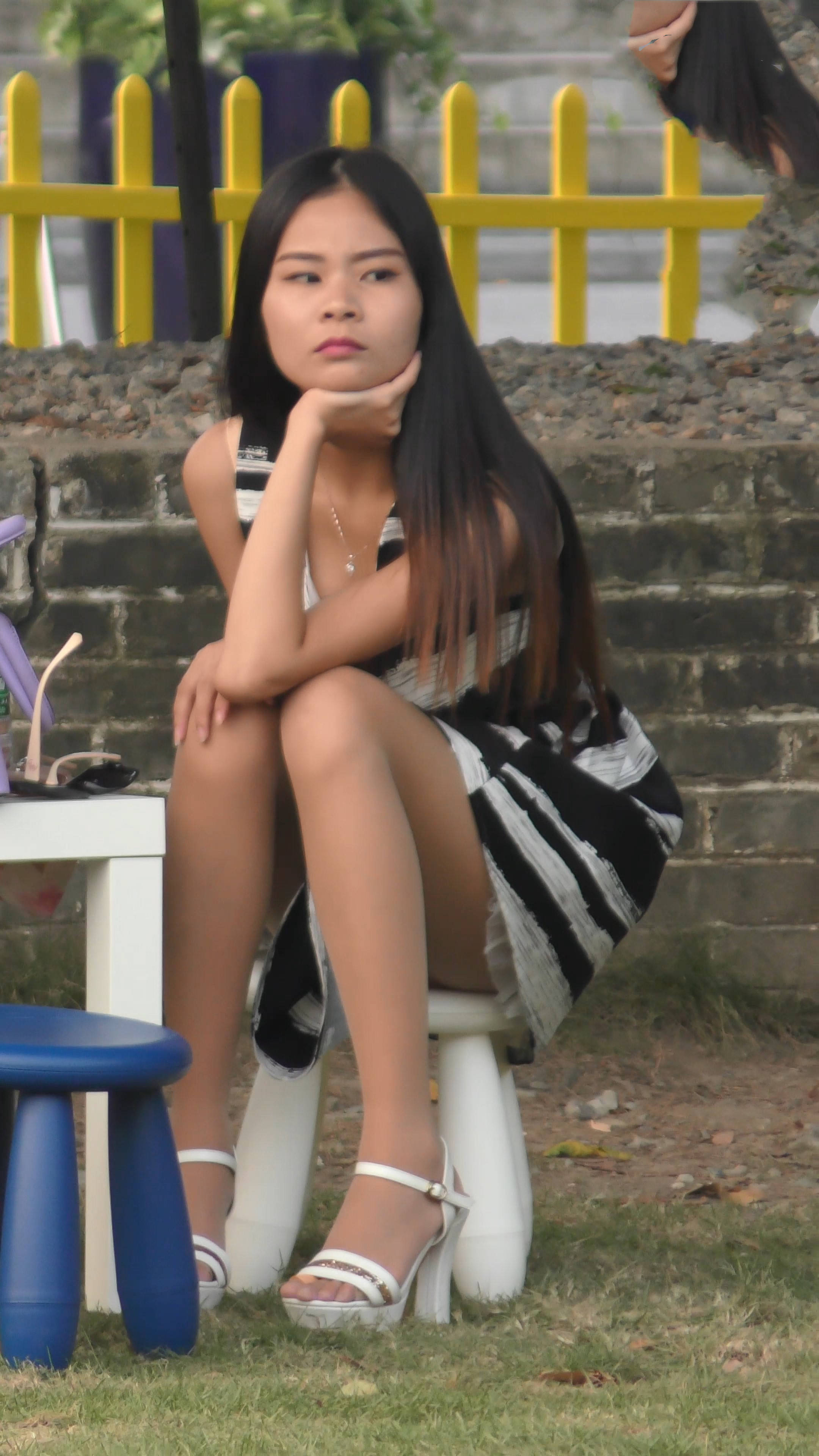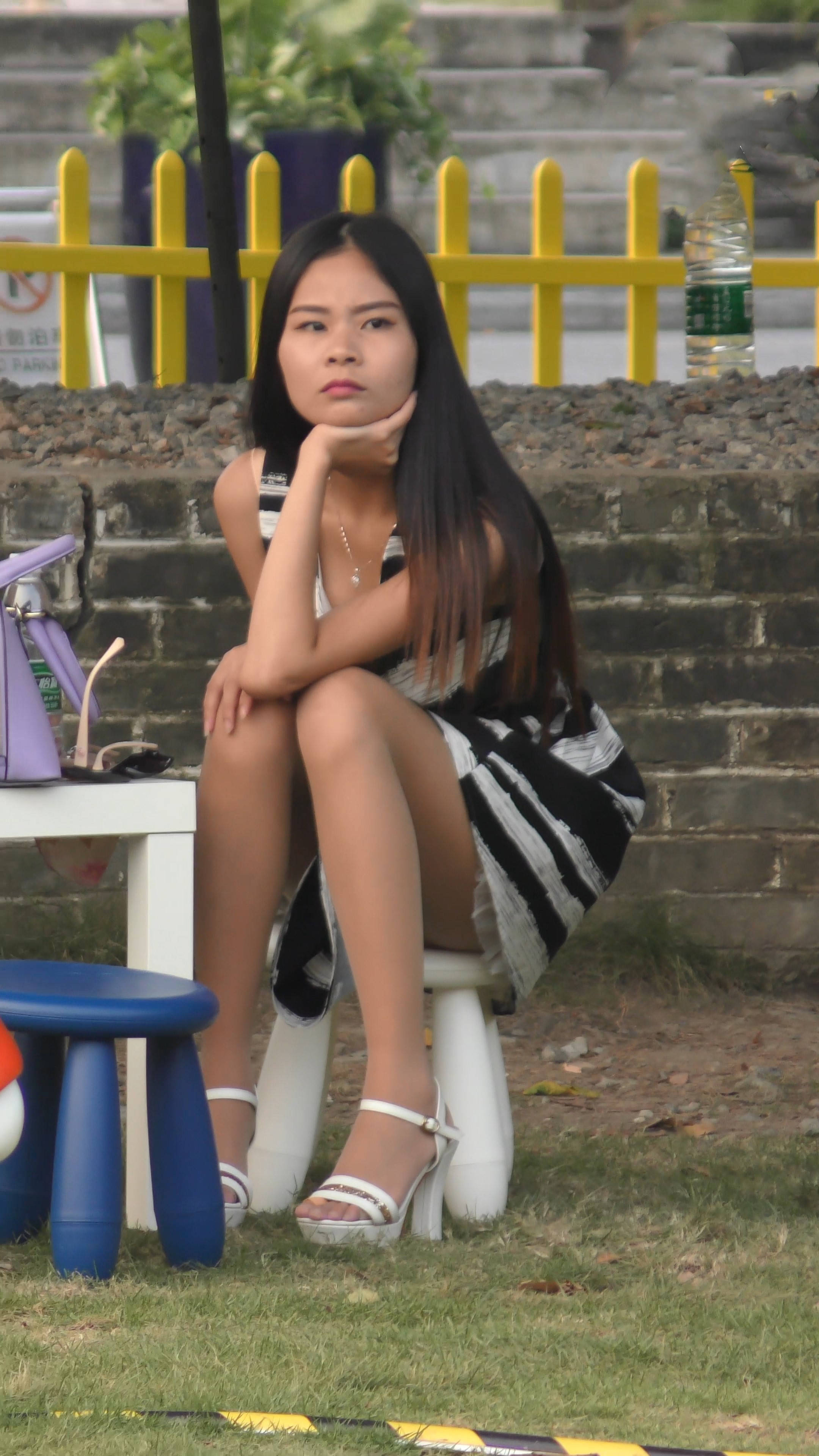 4k-公园石凳上发呆的肉丝袜连衣裙妹纸 编号7593