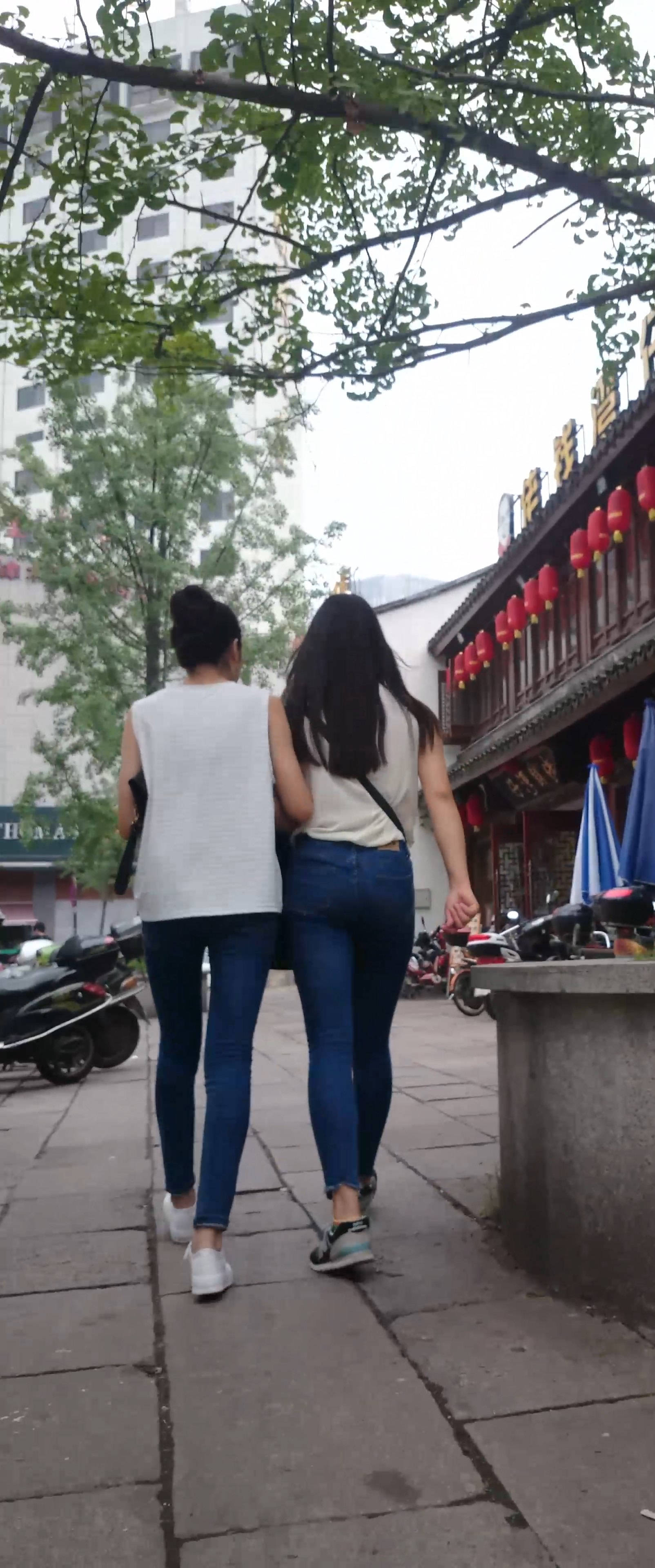 4k-街拍极品美臀紧身蓝牛俩姐妹 编号7606