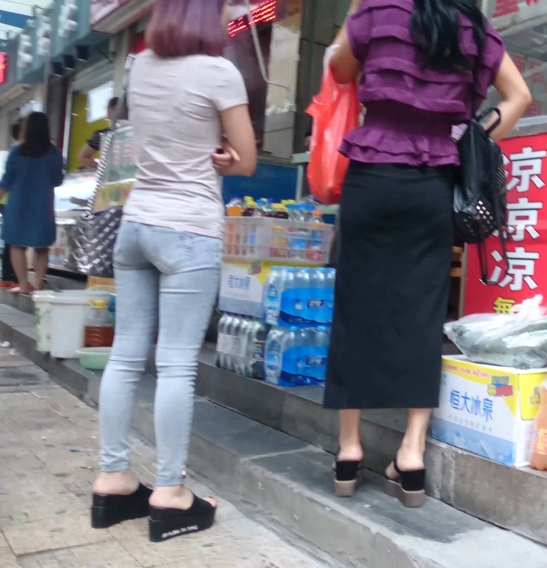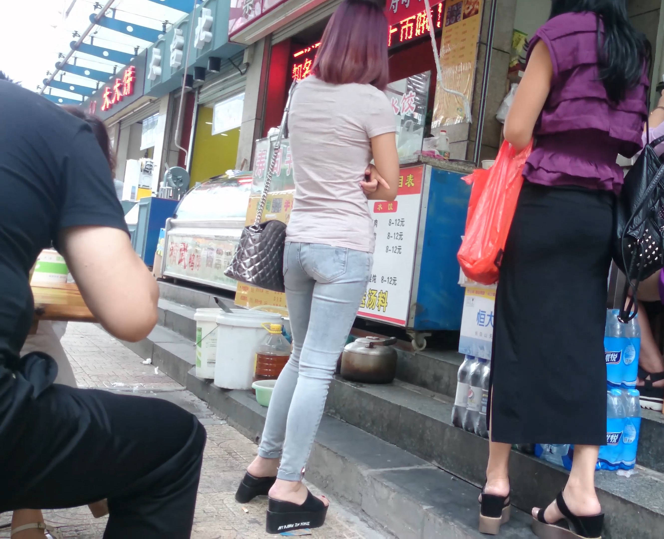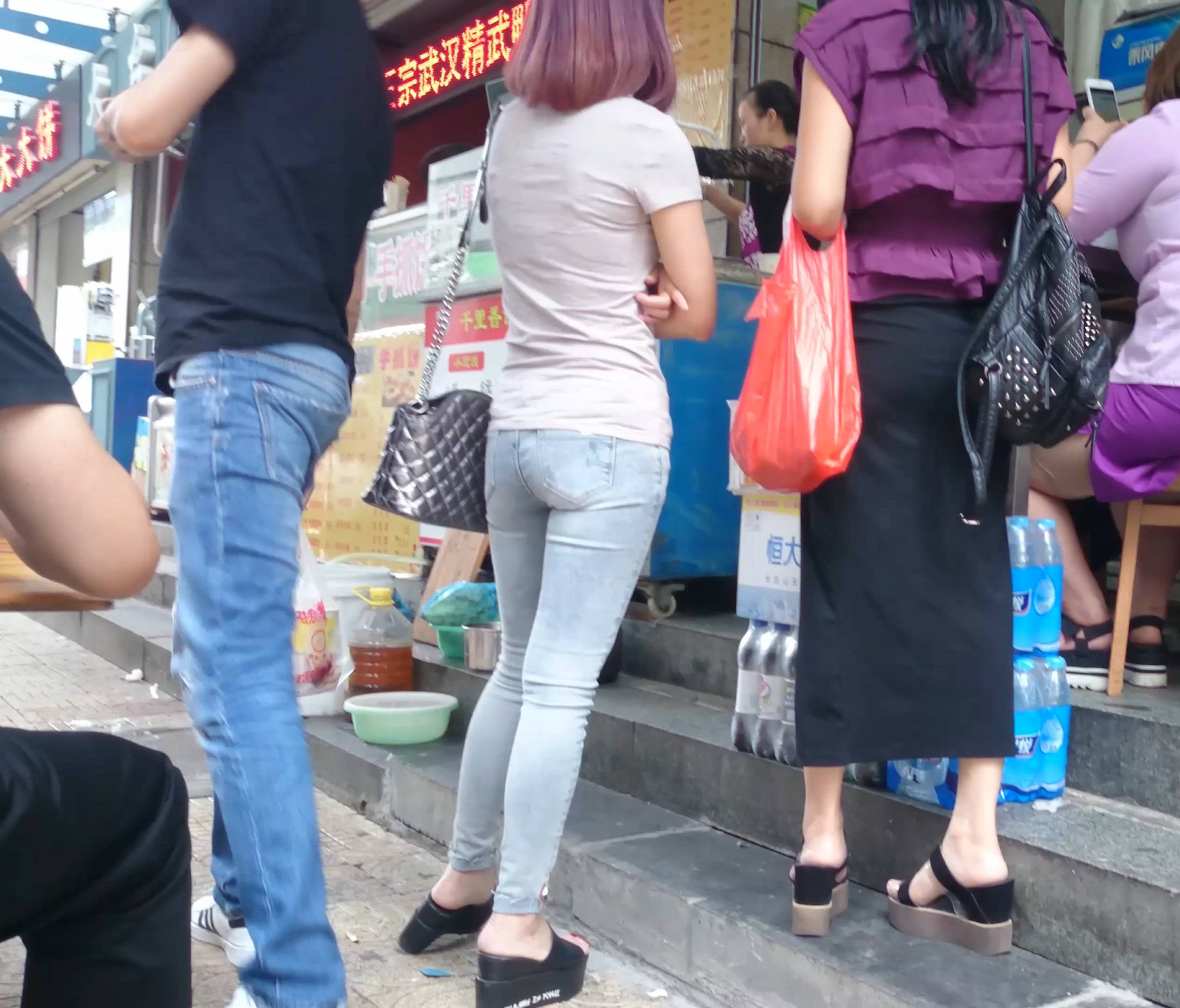4k-酒红色头发紧身蓝牛美臀少妇 编号7609