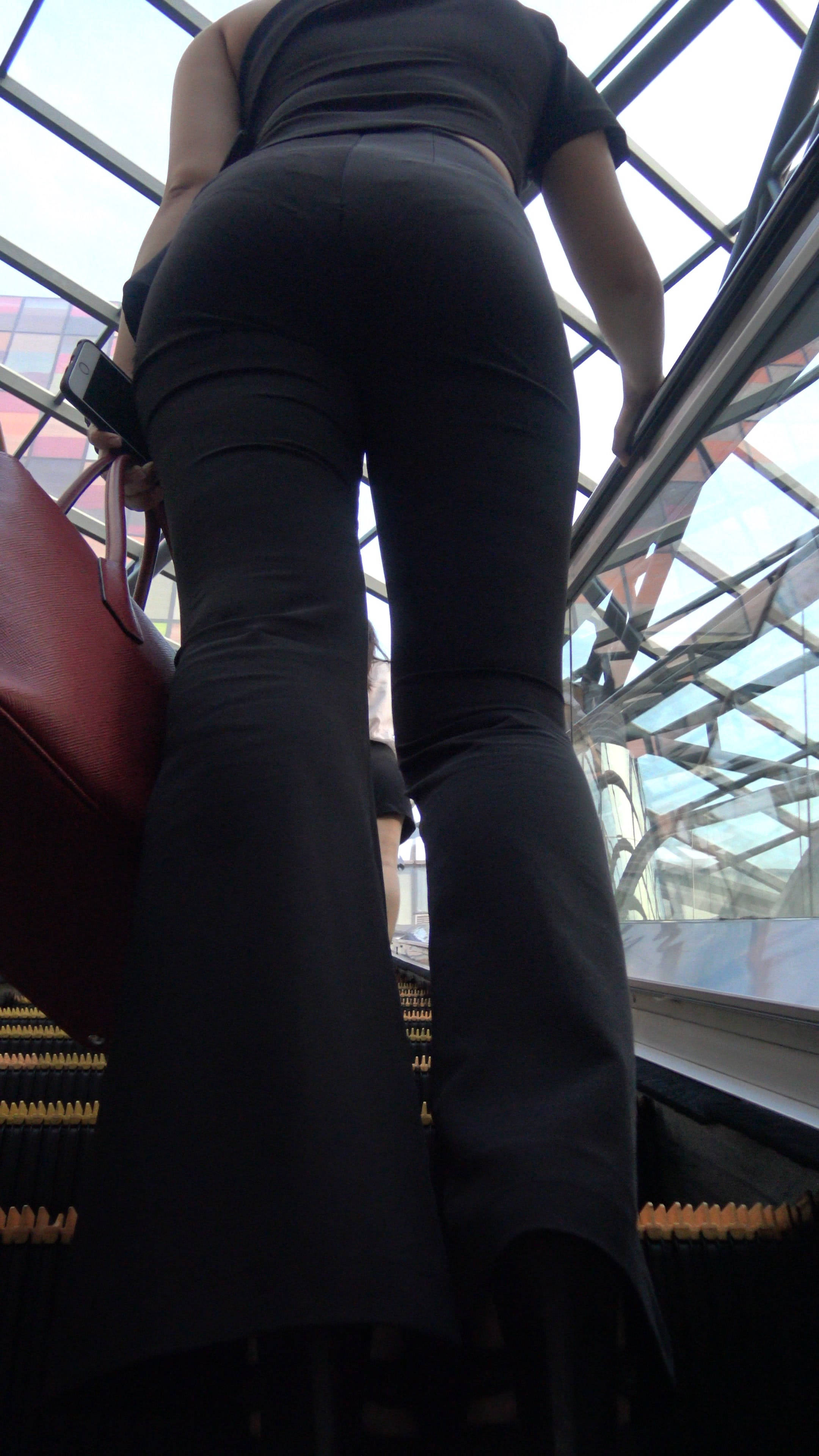 4k-街拍丰腴紧身黑裤短发MM乘扶梯 编号7629