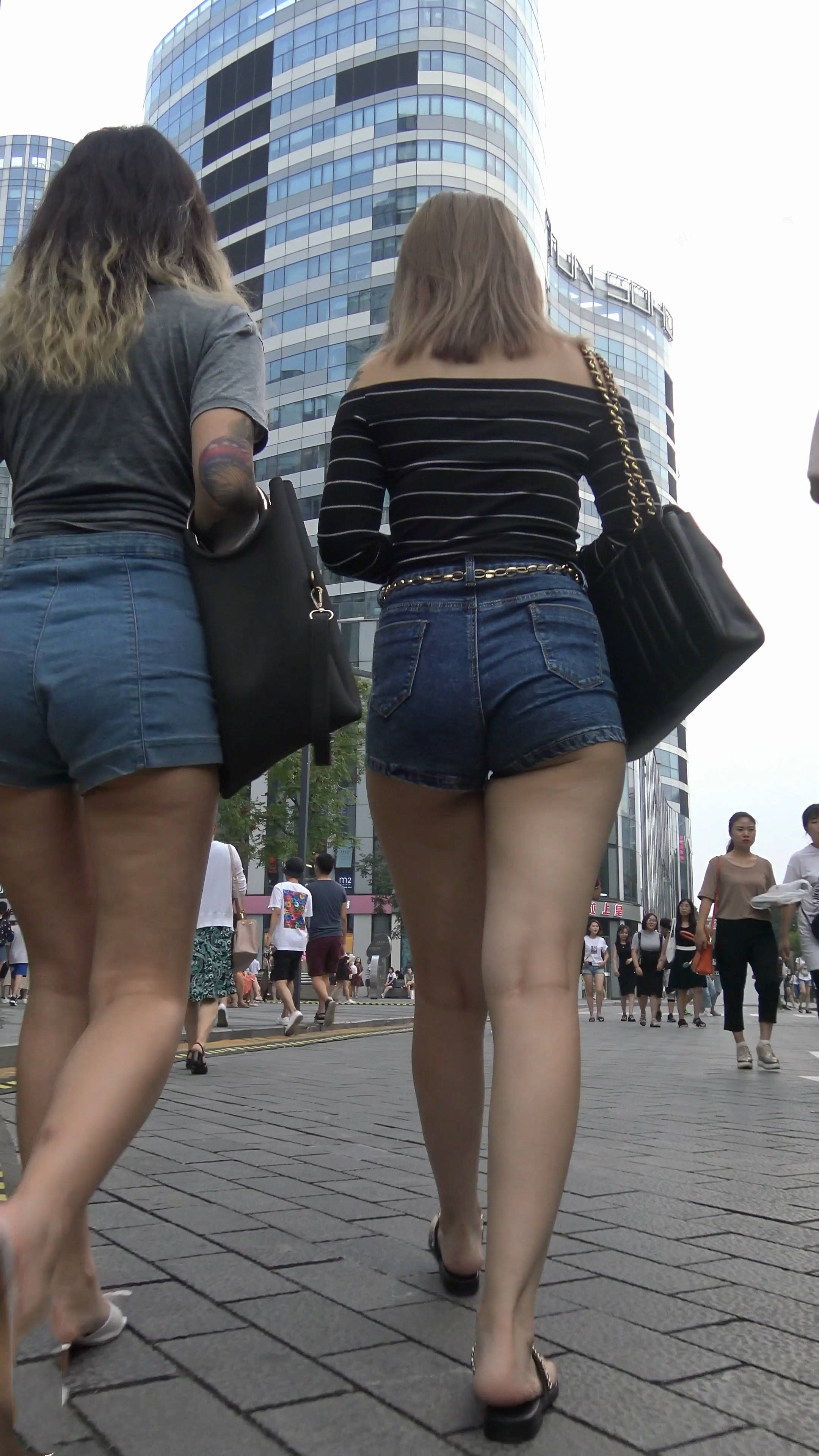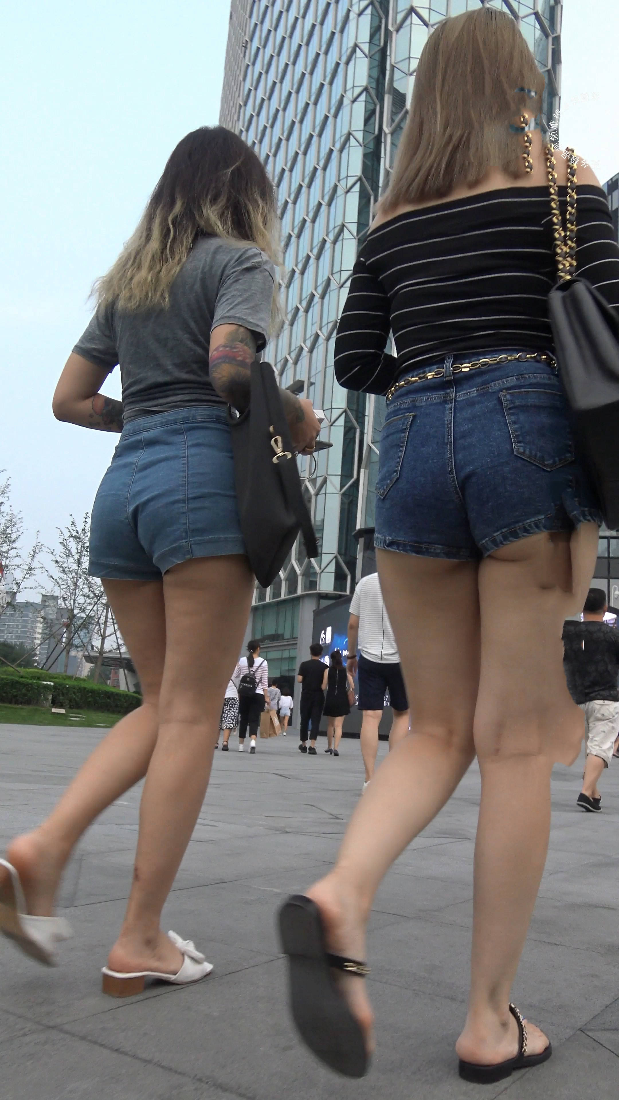 4k超清,街拍性感狂野纹身热裤姐妹淘 编号7680