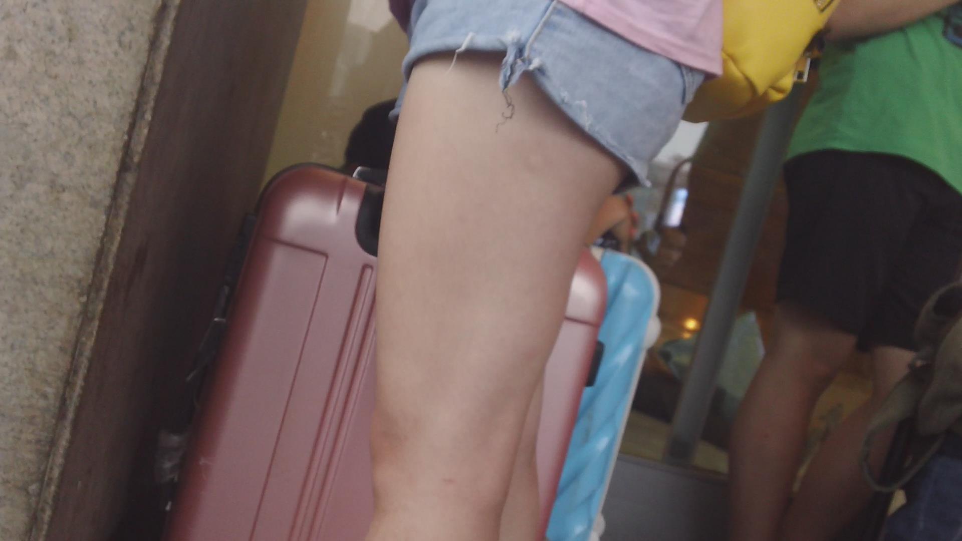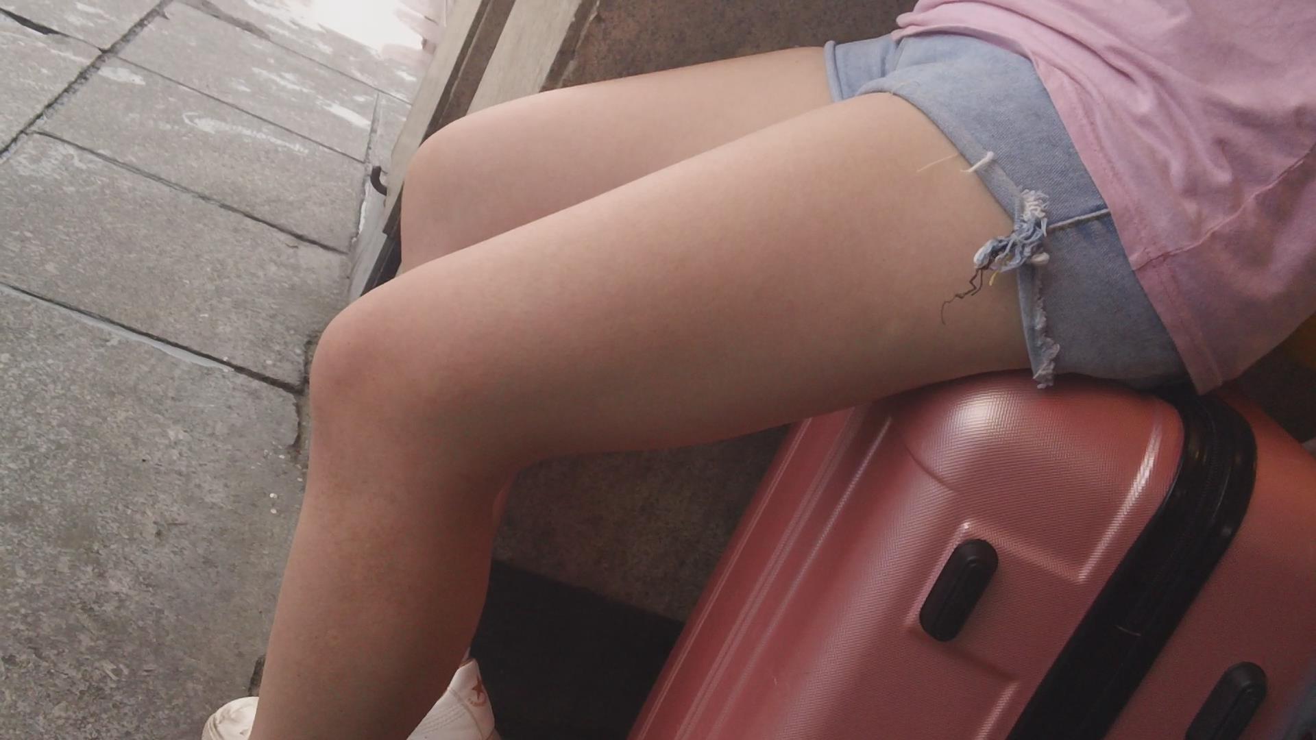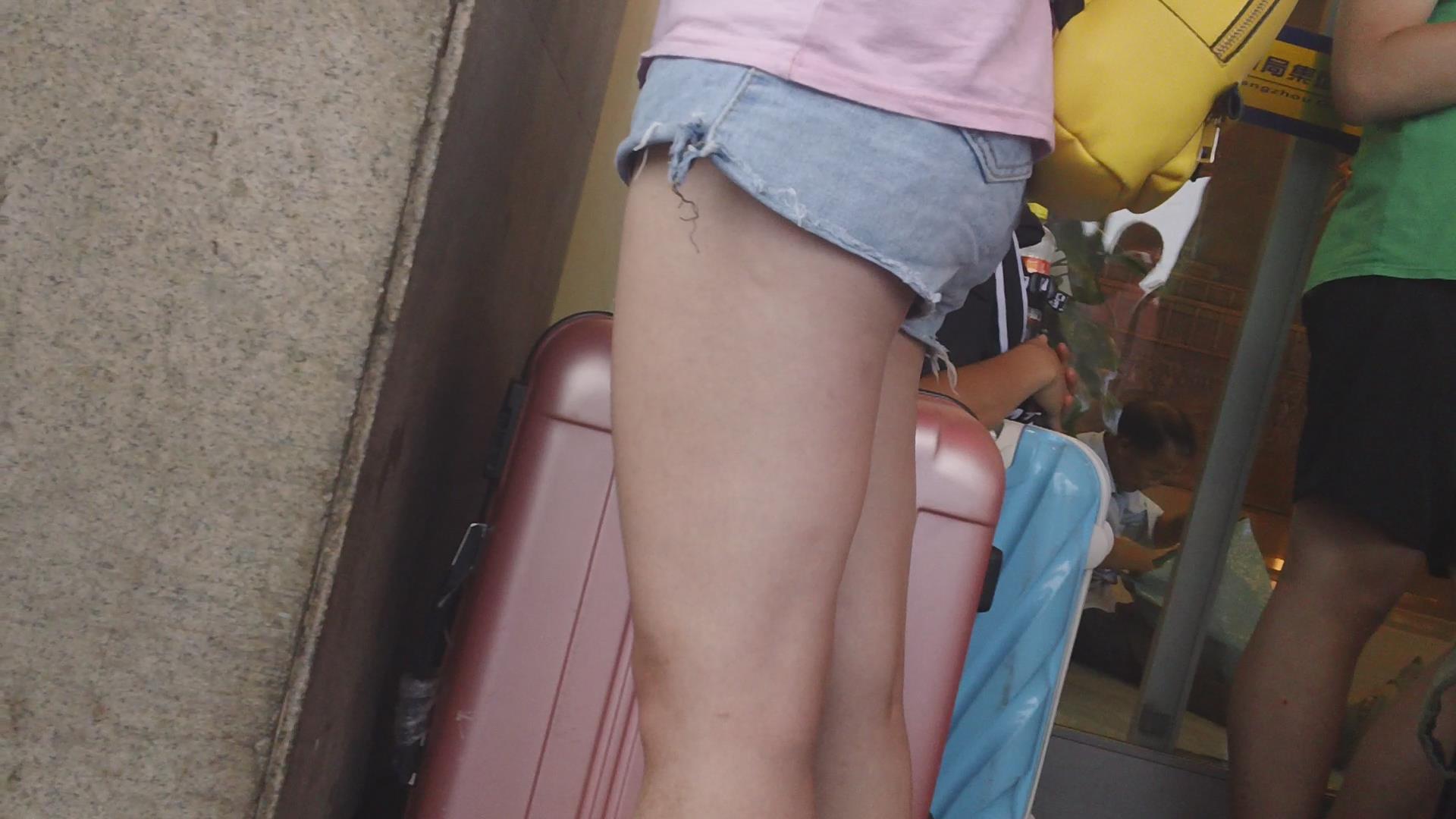 街拍超短热裤粉色T恤小妹 编号3655
