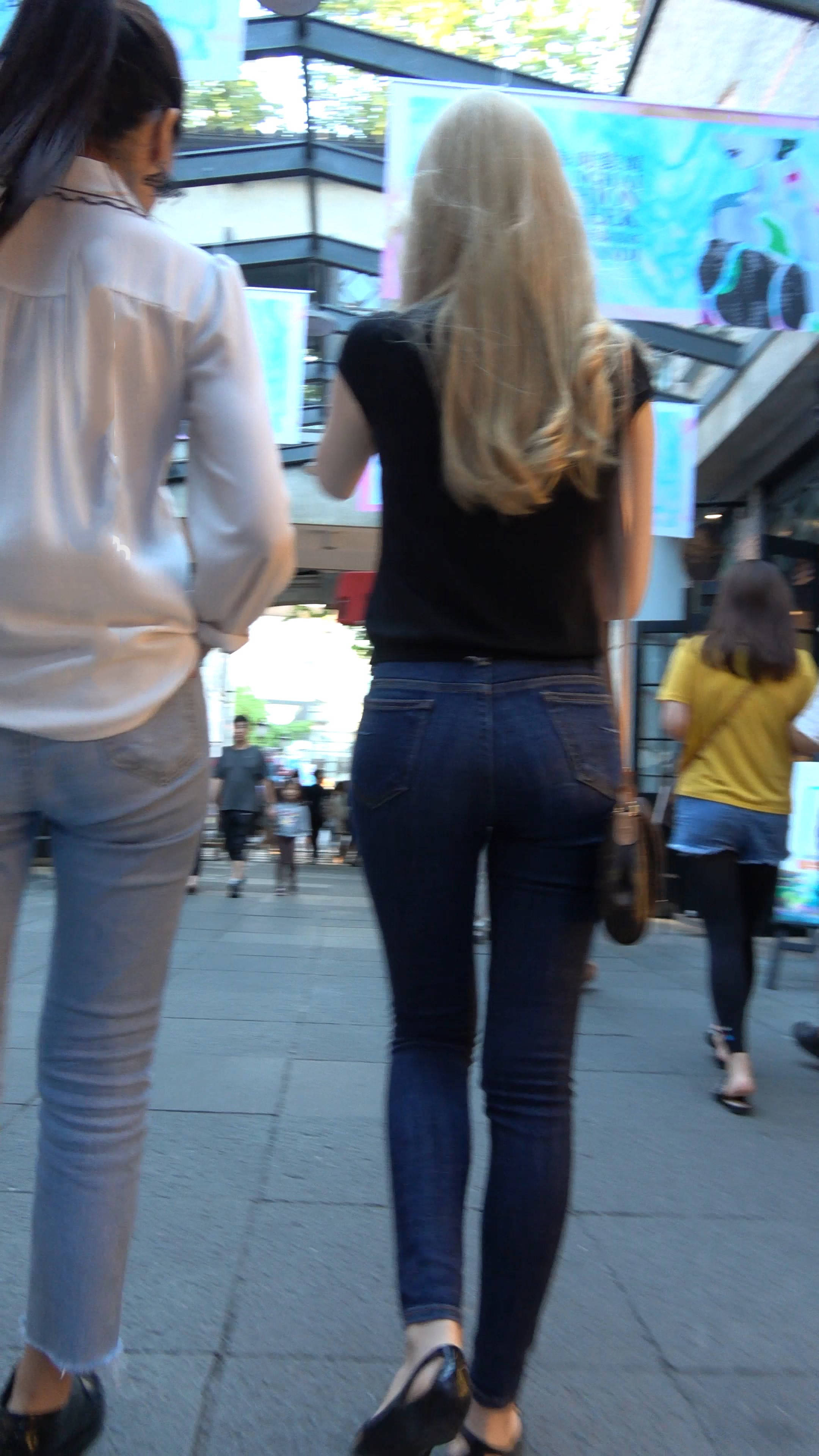 4k超清,街拍金发紧身蓝牛漂亮小姐姐 编号7688