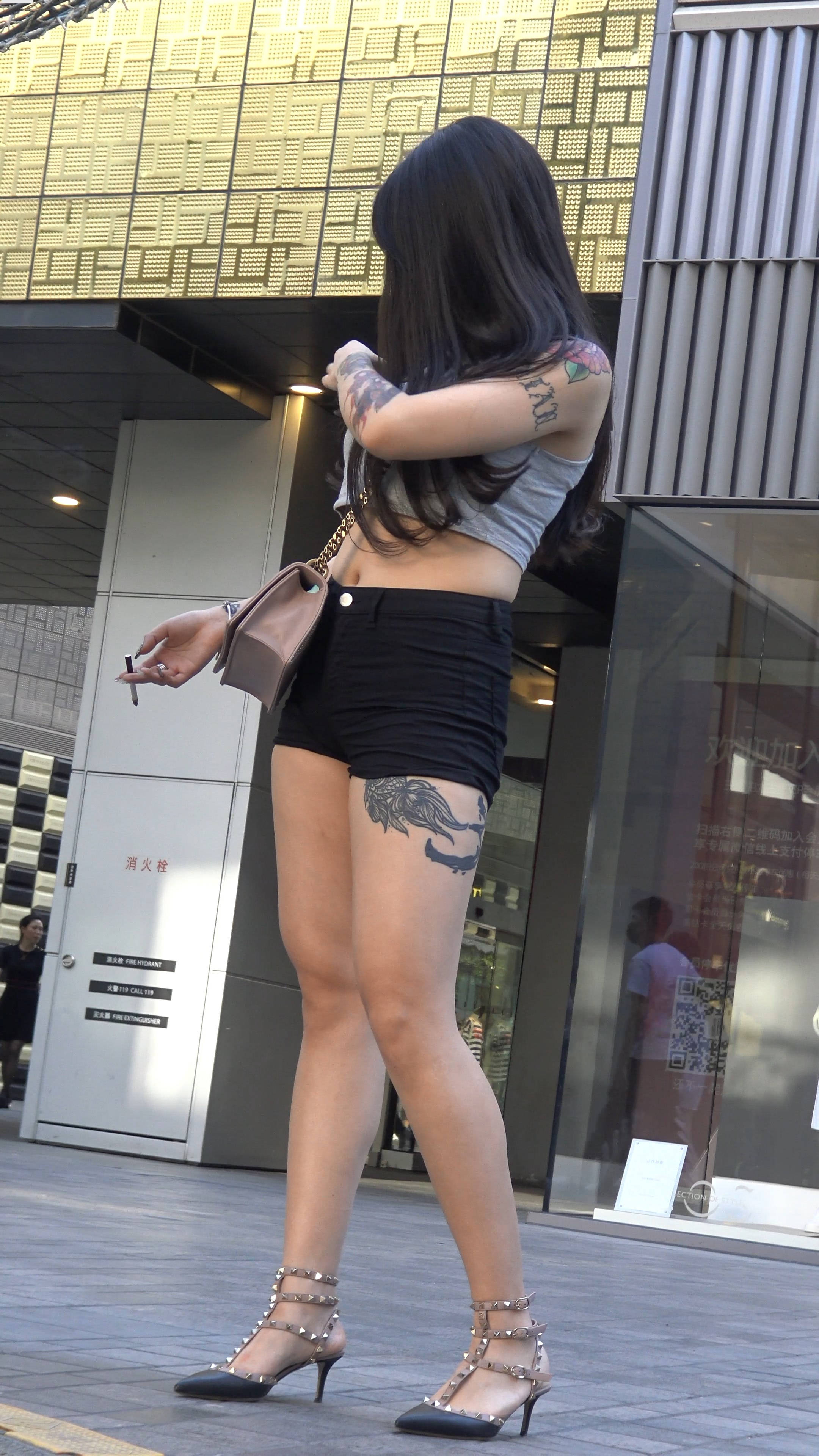 4k超清,霸气纹身性感热裤抽烟美女! 编号7689
