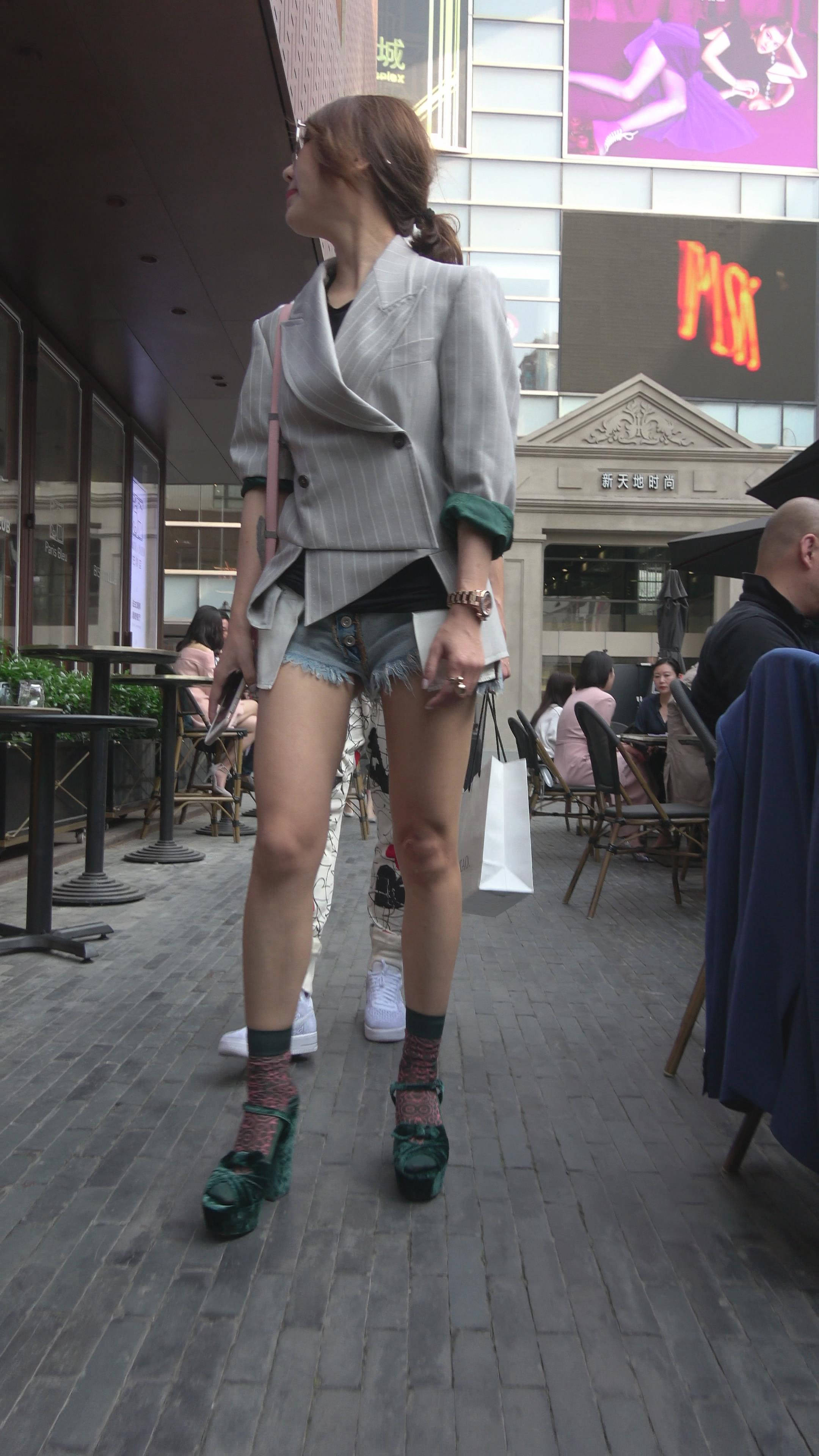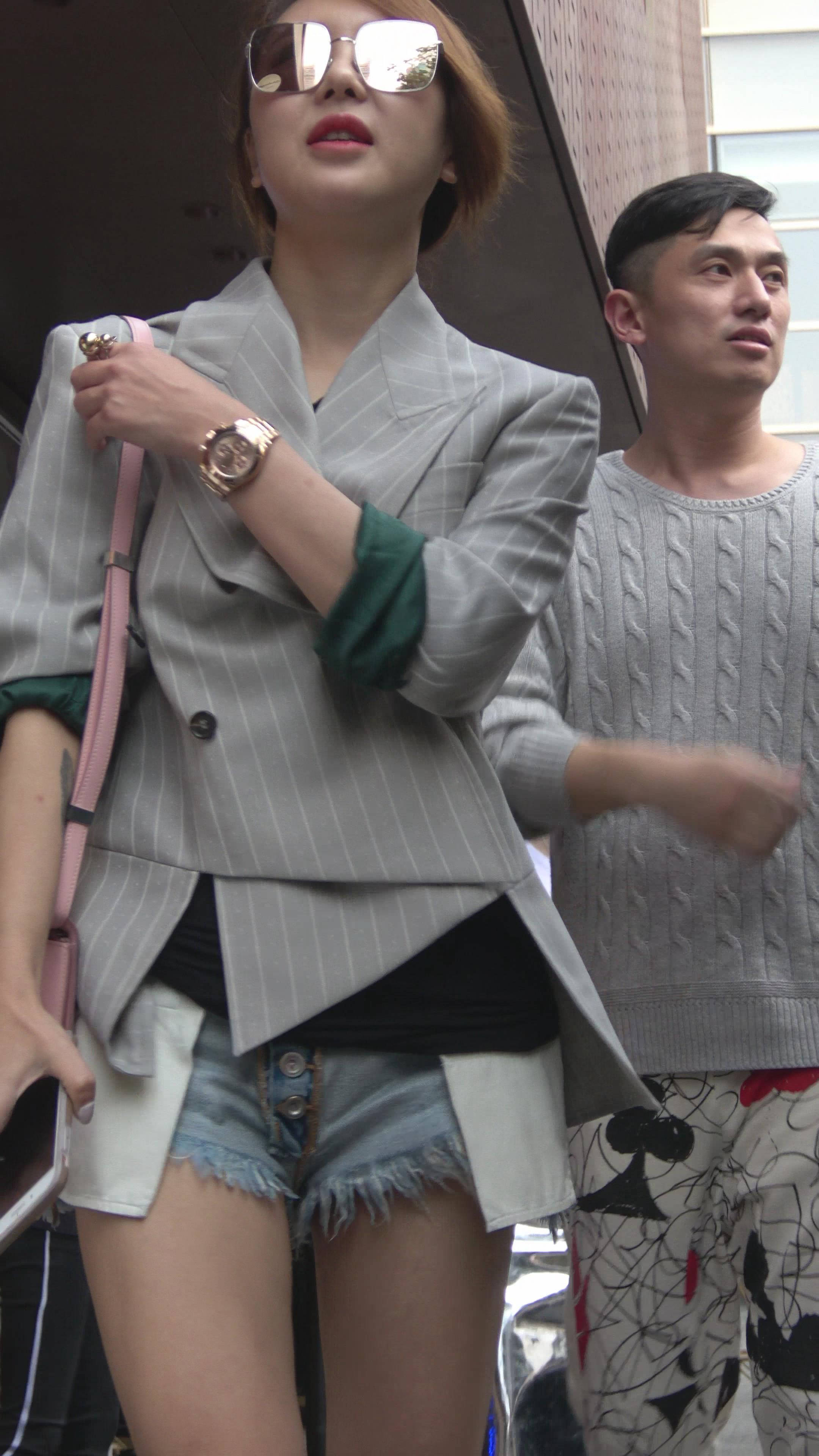 4K - 超短牛仔热裤美腿街拍气质大美女 编号7723