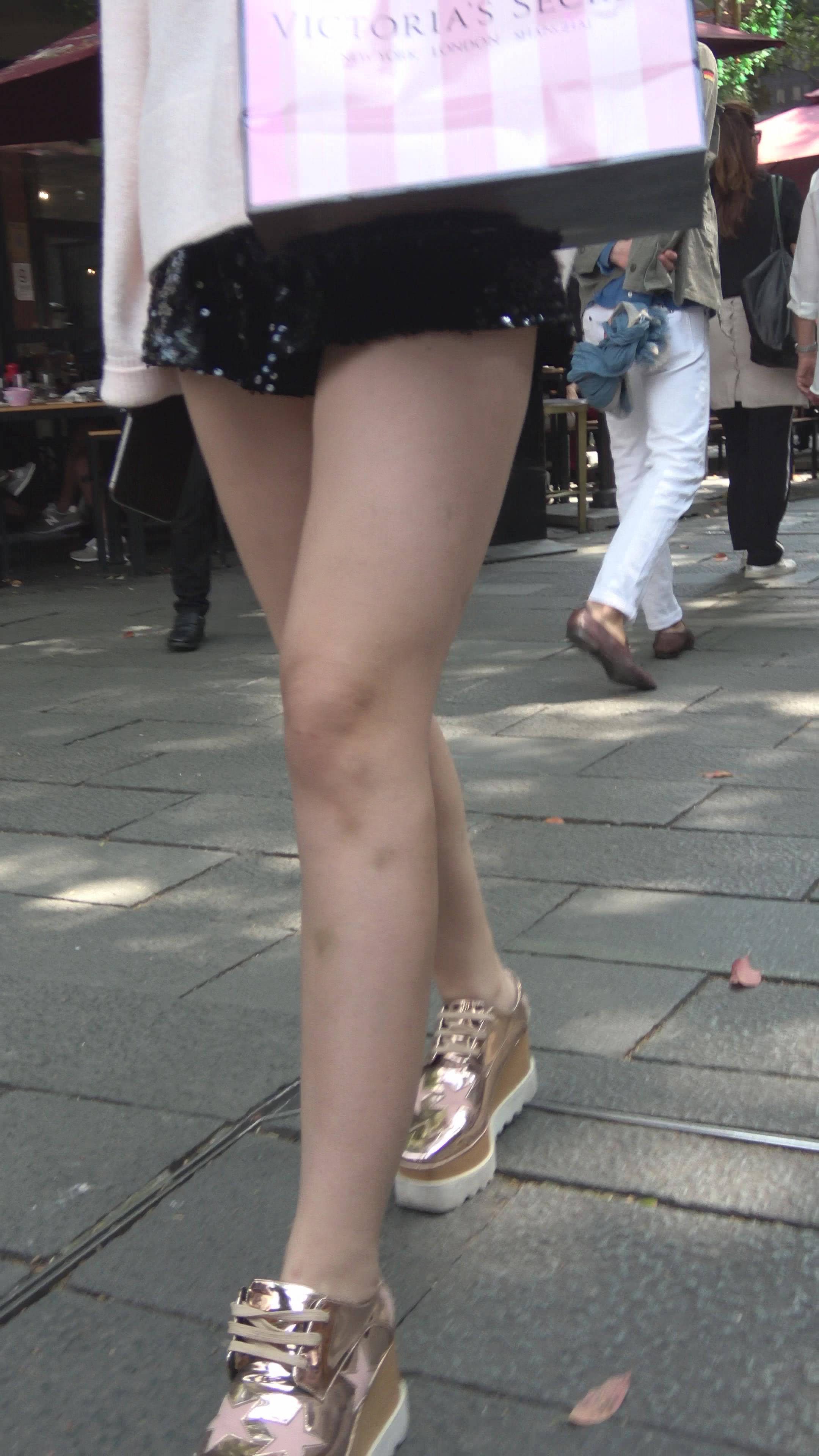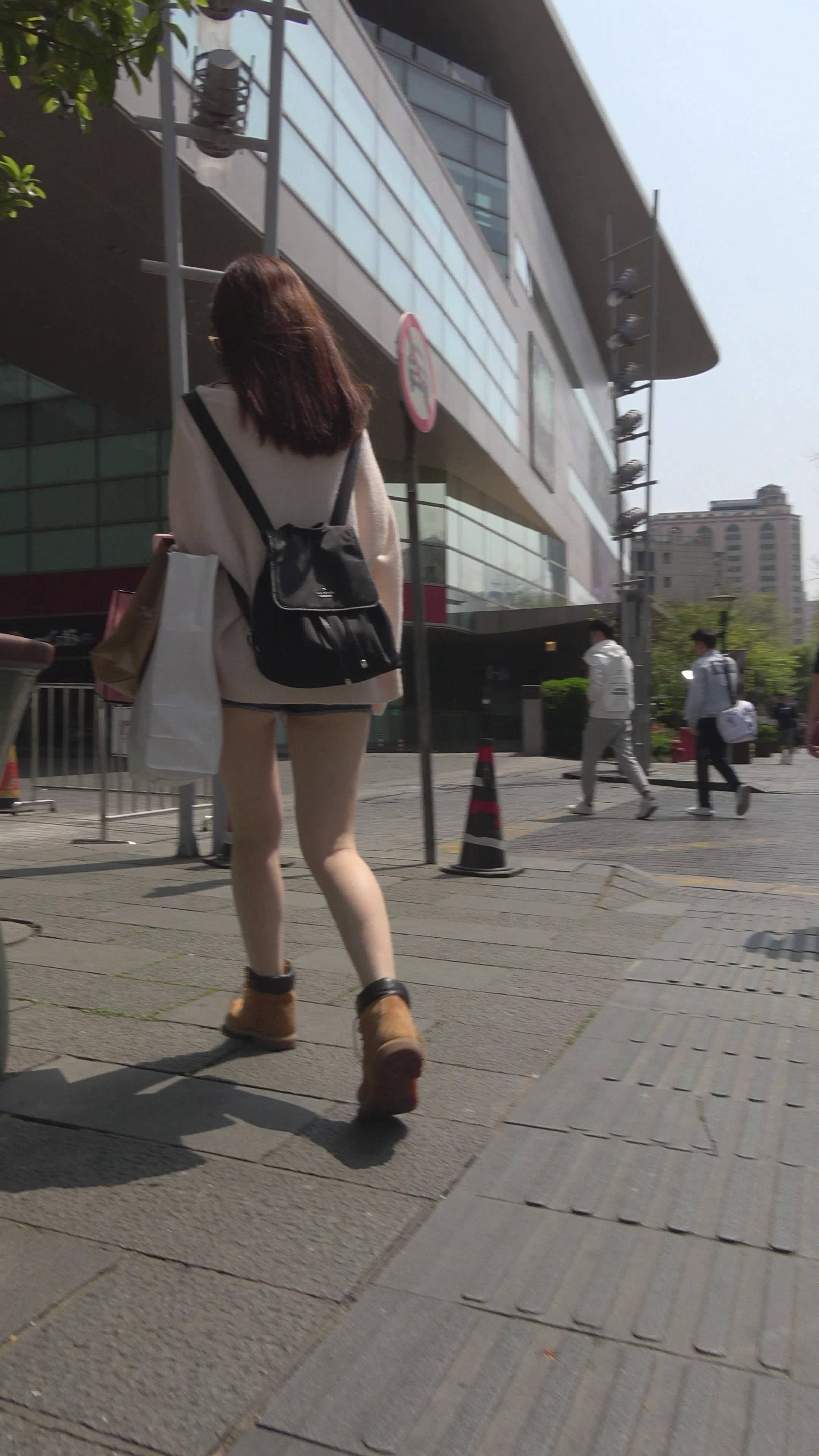 4K - V领低胸超短热裤街拍美腿墨镜姐妹 编号7725