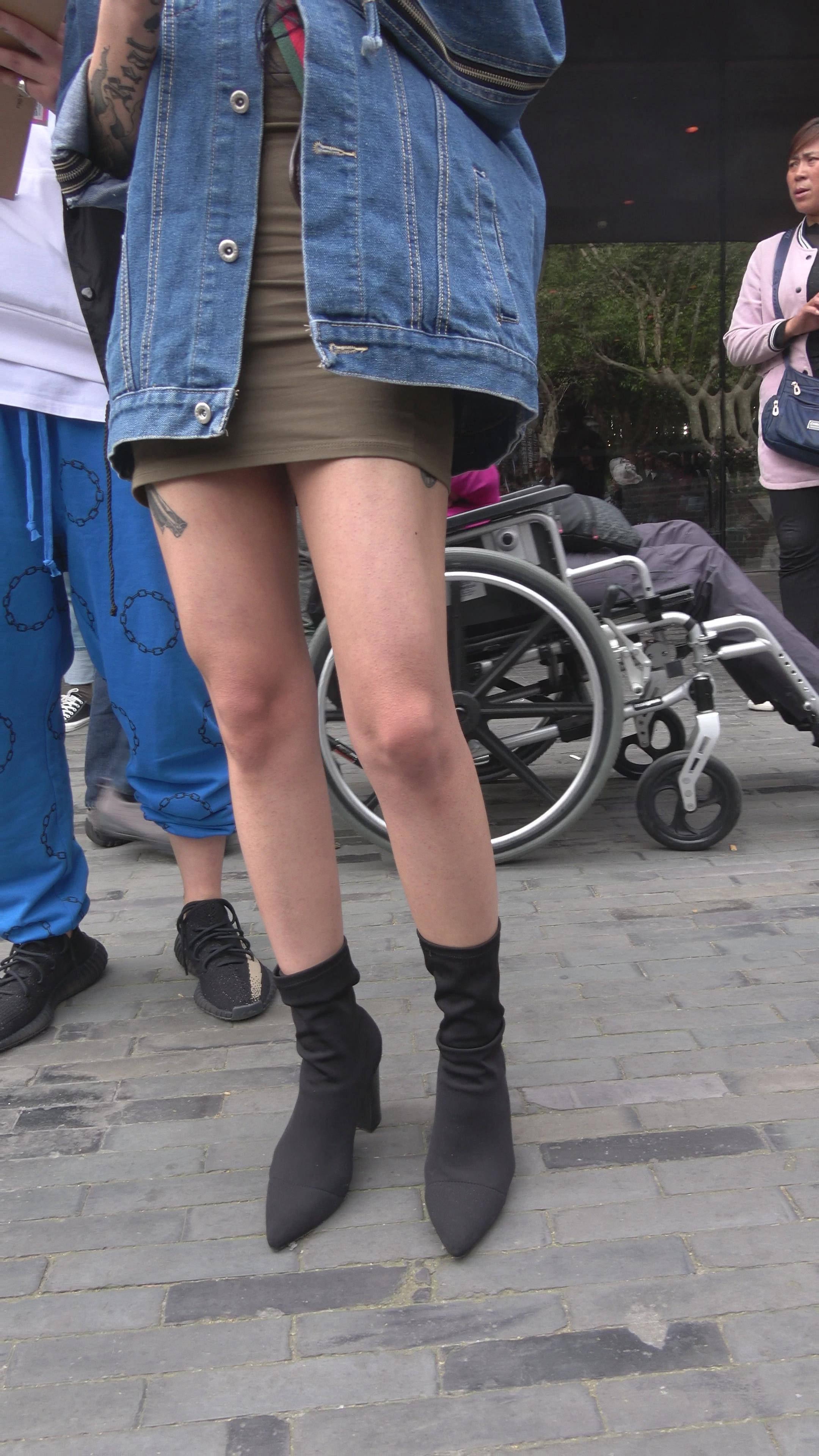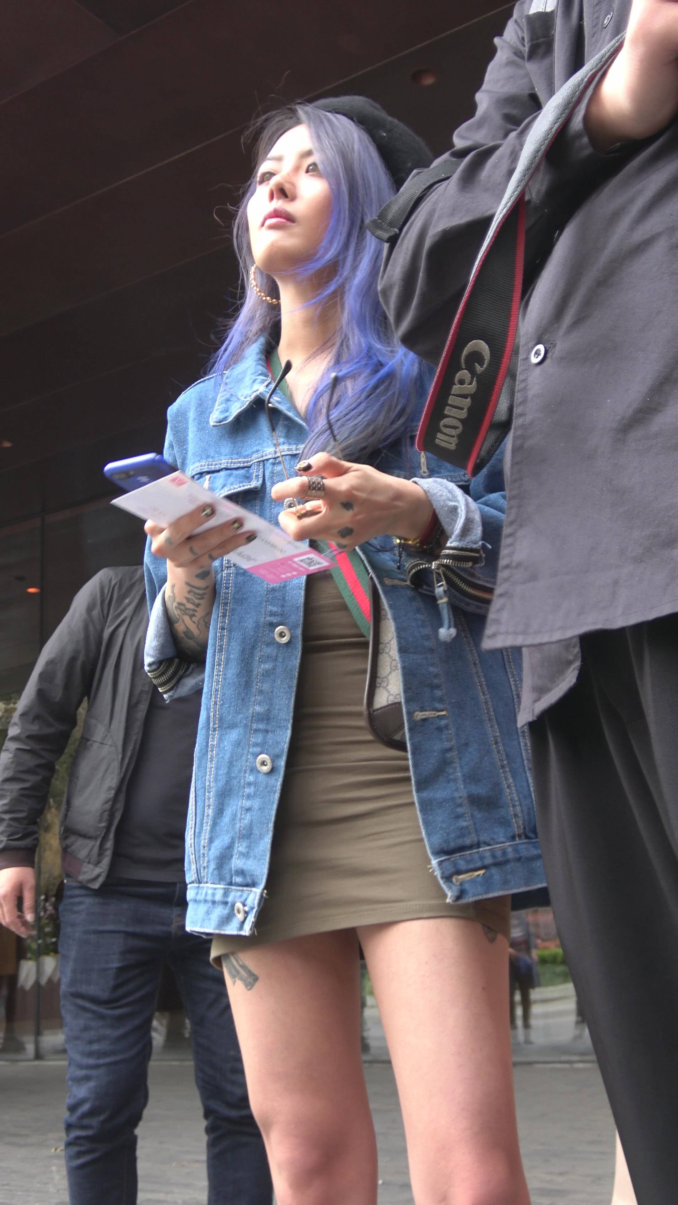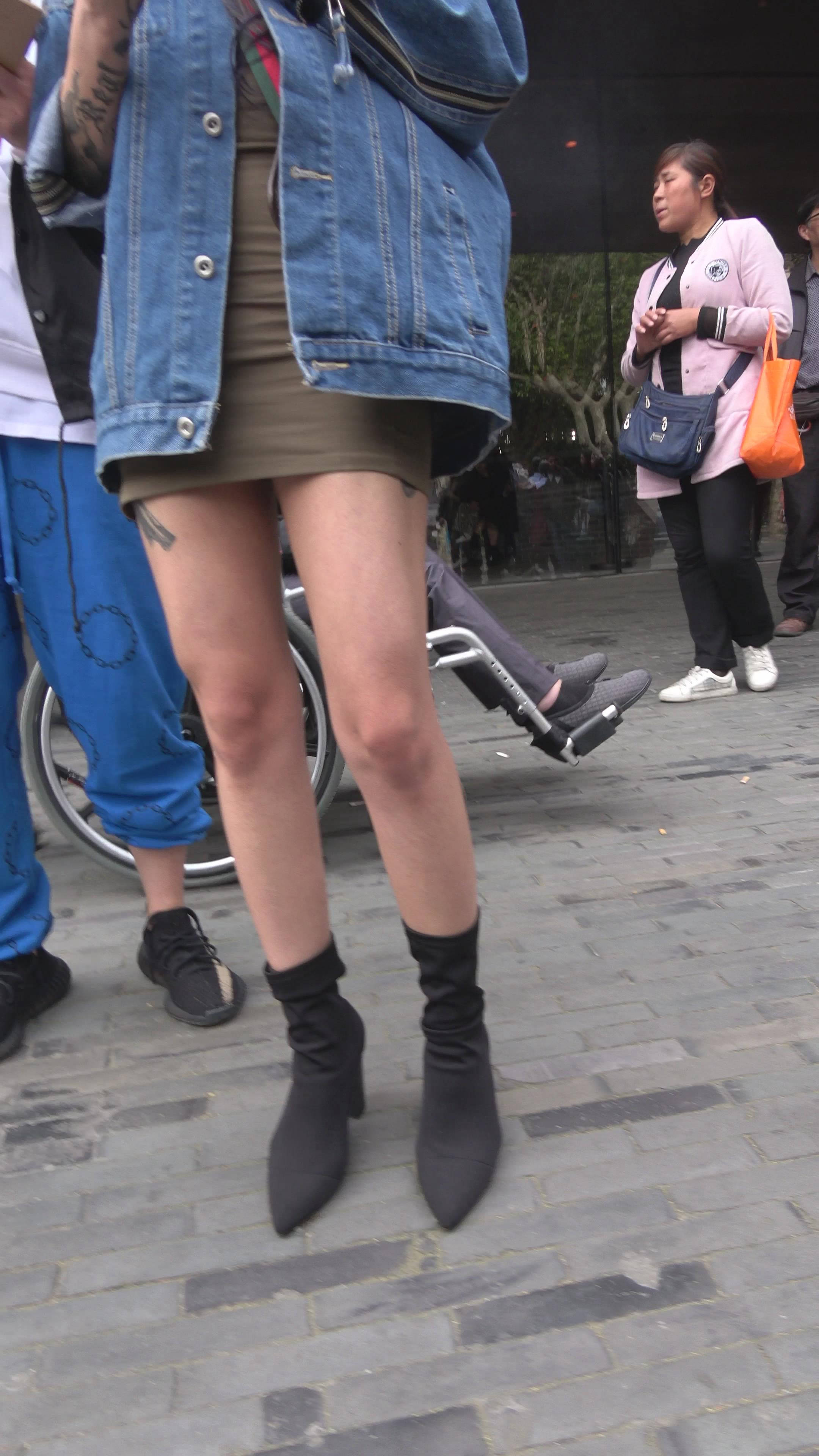 4K包臀裙牛仔外套街拍美腿小墨镜MM 编号7740