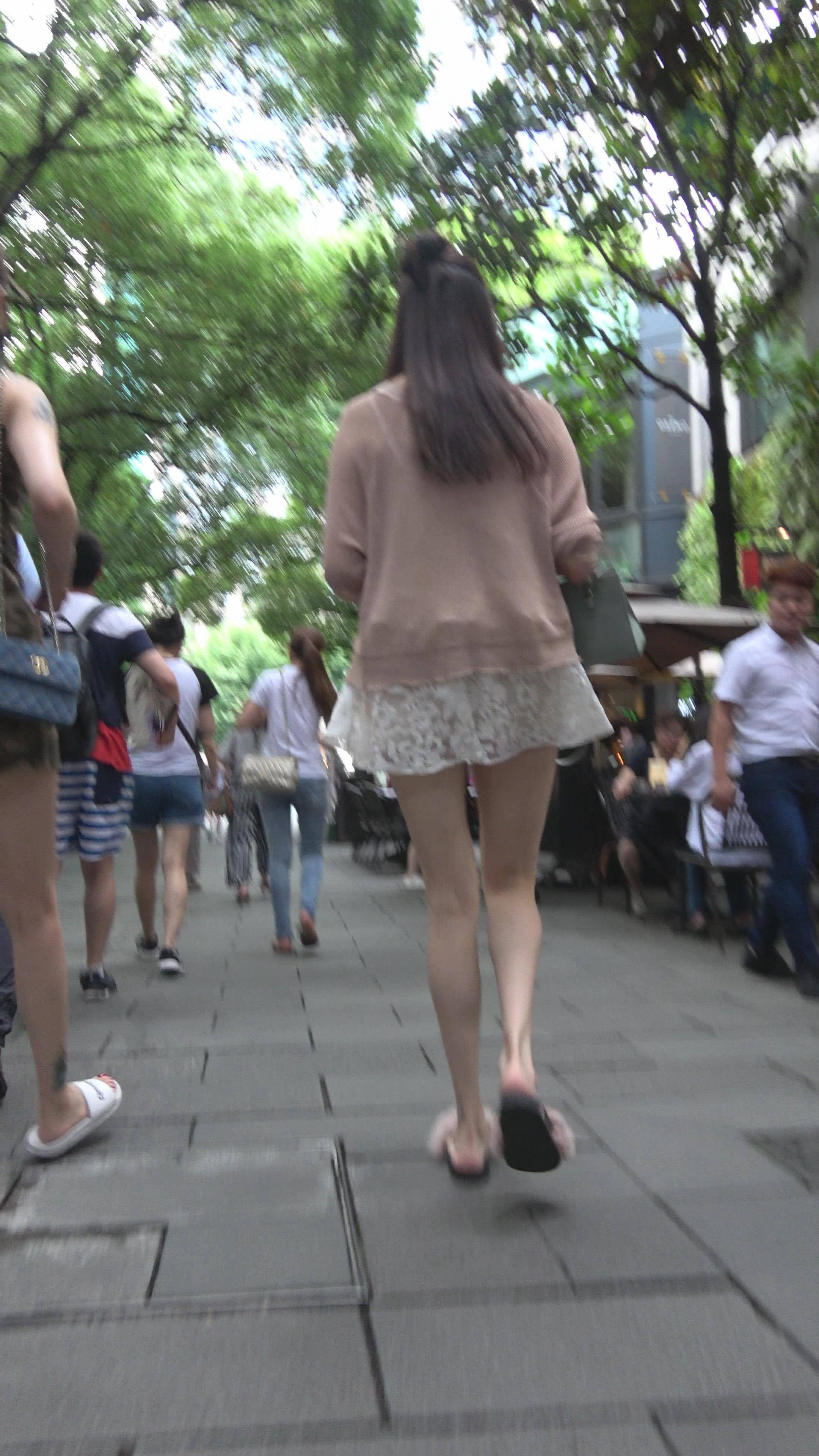 4K 街拍白色蕾丝连衣裙性感美女 编号7779