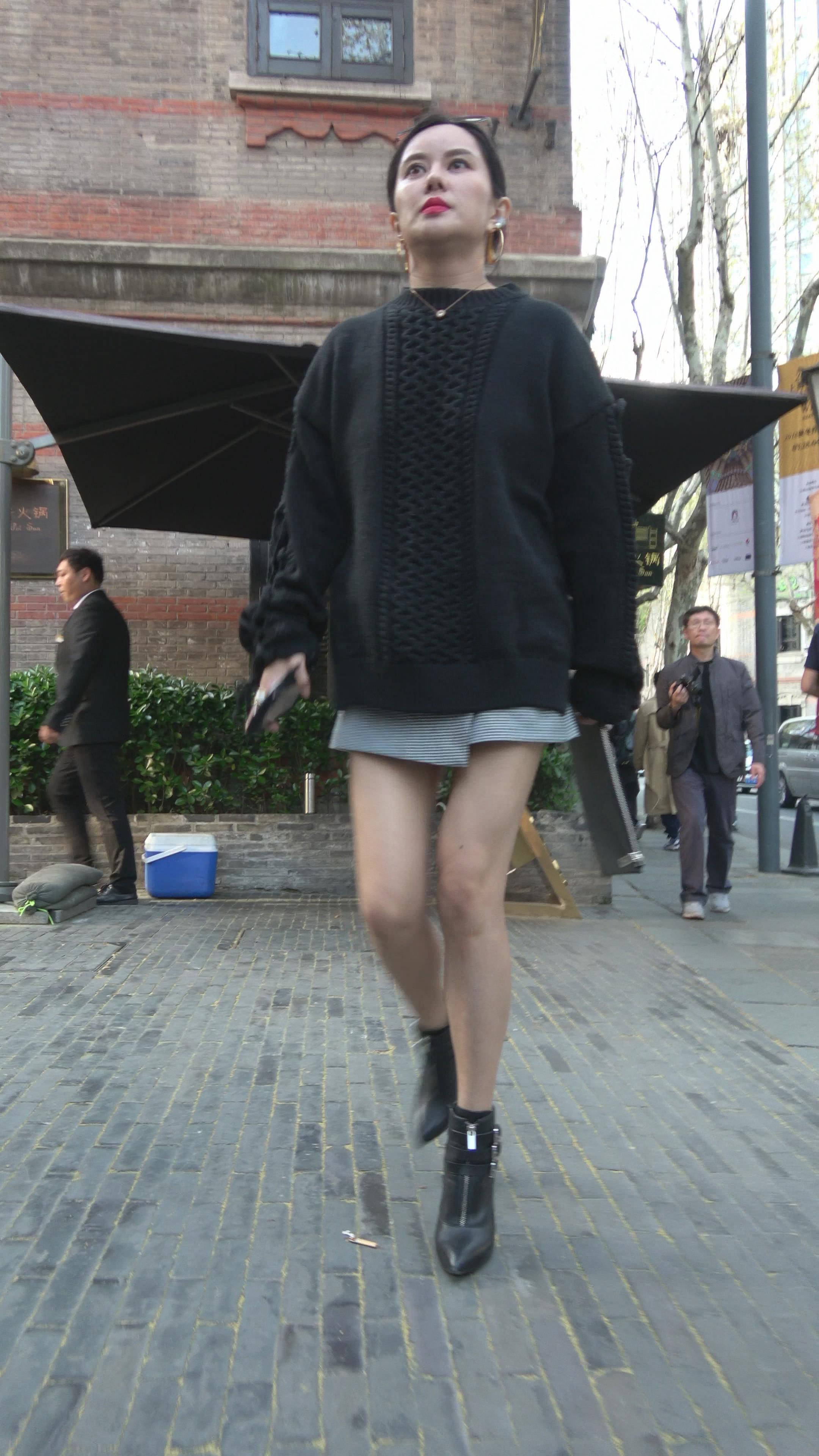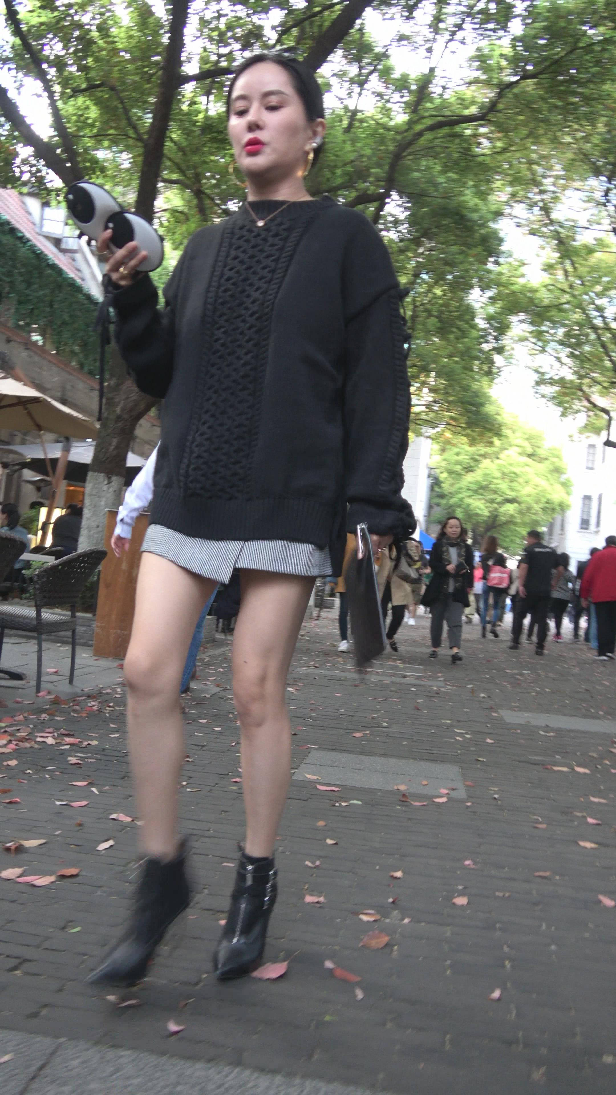 4K 黑衣街拍美腿女神手机壳很有个性 编号7785