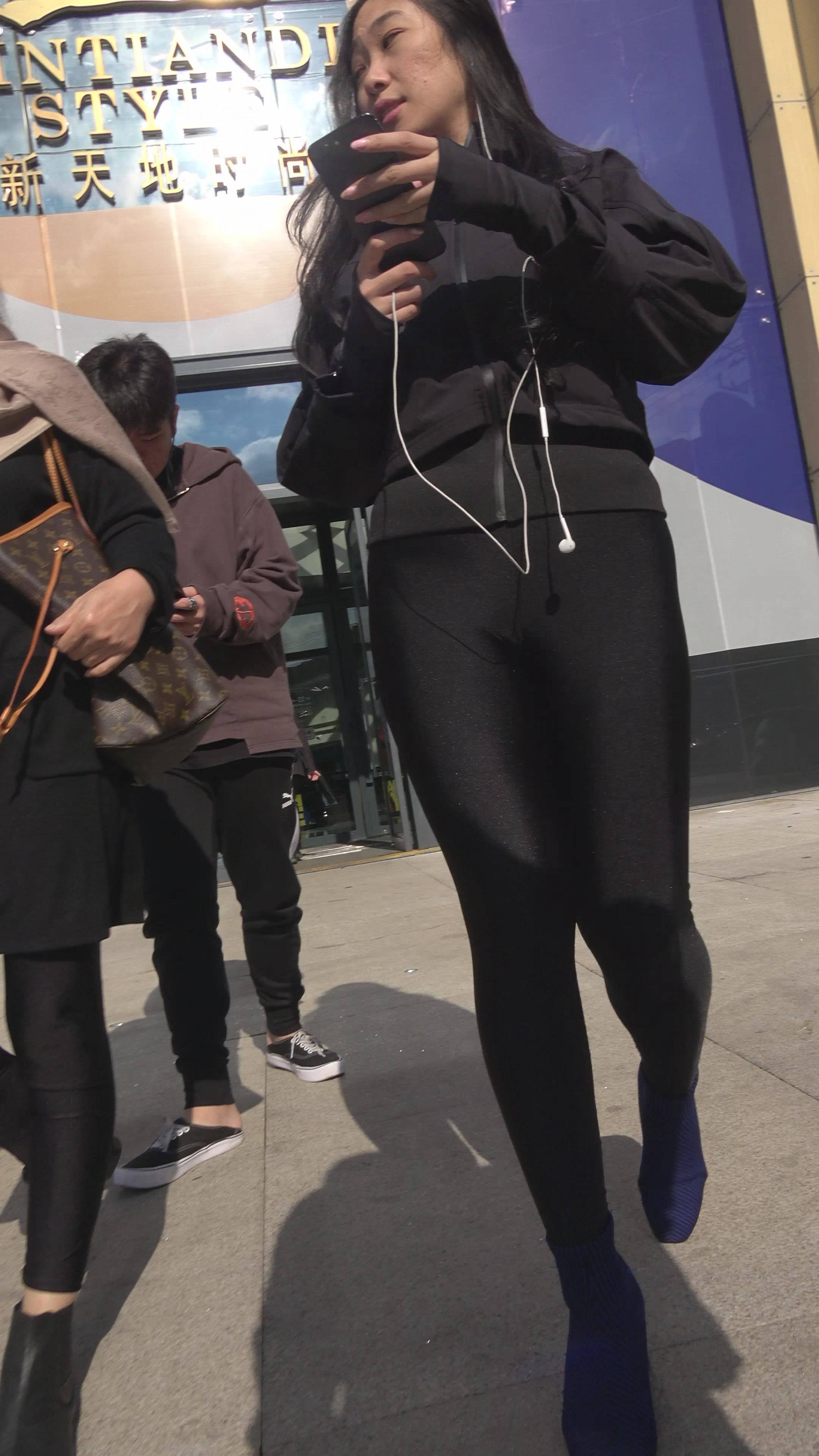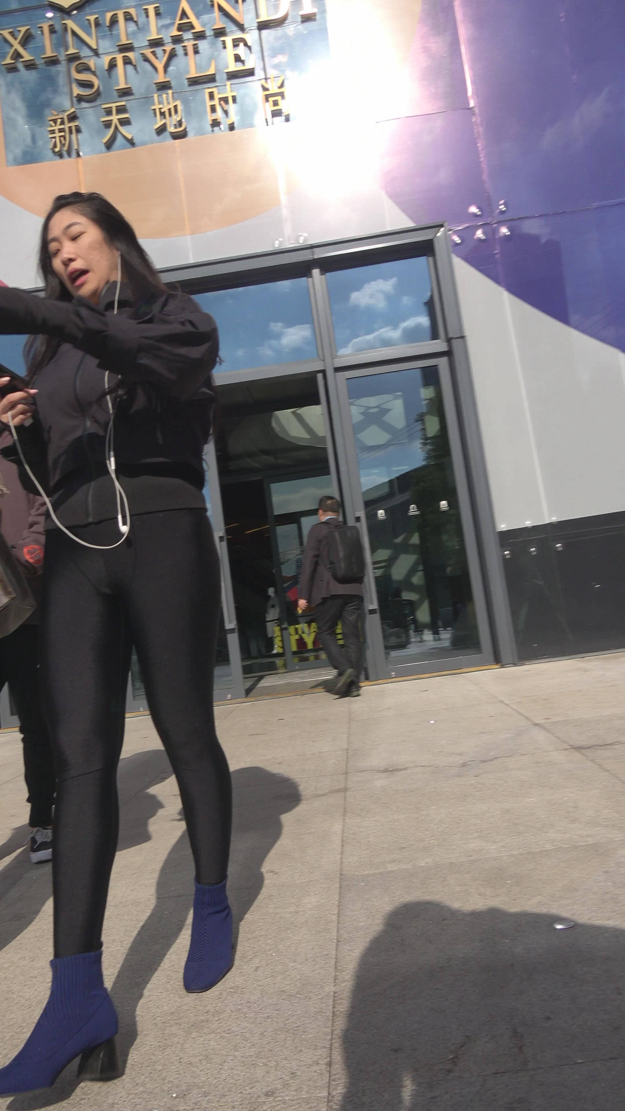 黑色系紧身裤蓝高跟街拍美女第二季 编号7801