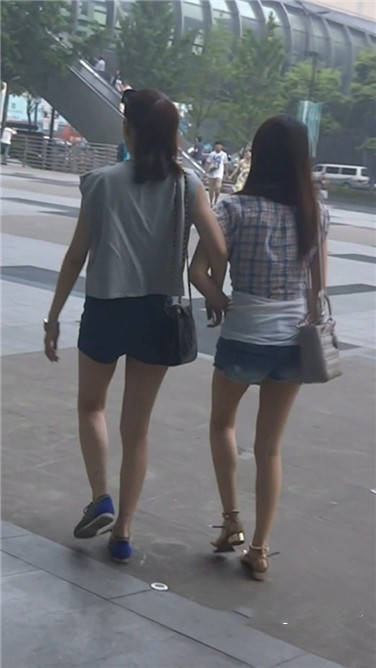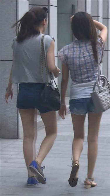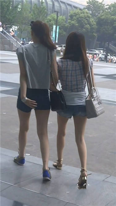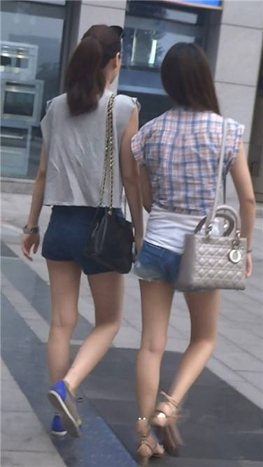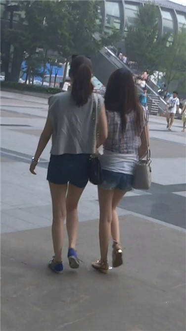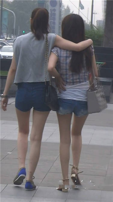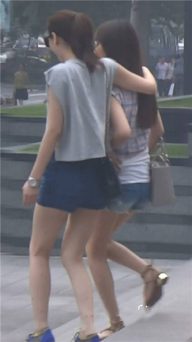 街拍牛仔热裤娇小可人姐妹花 编号3634