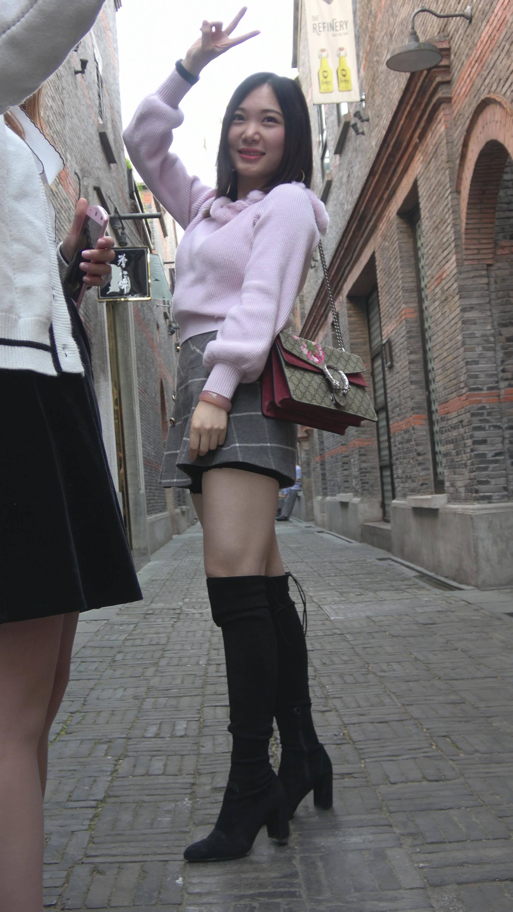 4K - 短裙性感街拍美腿美女跟闺蜜自拍 编号7820