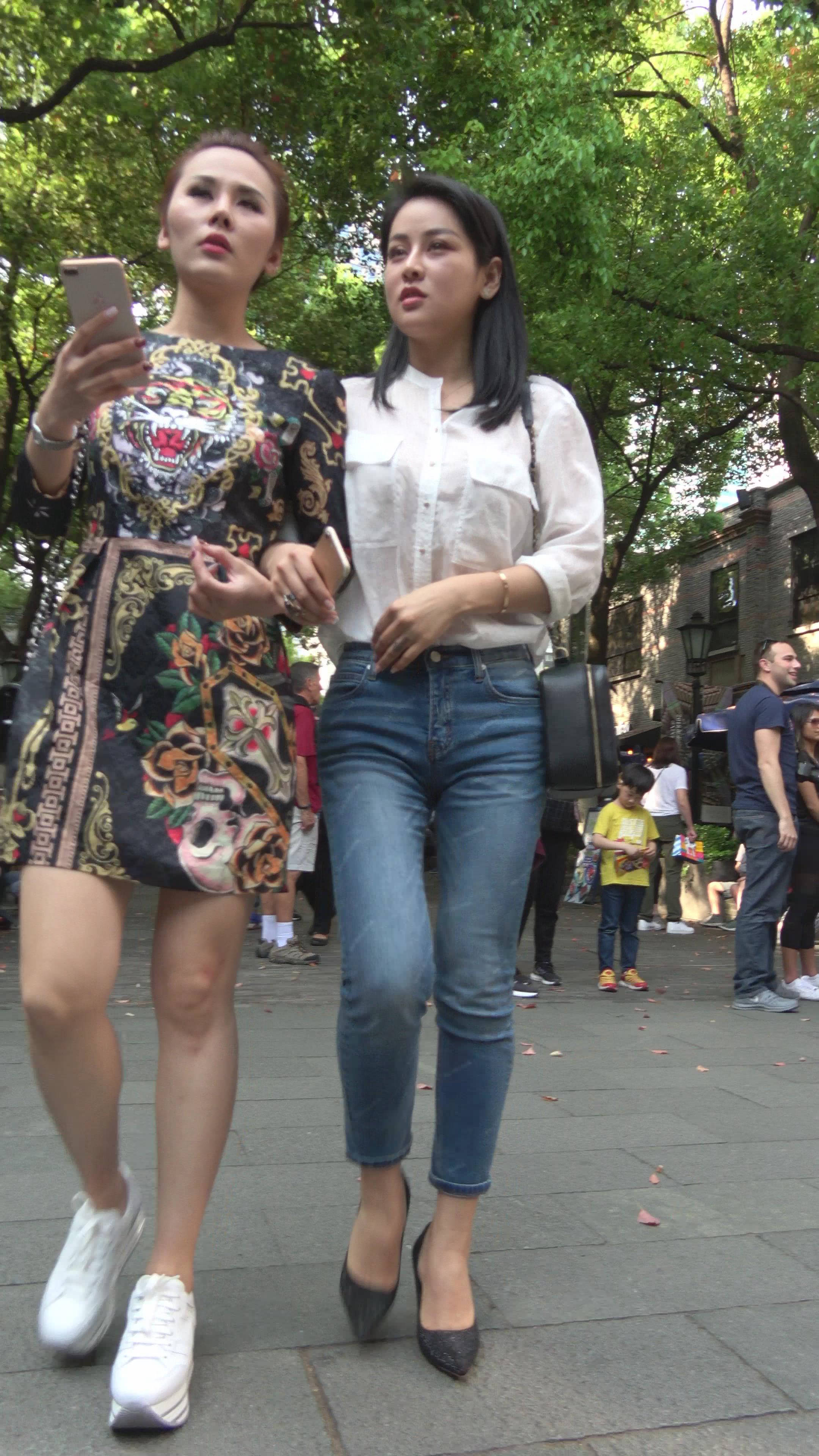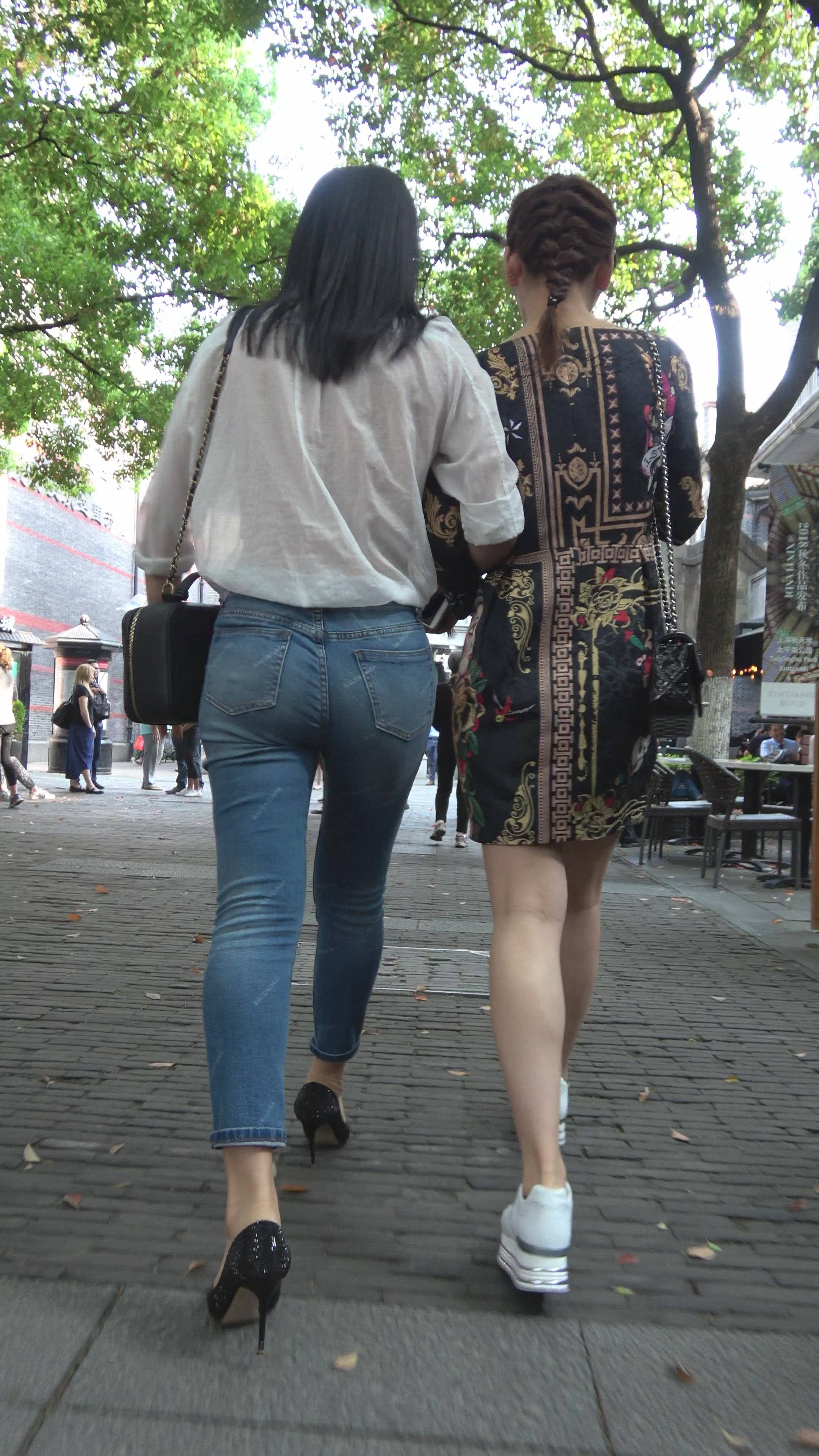 4K - 极品气质街拍牛仔紧身高跟御姐 编号7842