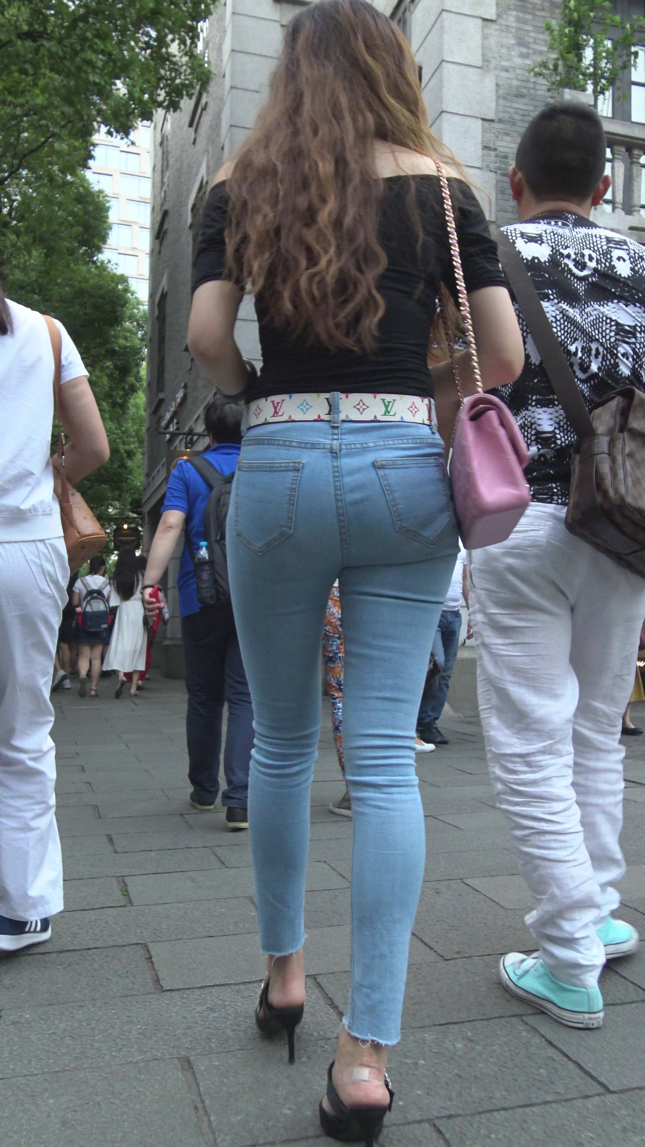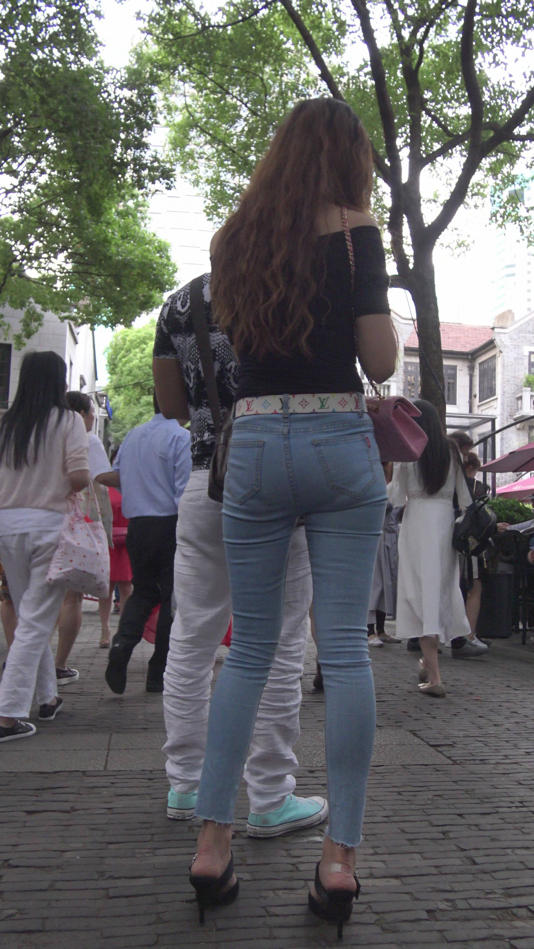4K - 街拍牛仔圆臀性感墨镜大美女 编号7855