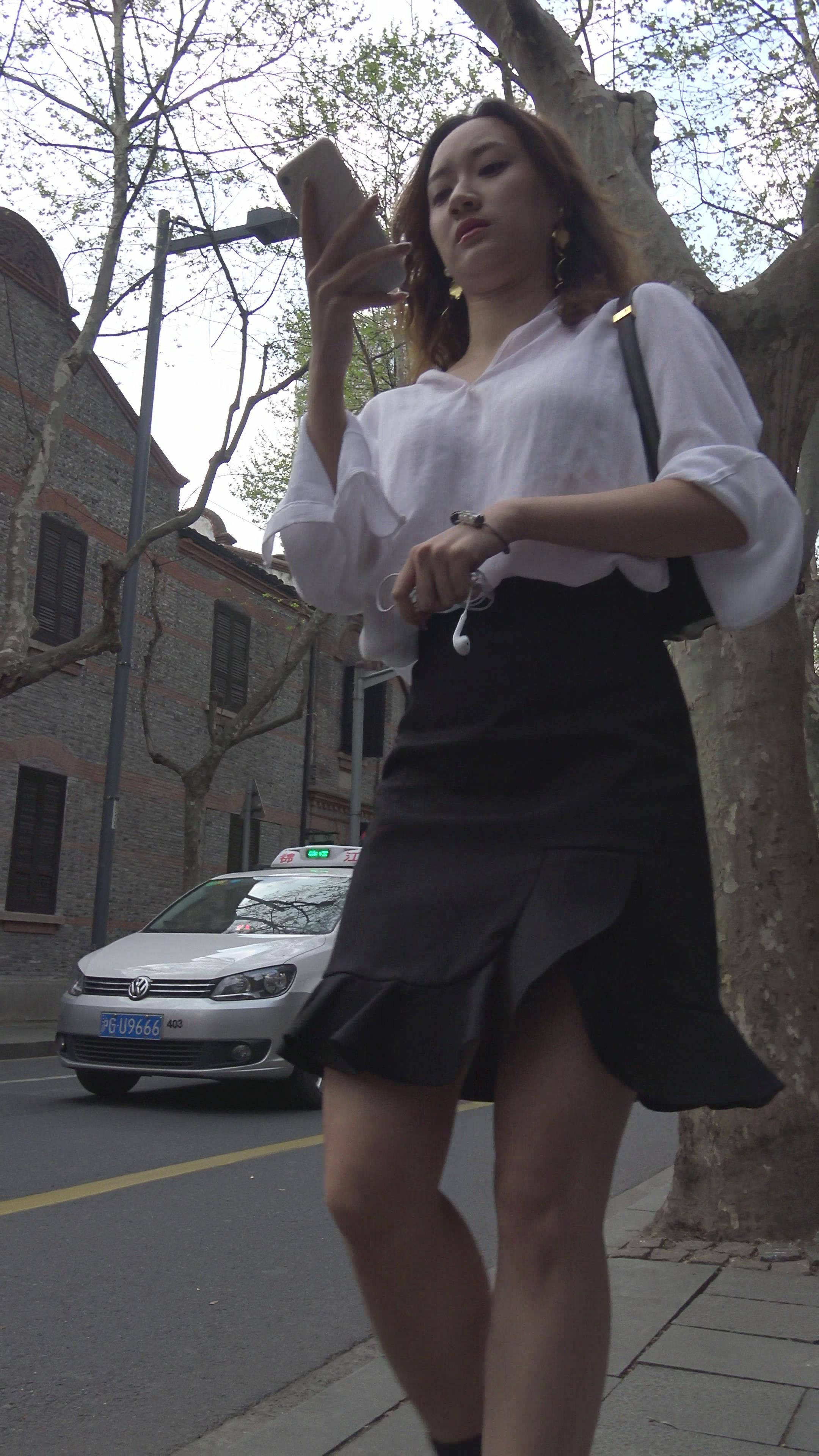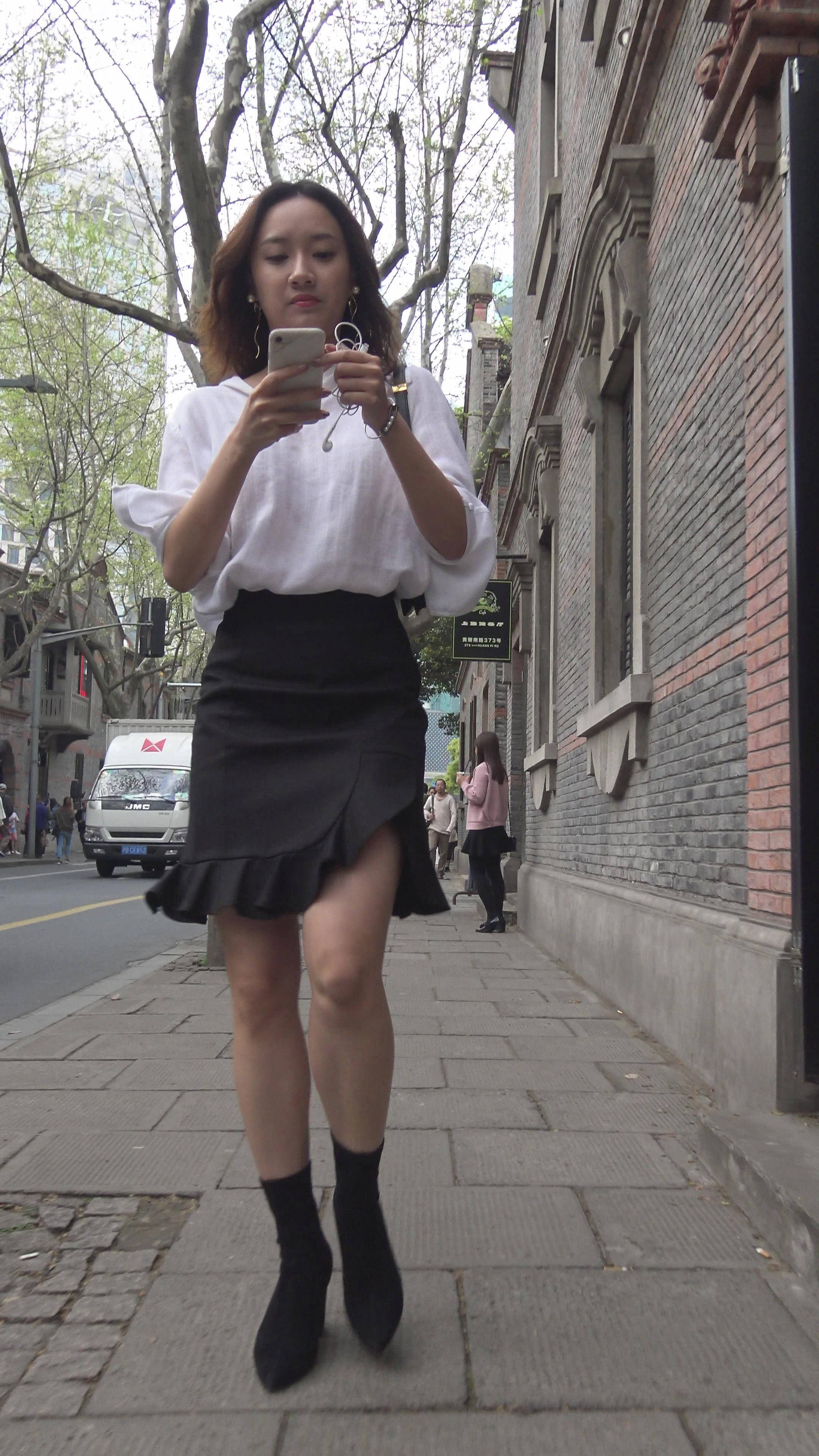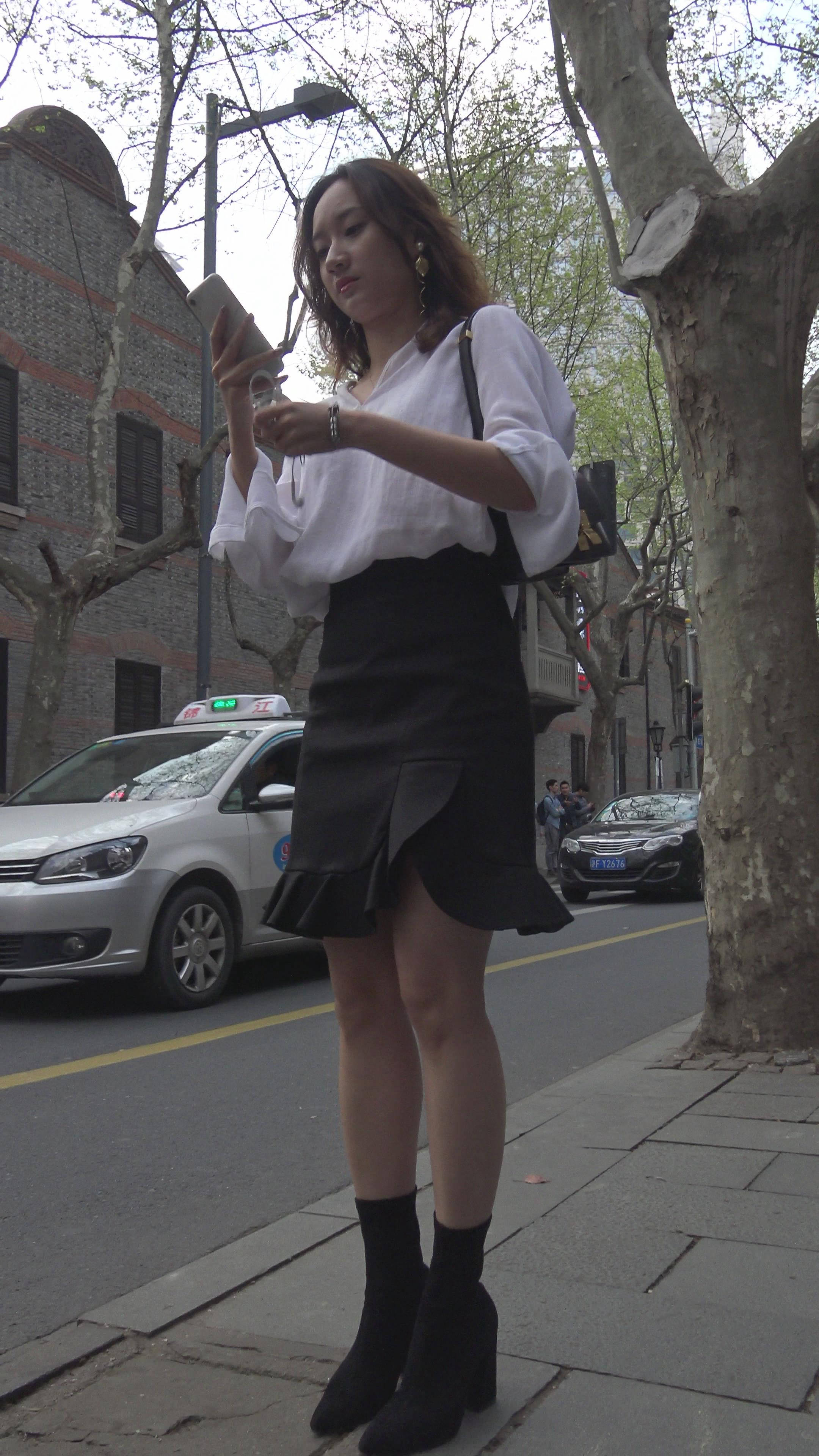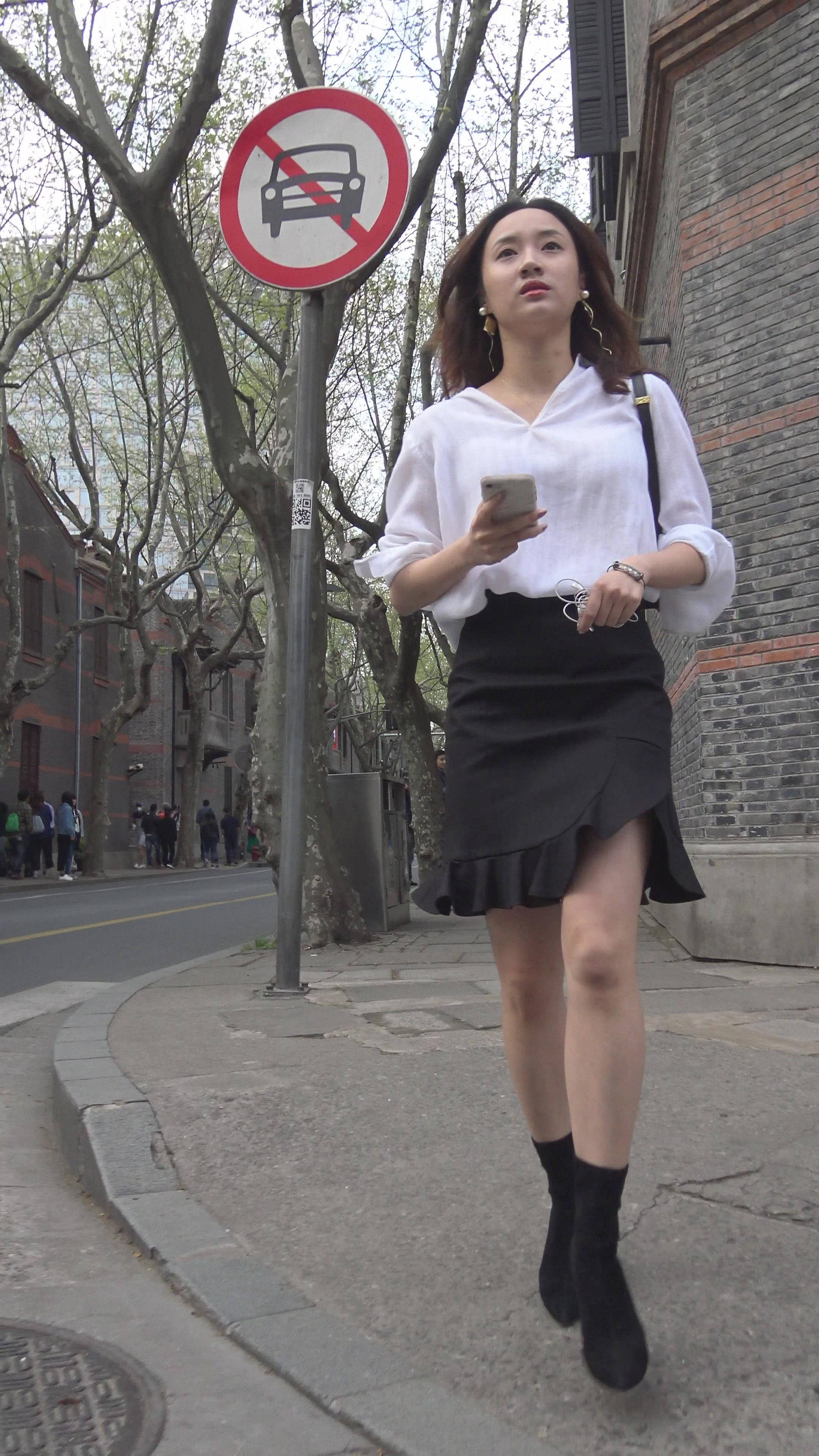 4K 街拍白衬衫包臀裙性感美腿美女笑容满面 编号7863