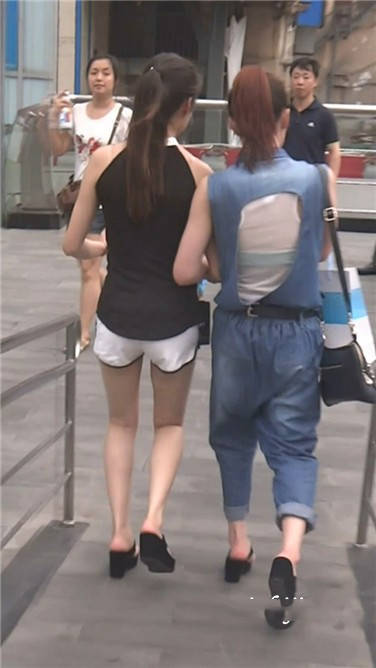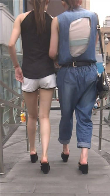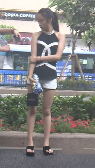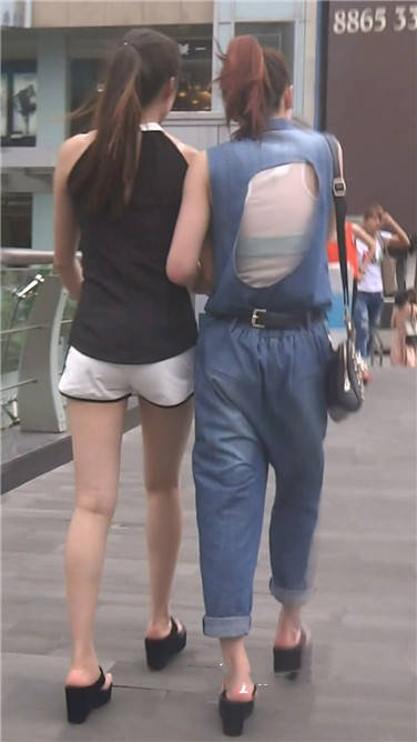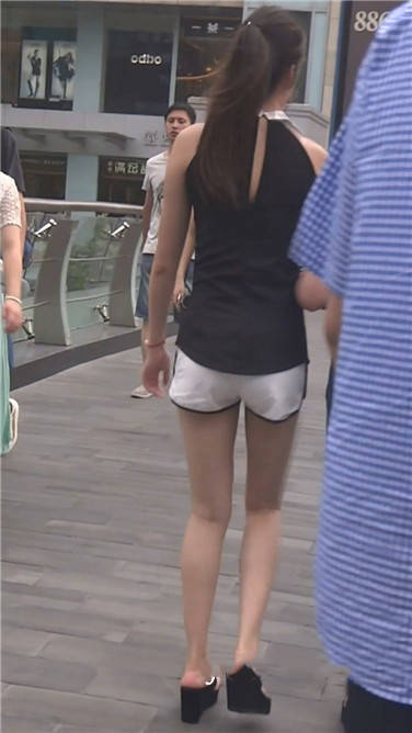 街拍马尾辫白短热裤小清新美眉 编号3639