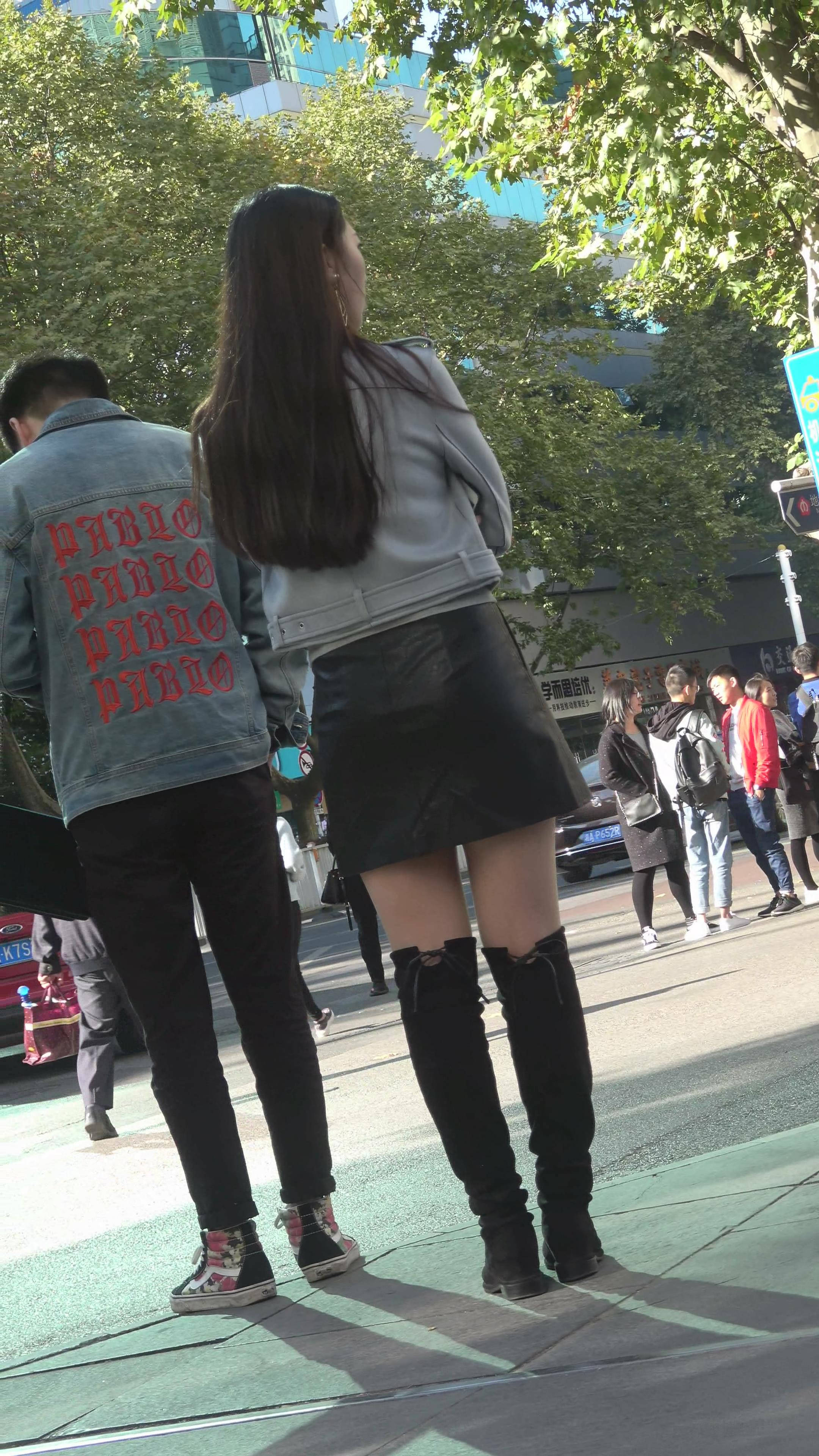4K 长筒靴街拍性感短裙美腿御姐 编号7879