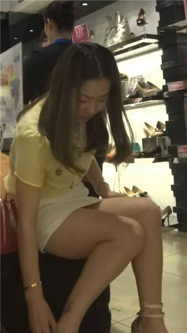 跟姐妹鞋店试鞋的包臀裙美眉 编号3641