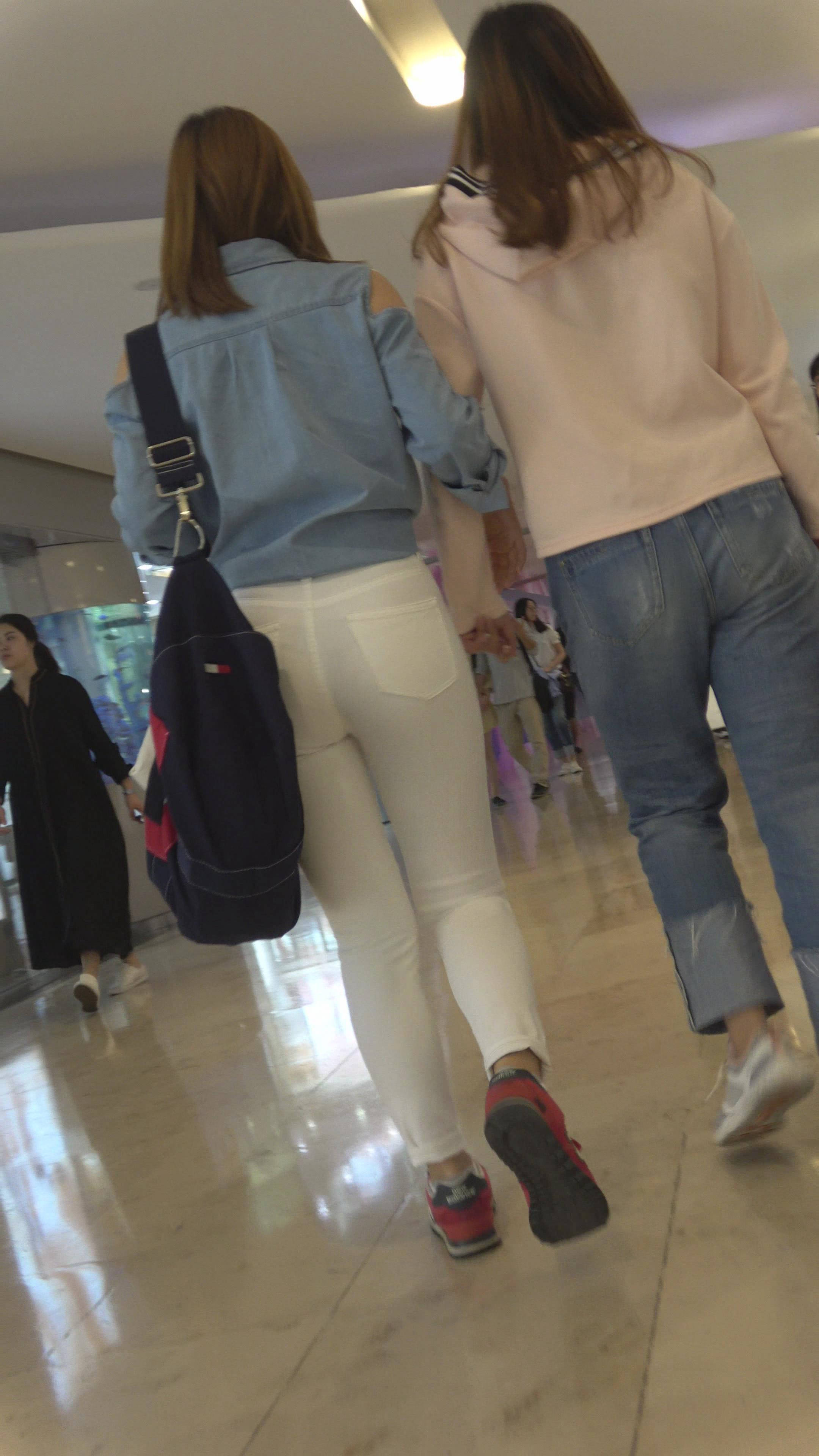 4K 街拍紧身白裤苹果臀漂亮美女 编号7894