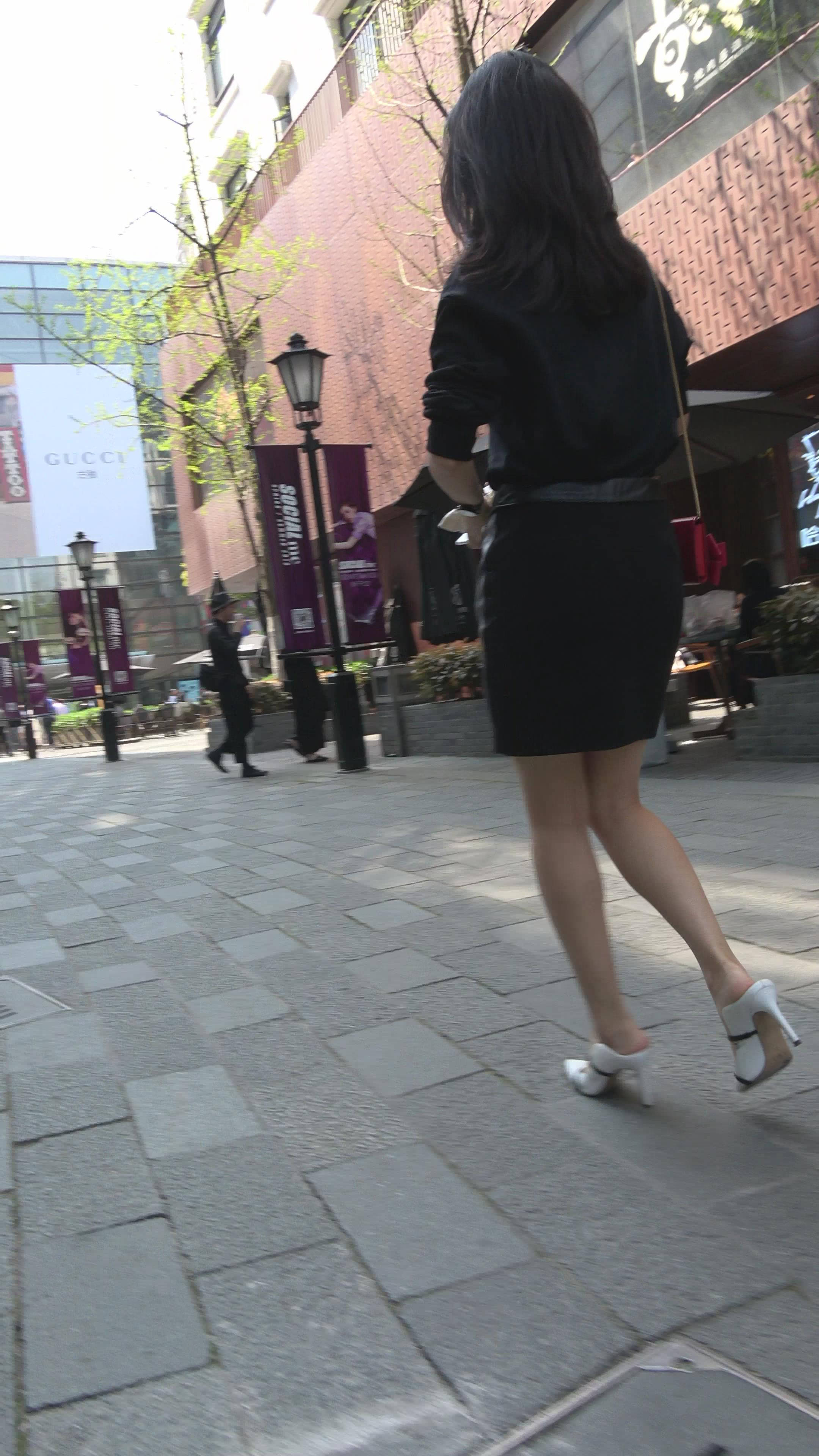 4K 性感美腿高跟街拍皮裙美女 编号7898