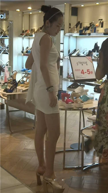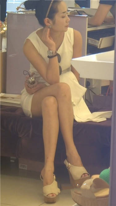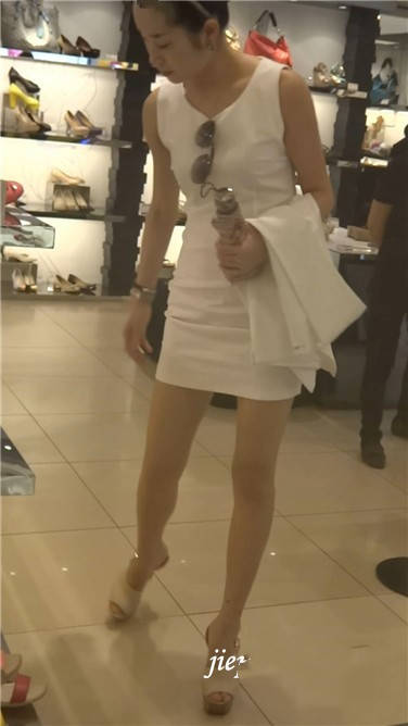 街拍白色连衣裙御姐美女鞋店试鞋 编号3670
