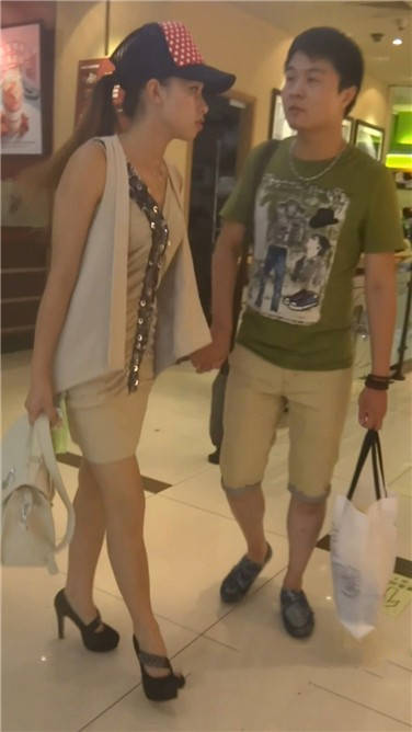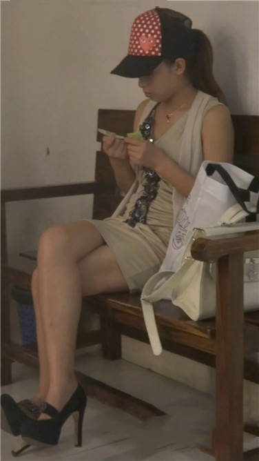 街拍清秀包臀裙鸭舌帽马尾辫美女 编号3678