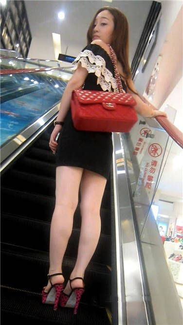 商场乘坐扶梯的极品包臀裙性感美女 编号3648