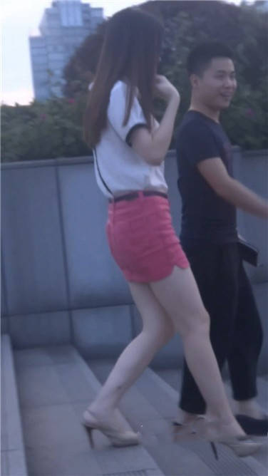 街拍粉色包臀裙性感美女跟男友去看电影 编号3736
