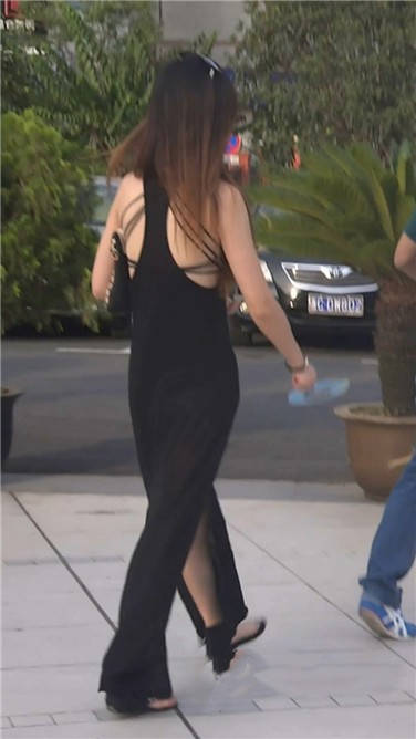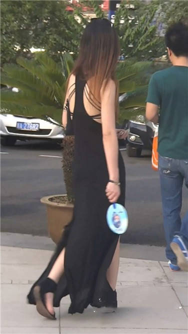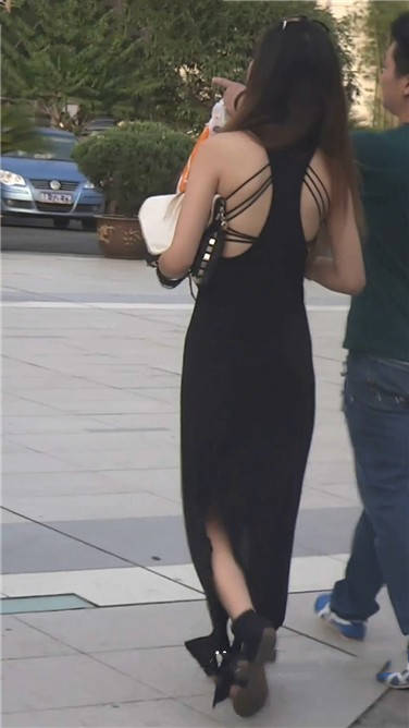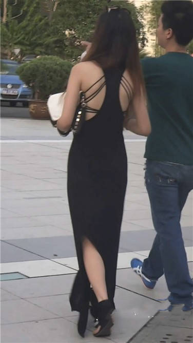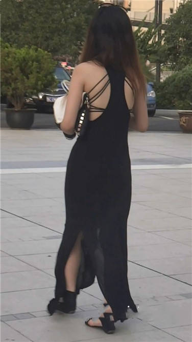 街拍性感露背黑色连衣裙美眉 编号3741