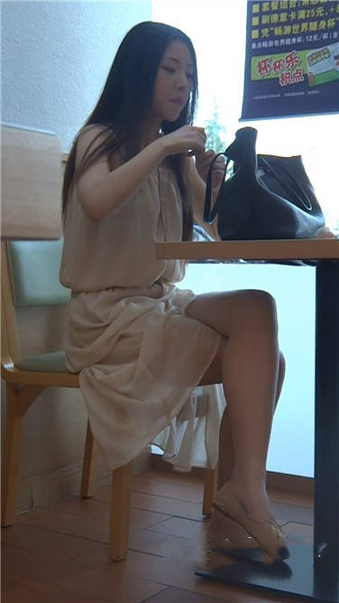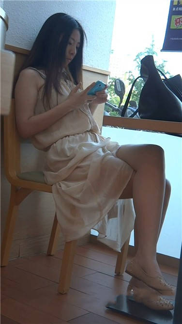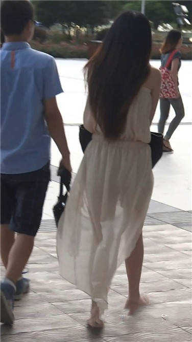 街拍肉色连衣裙美丽颜值美女 编号3764