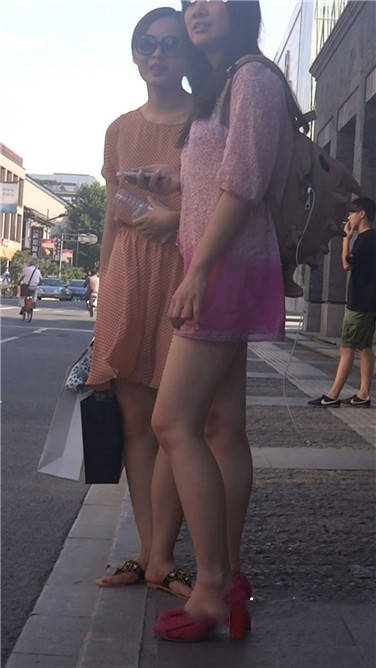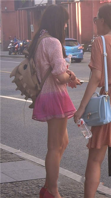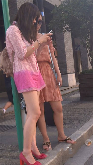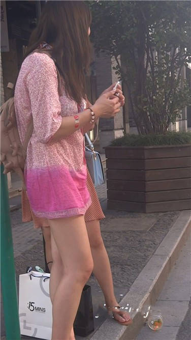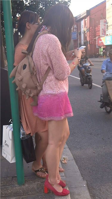街拍粉色连衣裙性感红高跟美女 编号3777