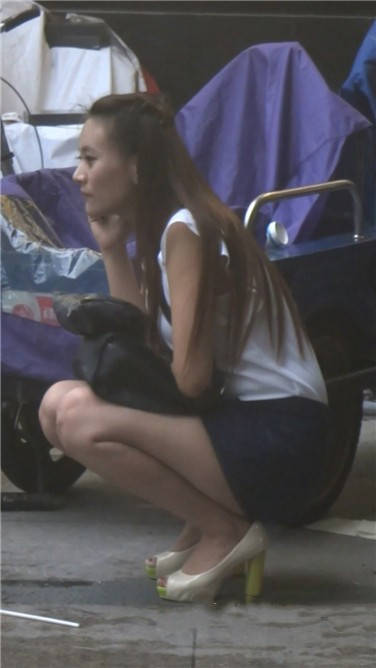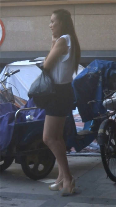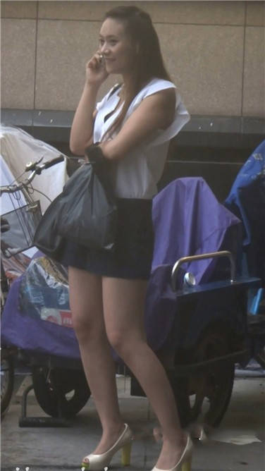 路边打电话的气质包臀裙长发女神 编号3805