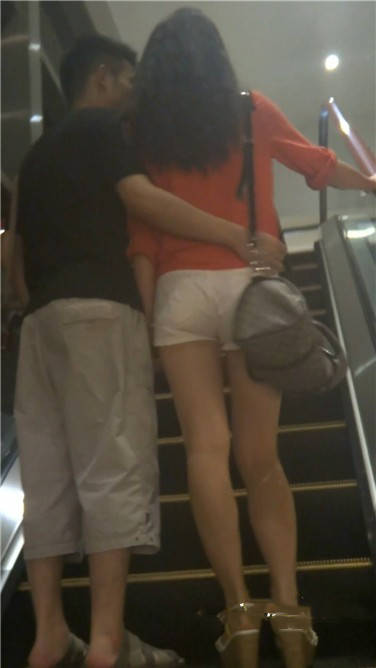 被男友搂着逛商场的白短热裤美眉 编号3808