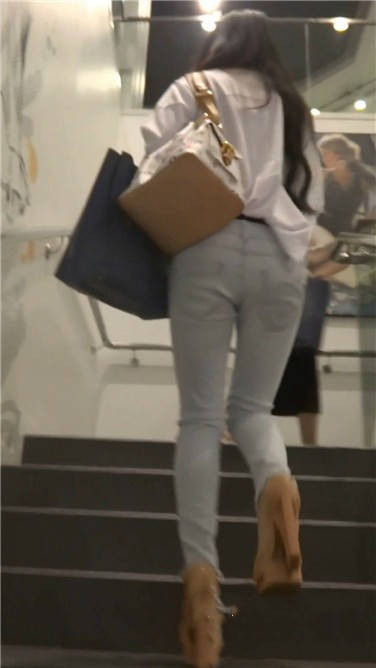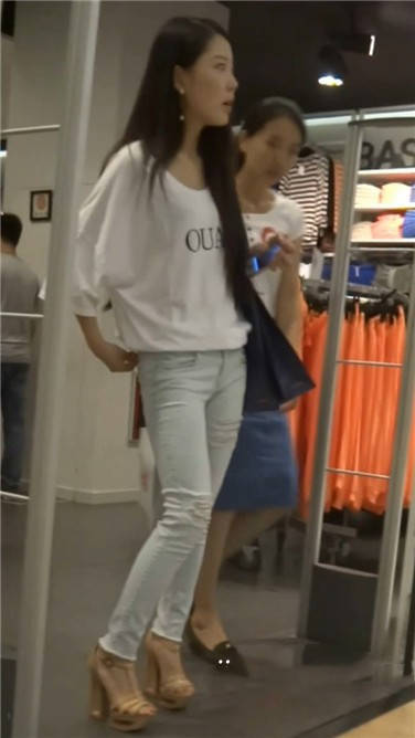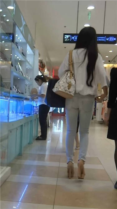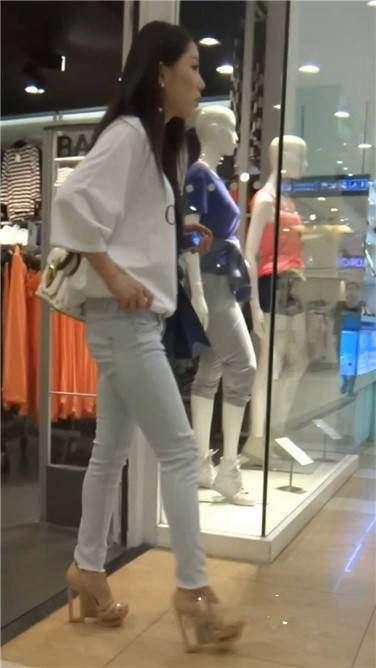 街拍高跟鞋紧身蓝牛小清新美女 编号3838