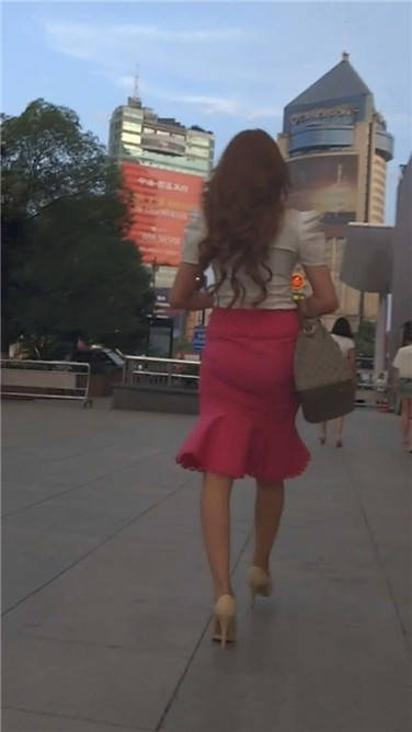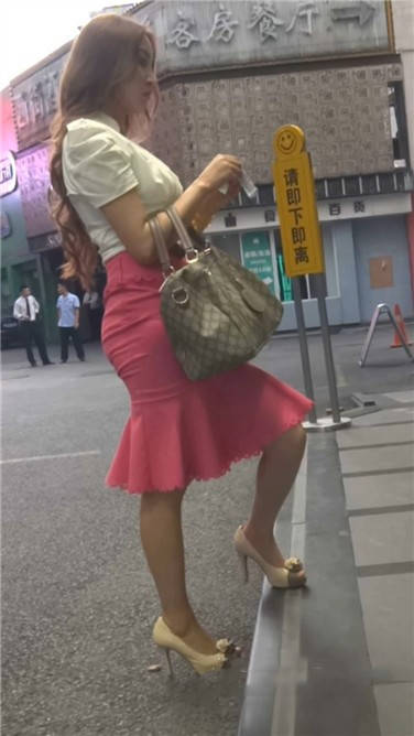 街拍极品高跟粉红色性感翘臀美少妇 编号3848