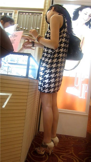 街拍极品碎花连衣裙性感美女 编号3863